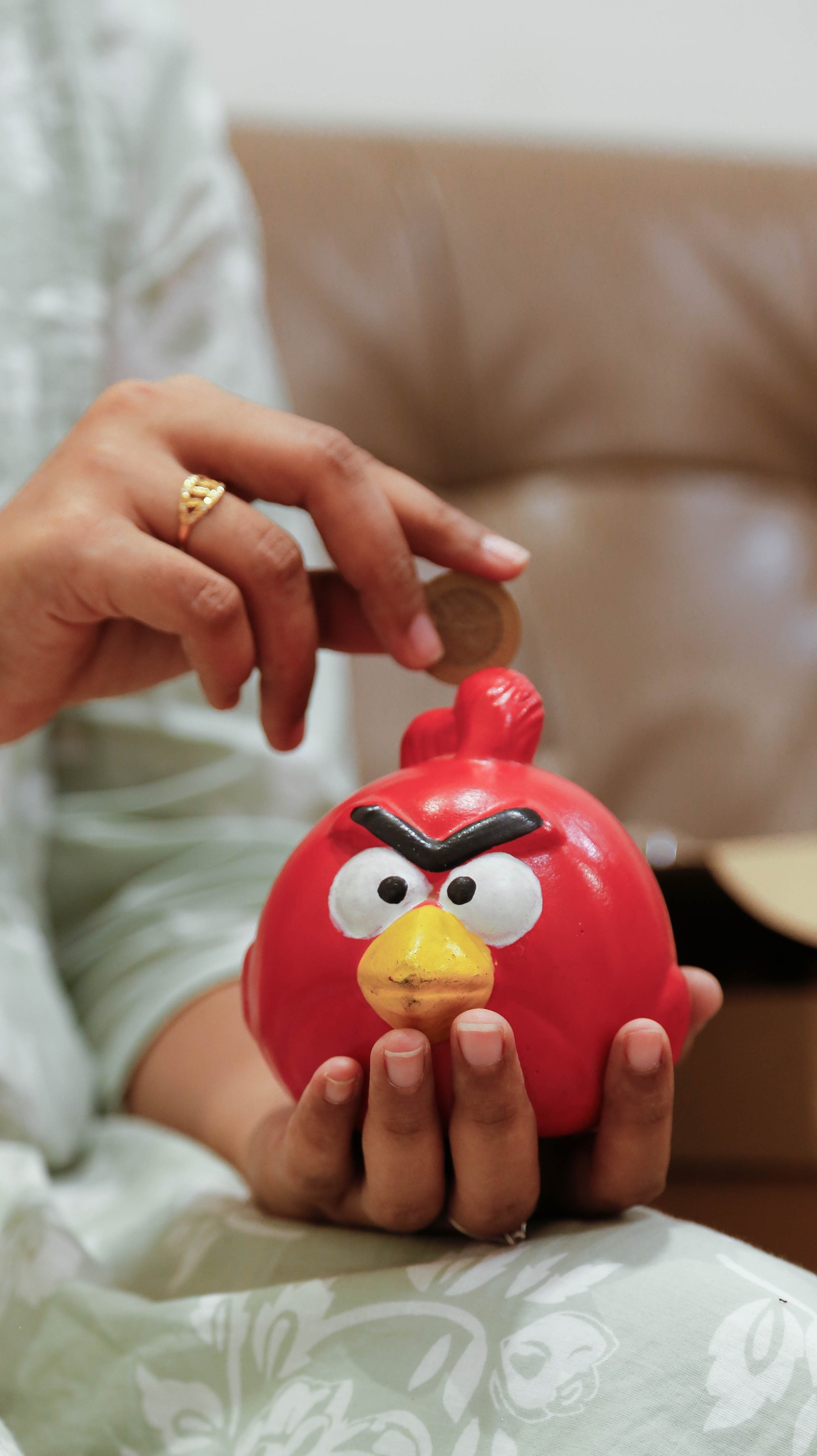 Making money by saving using this Red Angry Bird Piggy Bank is fun, functional, and instructive for children! This attractive piggy bank made using terracotta clay will look beautiful in any space while at the same time instilling in young children the importance of saving. Take the bank home with your kid, and see them having fun while learning to save money, a lifelong habit!