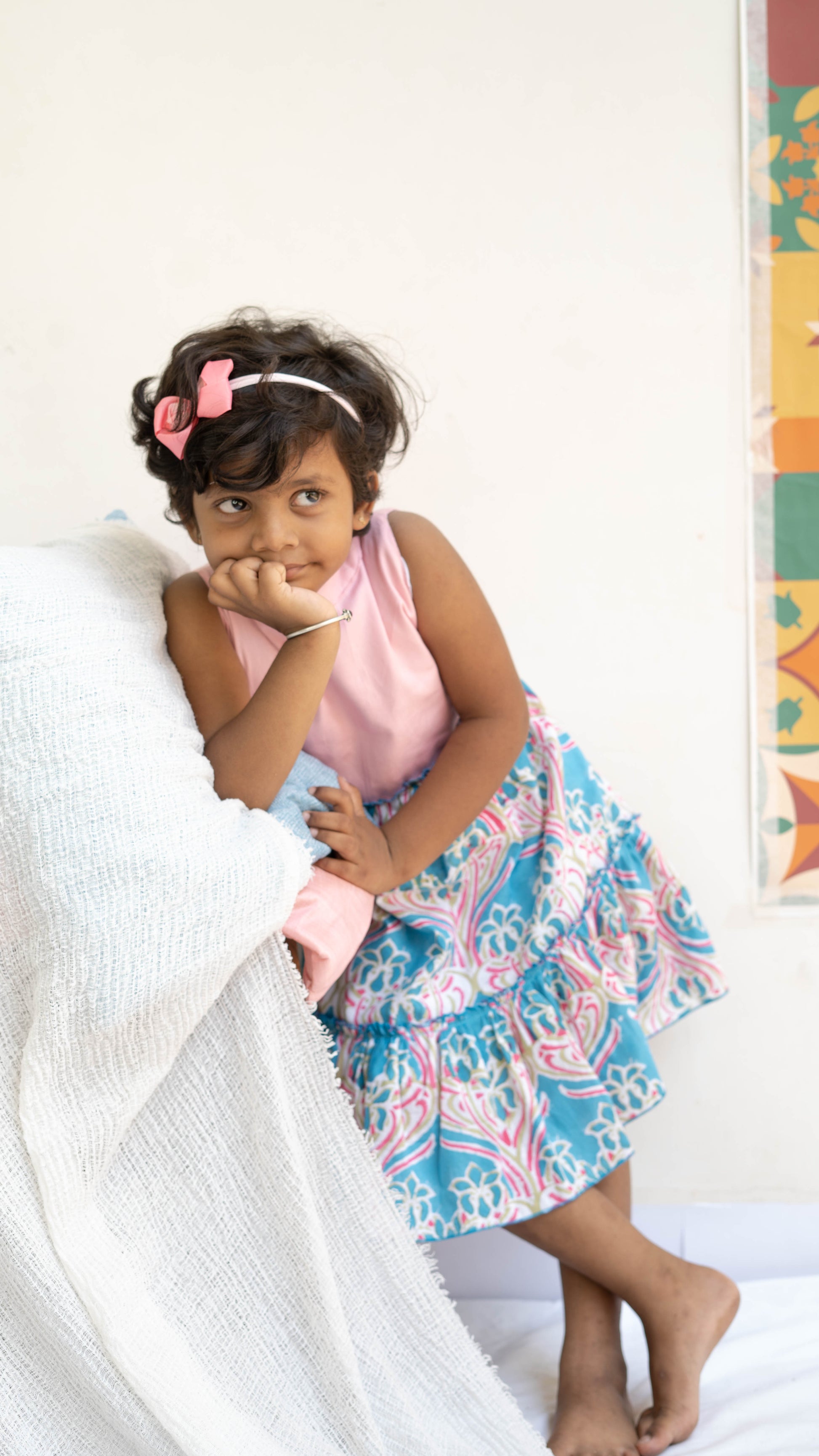Let your little one flower in style with our Baby Pink and Blue Paisley Print Cotton Dress—a colorful fiesta of whimsy and warmth. With a pale baby pink bodice and bright blue paisley-printed skirt, this cutie is perfect for sunny outings and vintage photo shoots.