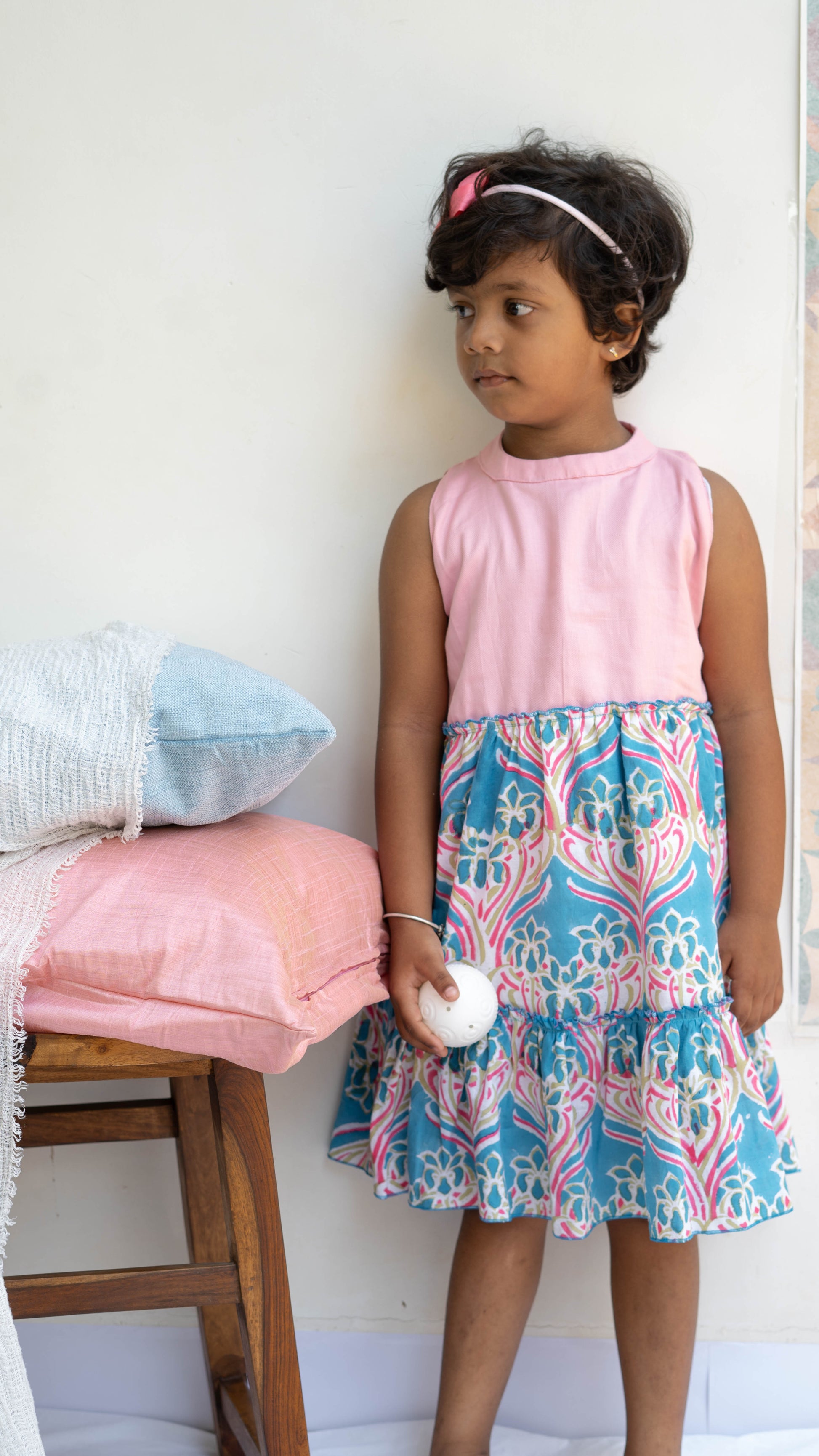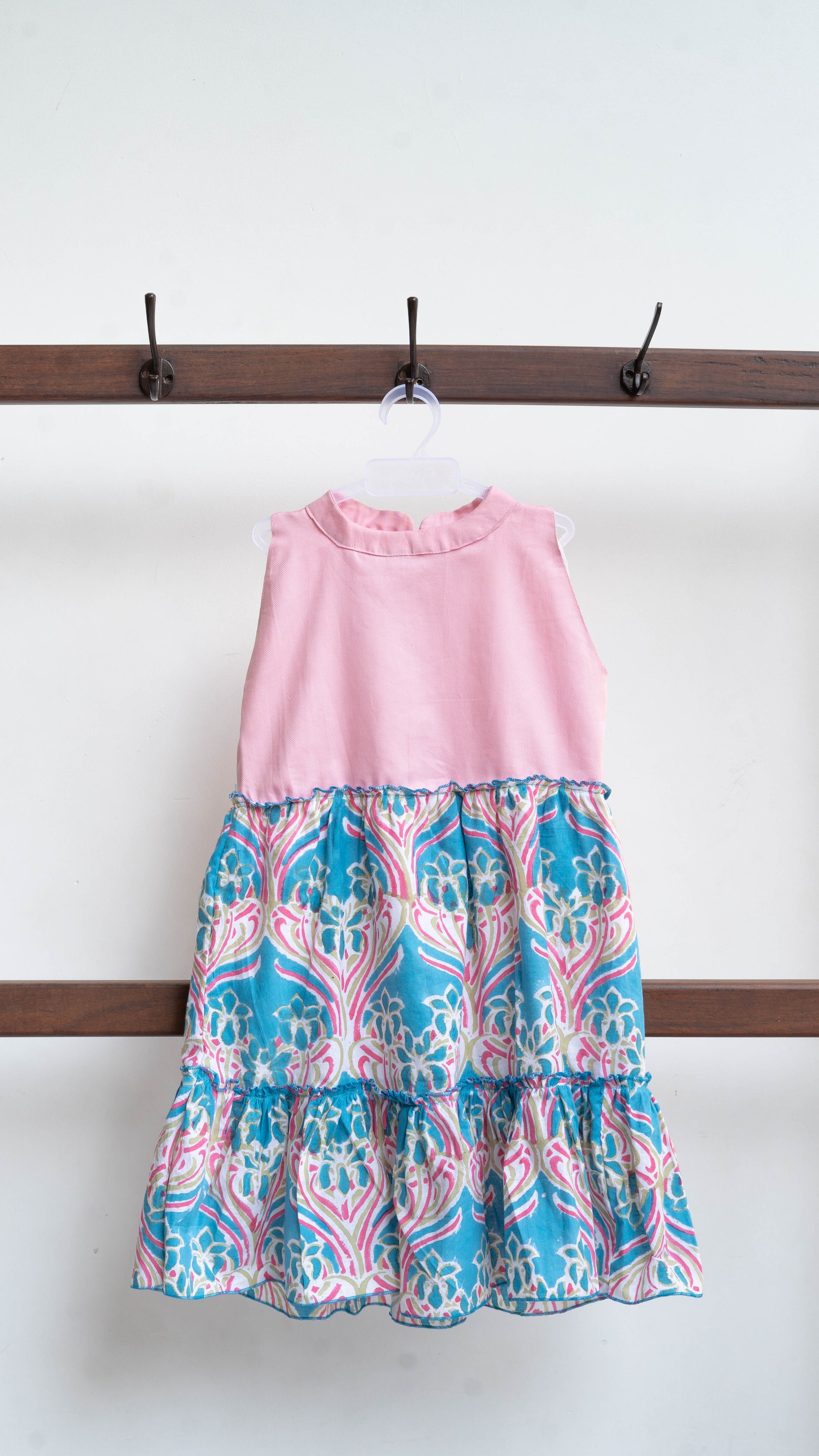 Baby Pink and Blue Paisley Print Cotton Dress