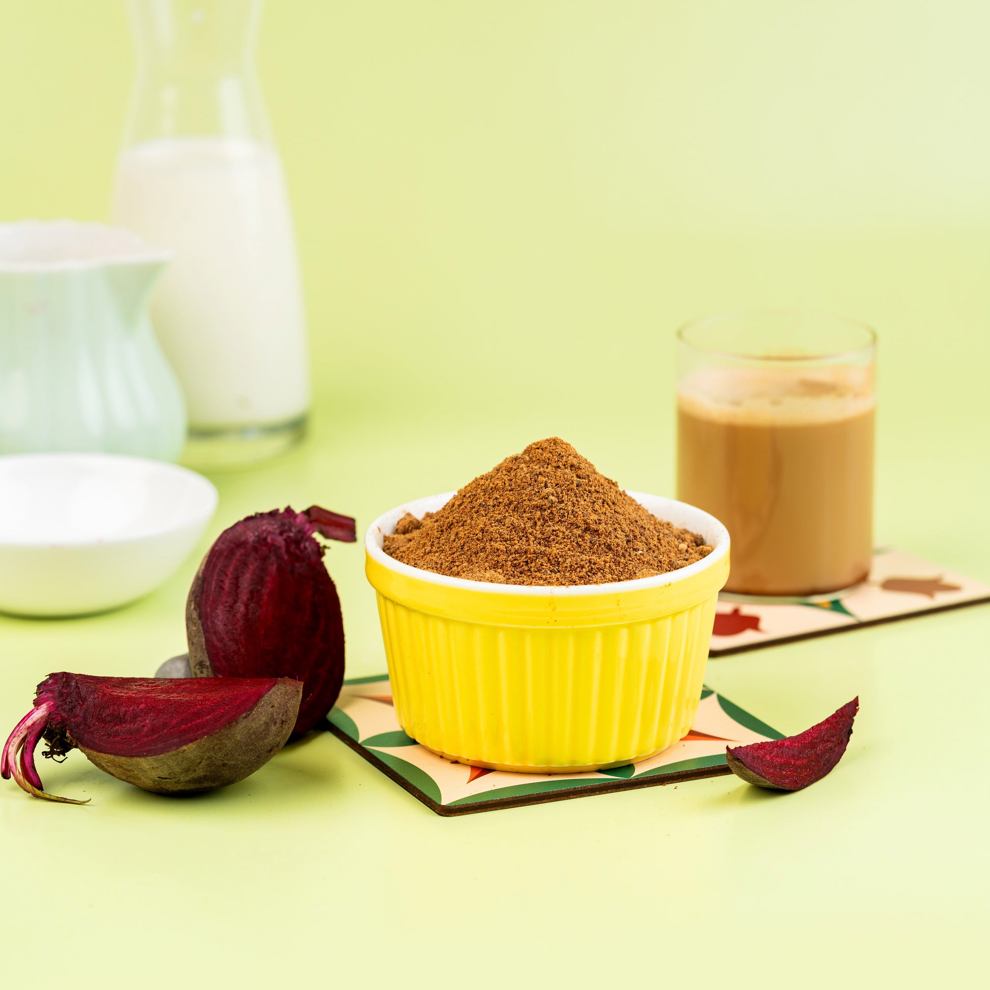 Add 1–2 teaspoons of Beetroot Malt to a glass of warm or cold milk