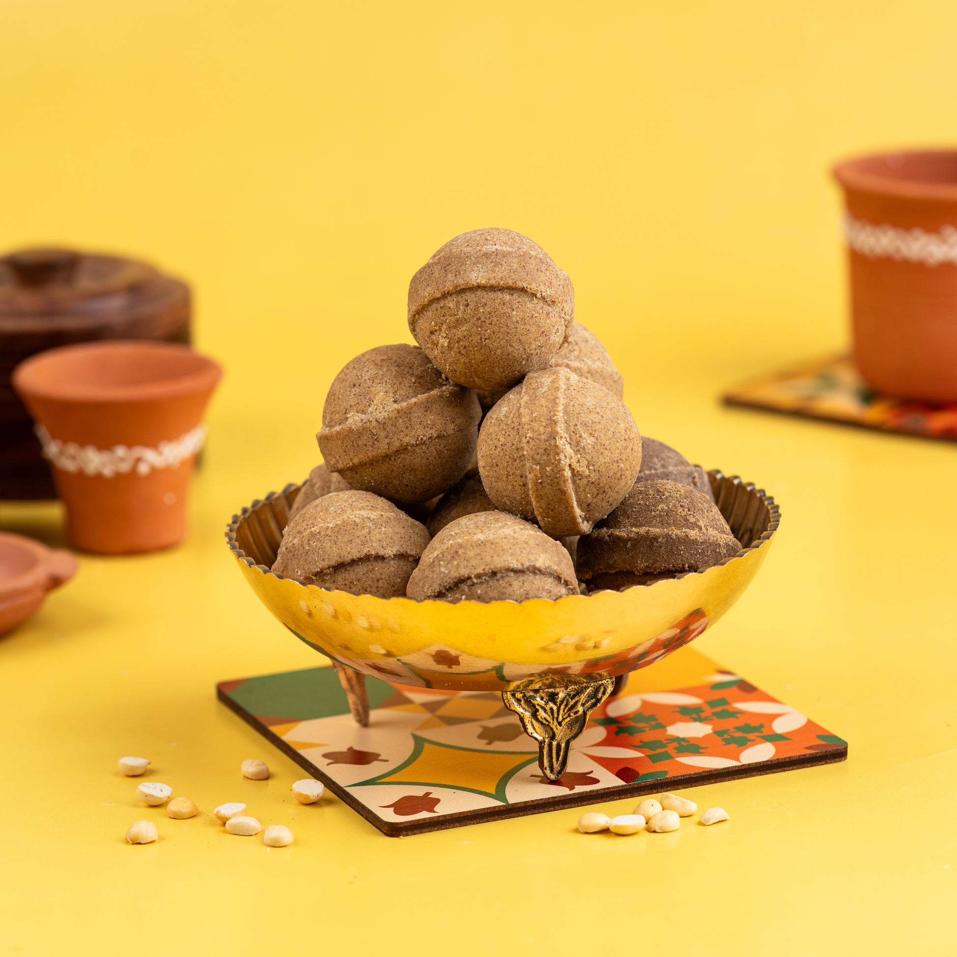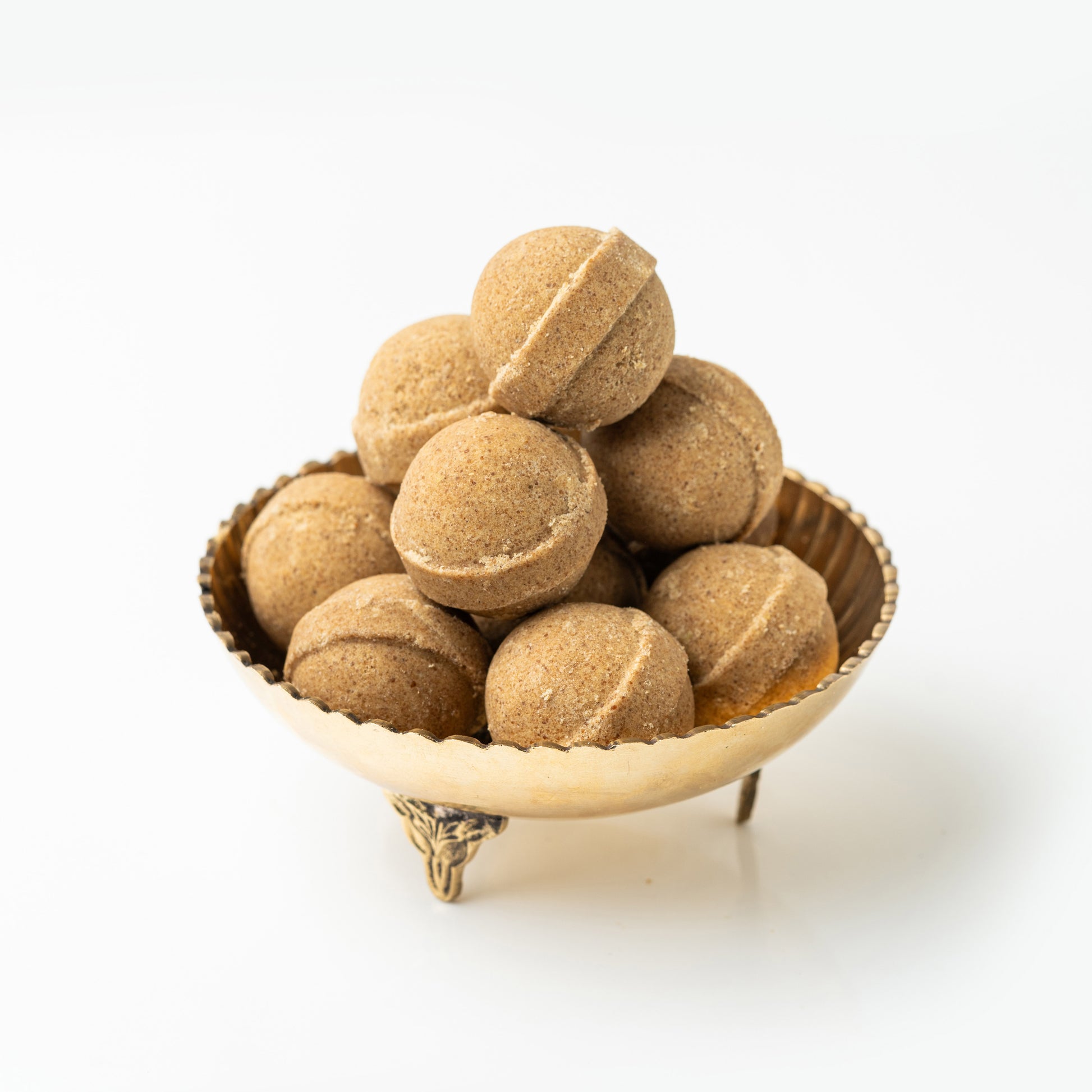 Our Chickpeas Ghee Ladoo, a unique Indian delicacy that combines the nutritional benefits of chickpeas with the creamy indulgence of ghee. This delectable confection is the perfect way to satisfy your cravings while nourishing your body with essential nutrients