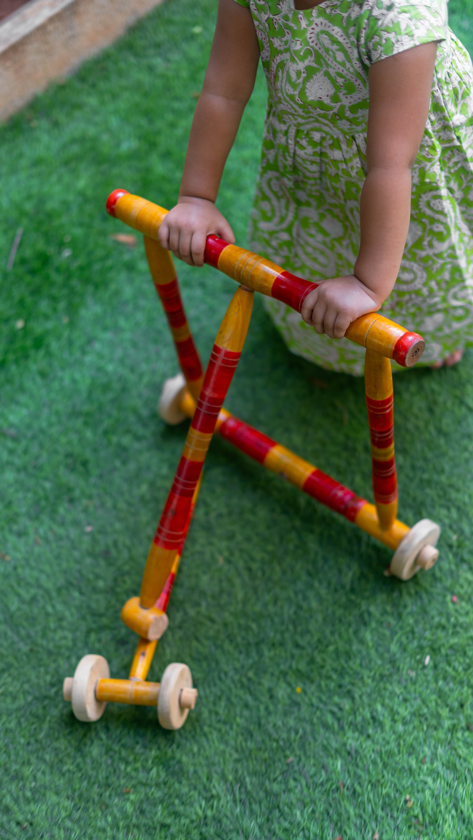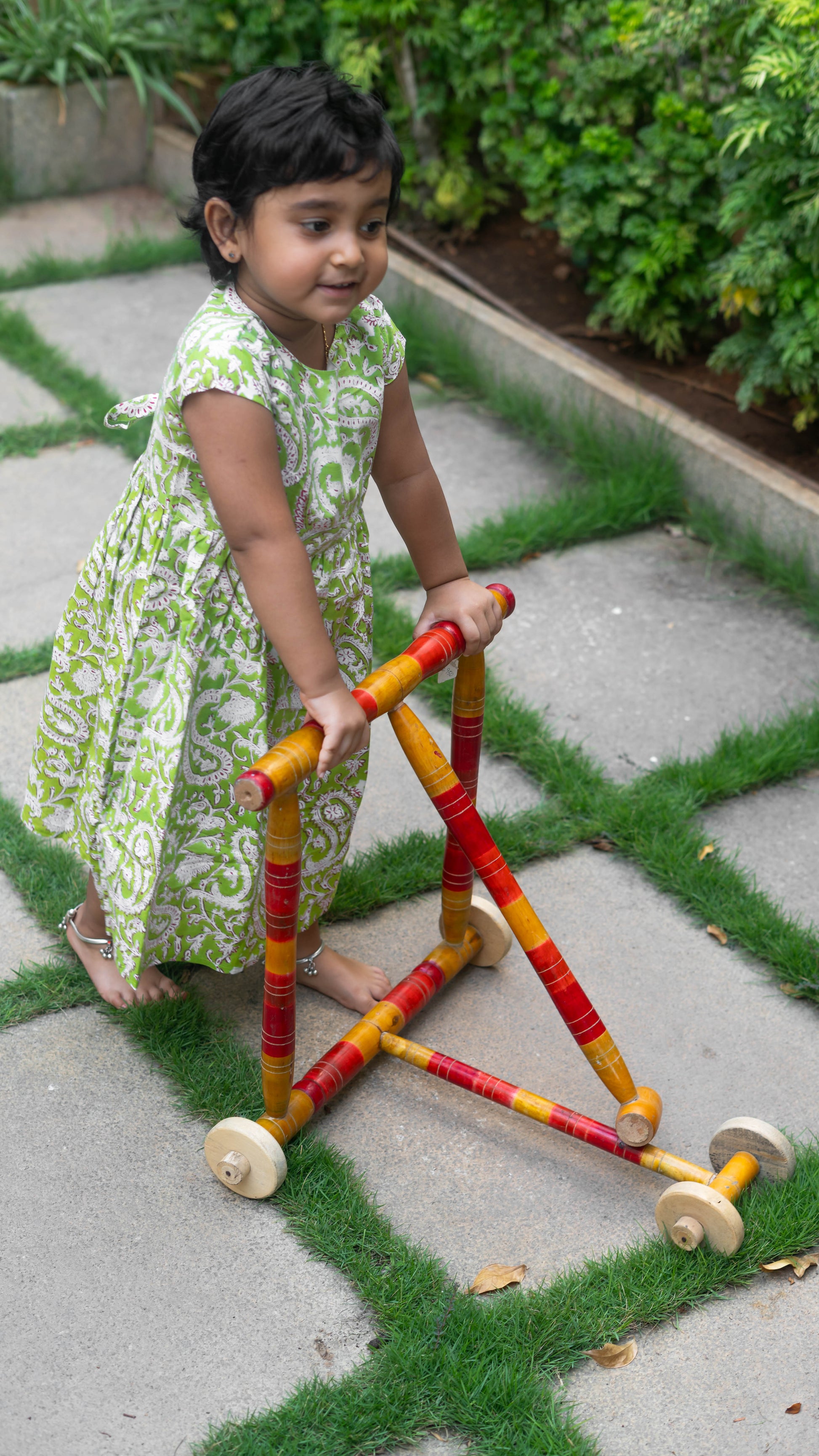 Stepback into the world of nostalgia, as your kid jumpstarts the walking journey with this Handcrafted Coloured Wooden Walker. Seriously, it’s cuter than your average baby gear. Handcrafted vibes? Check. Chunky, natural wood? Yup. Wheels glide along like butter irrespective of whether it's indoors or outdoors.