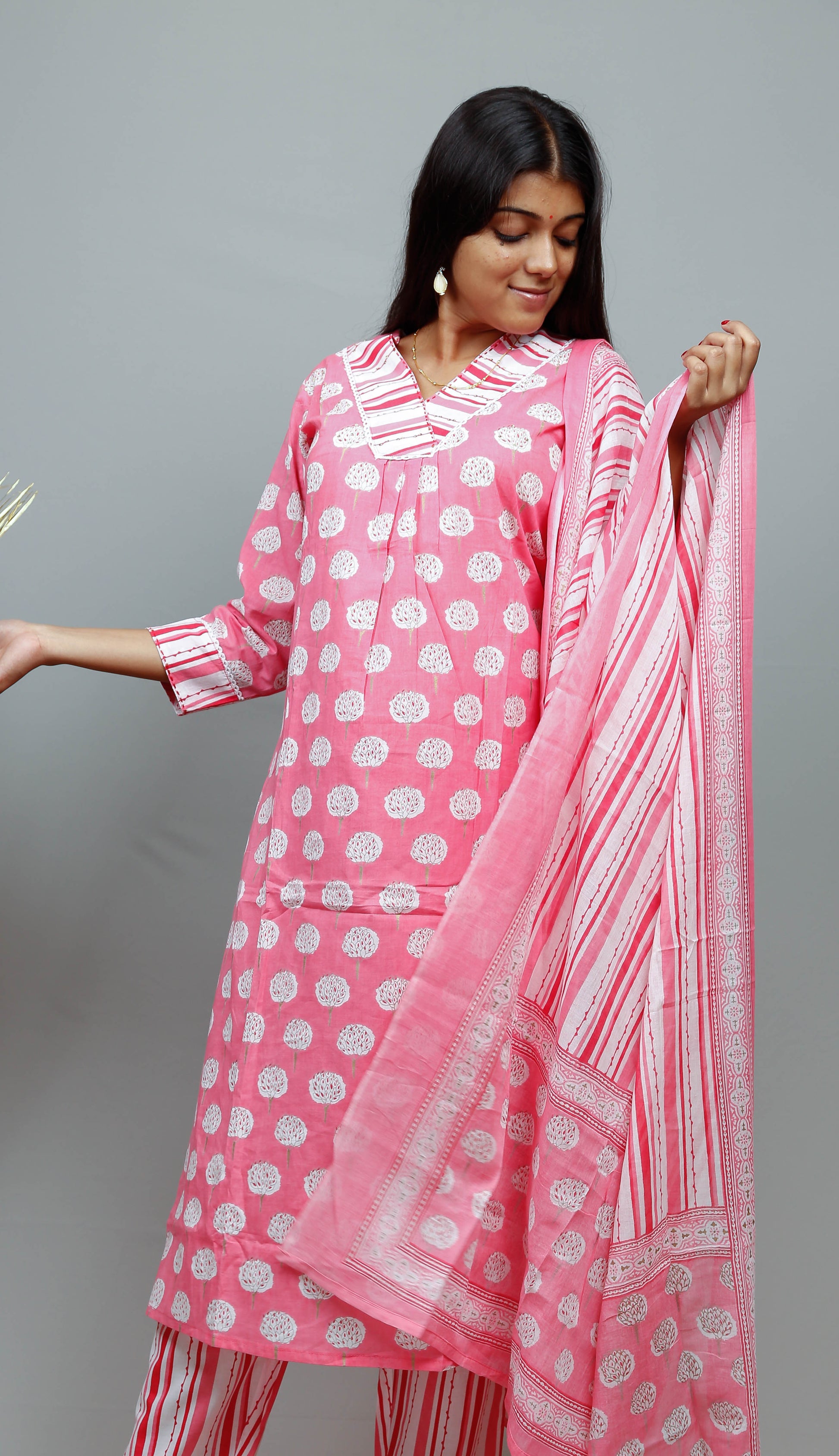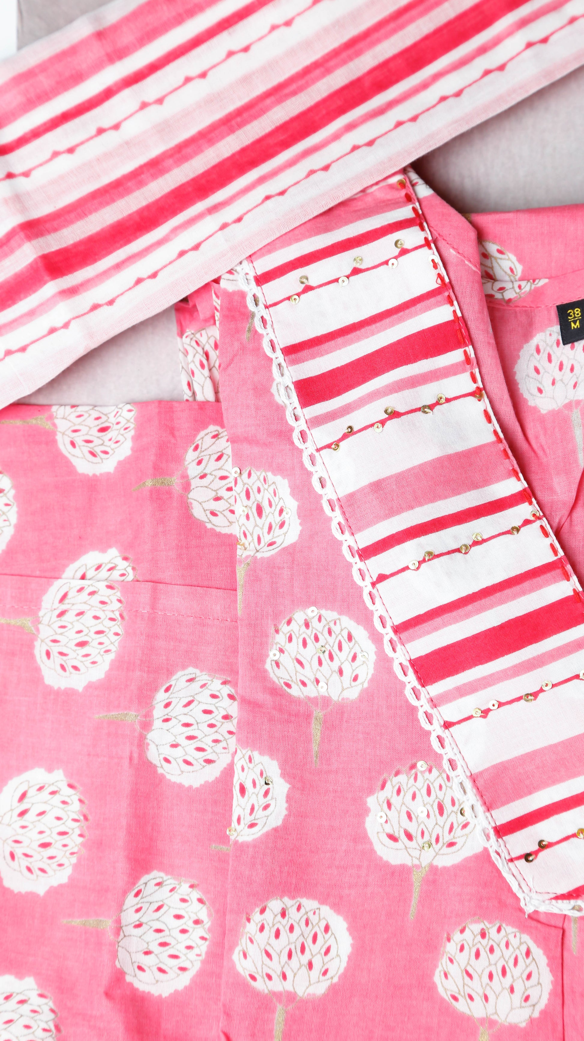 Jaipur cotton top with neck sequence work, straight cut cotton bottom, pure cotton shawl