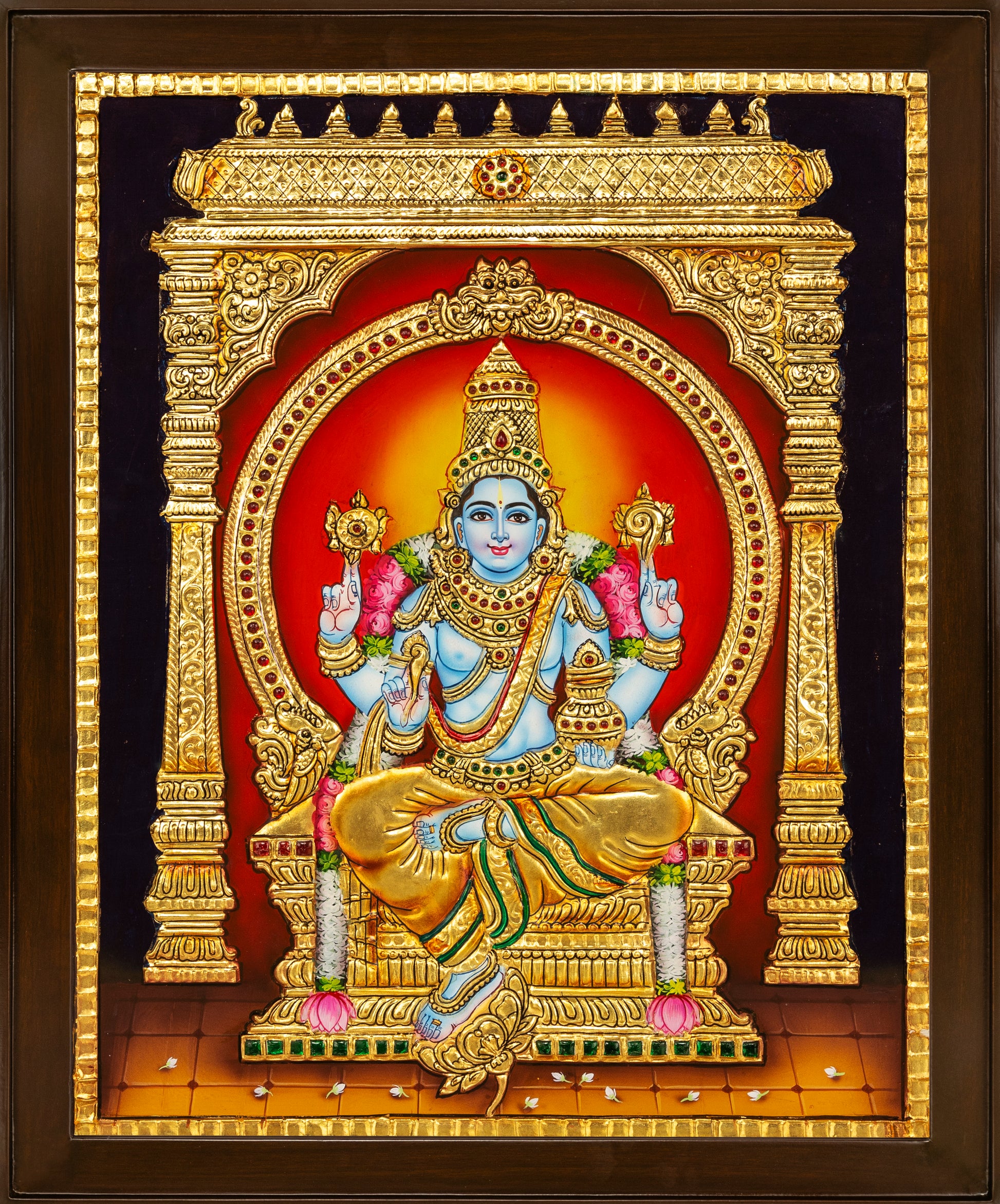 Discover the blend of tradition with timeless elegance forms through our unique collection of authentic handmade Dhanvantri Tanjore painting. We have original on-site designs that are made using traditional techniques plus an elevated level of detail to our Tanjore paintings. We use real 22K gold foils for the artwork and high-quality teak for the frames.