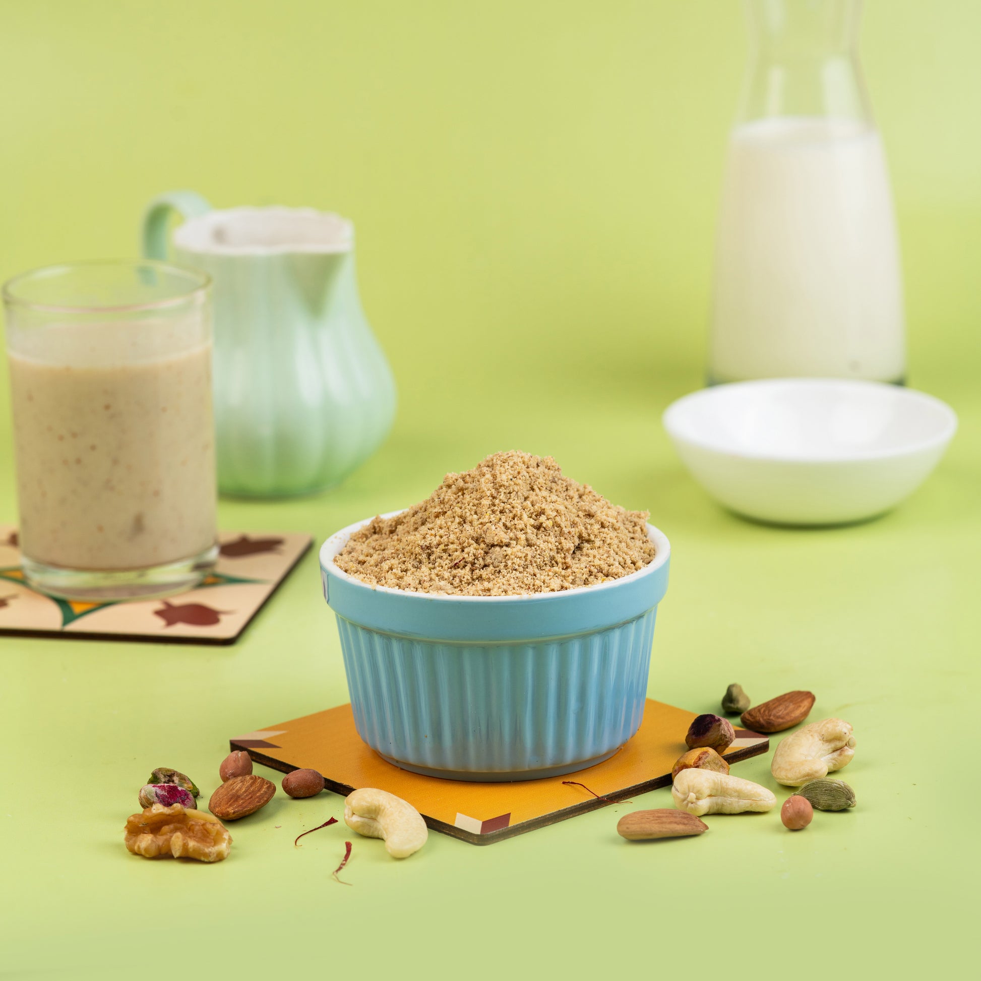 Give your everyday nutrition a wholesome upgrade with our Dry Nuts Powder Mix. This blend includes premium dry fruits like almonds, cashews, and pistachios, all combined with the natural sweetness of palm candy. This mix is not only a tasty addition to your daily routine, but it’s also a great way to fuel your body with essential nutrients.