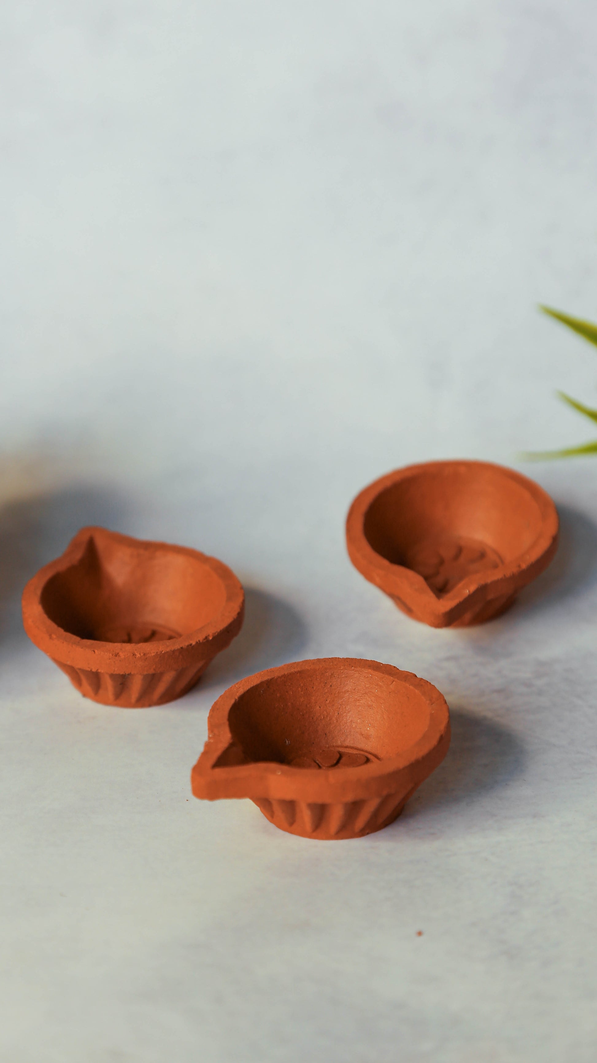 Their earthy, unglazed finish lends a rustic touch, which makes them lovely whether lit up with oil or used as a part of your home decor. Mindfully designed and compostable, they’re not only eco-friendly, they're also a thoughtful gesture towards preserving tradition. Store them for special seasons or share them with your loved ones.
