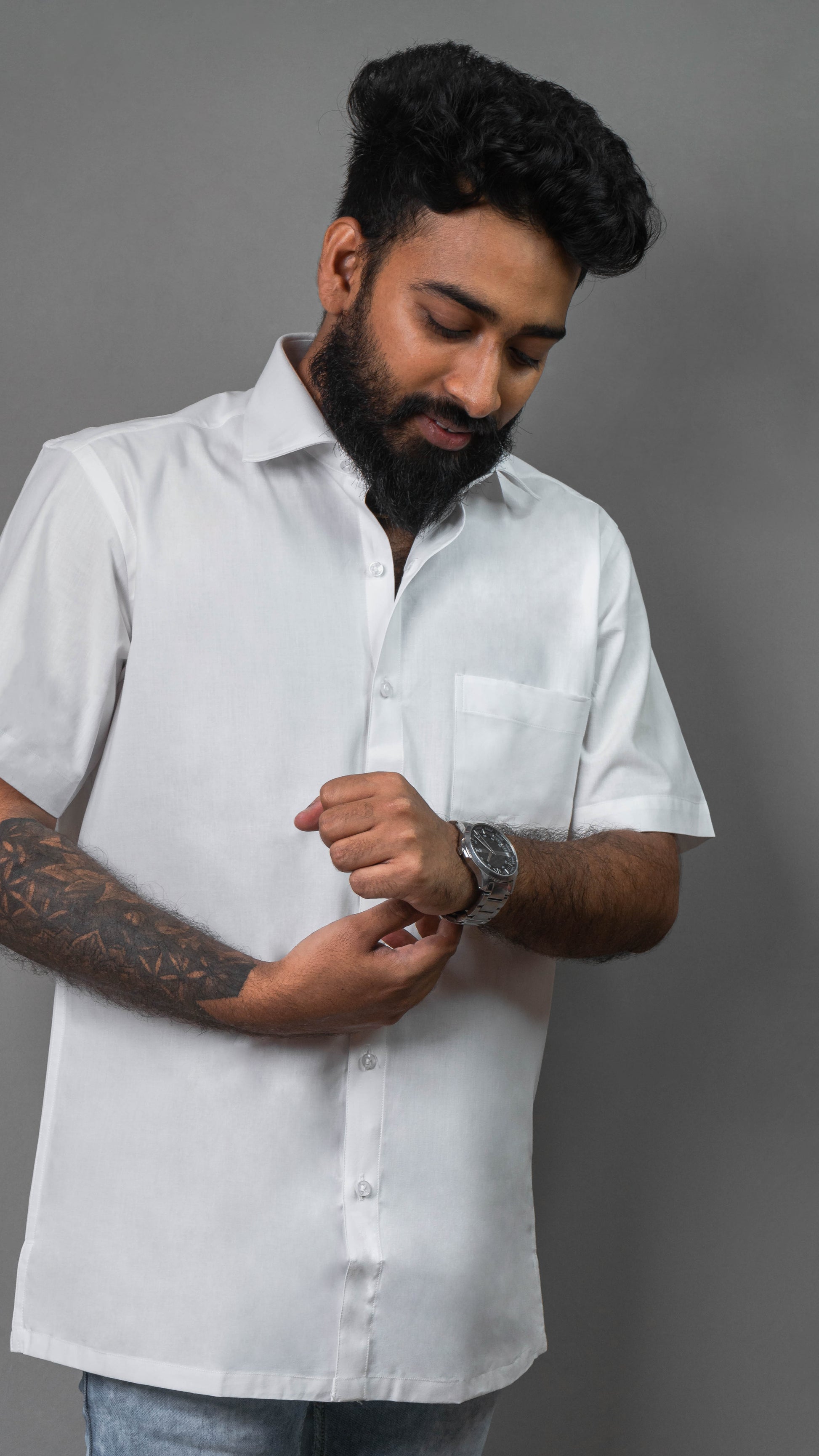 Some things never go out of style, and the Evergreen White Shirt is one of them. Carefully crafted for the modern man, this shirt is made from 100% pure, premium cotton to provide uncompromising breathability and relaxation throughout the day. Whether you're scrambling through work meetings, dashing off to weekend brunches, or simply want to look sharp and effortless, this shirt is your go-to.