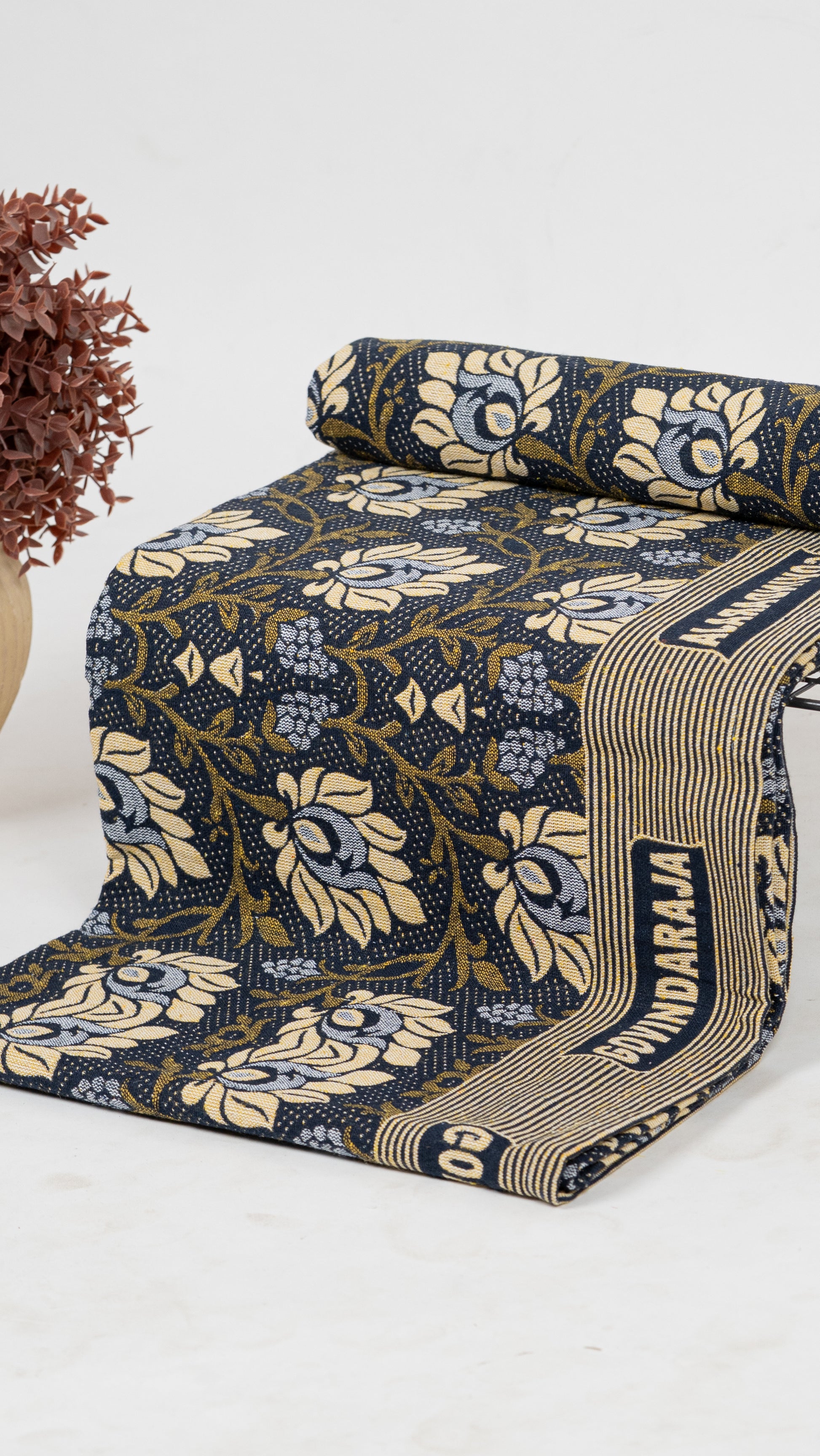 The blanket is soft on the skin, breathable, anti-static, and its medium thickness makes the material ready to use all year round. The moisture-absorbing and anti-static properties ensure a comfortable surface for sleeping that will not irritate the user, including those possessing sensitive skin. Hand-woven in the town of Chennimalai, in Erode, providing a warm glow that naturally blends into both modern and traditional spaces.