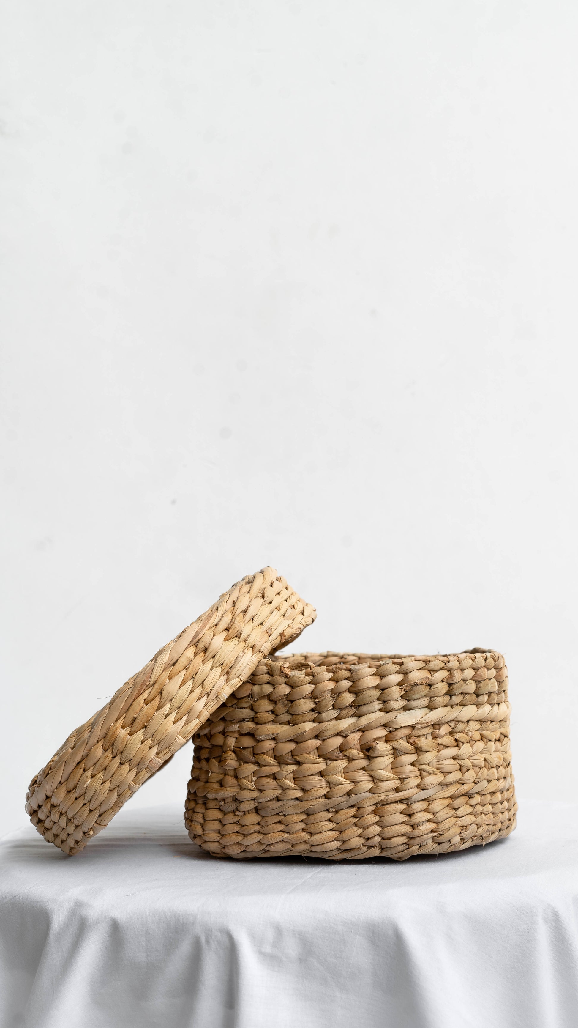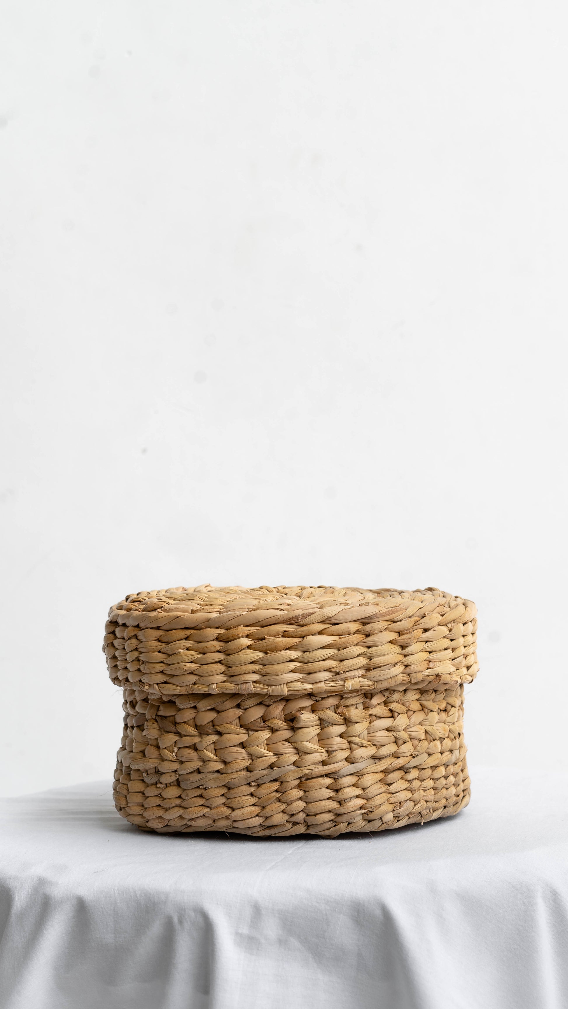 Seal your gift with style using our Round Gift Hamper with a Lid. Your hamper is hand-woven from sustainable Kauna reed. This eco-friendly round basket combines practicality with rustic vibes in one design you'll love! The round shape is perfect for items of all kinds - whether you want to include chocolates, gourmet treats, beauty care products, or small home decor objects, the options are endless.