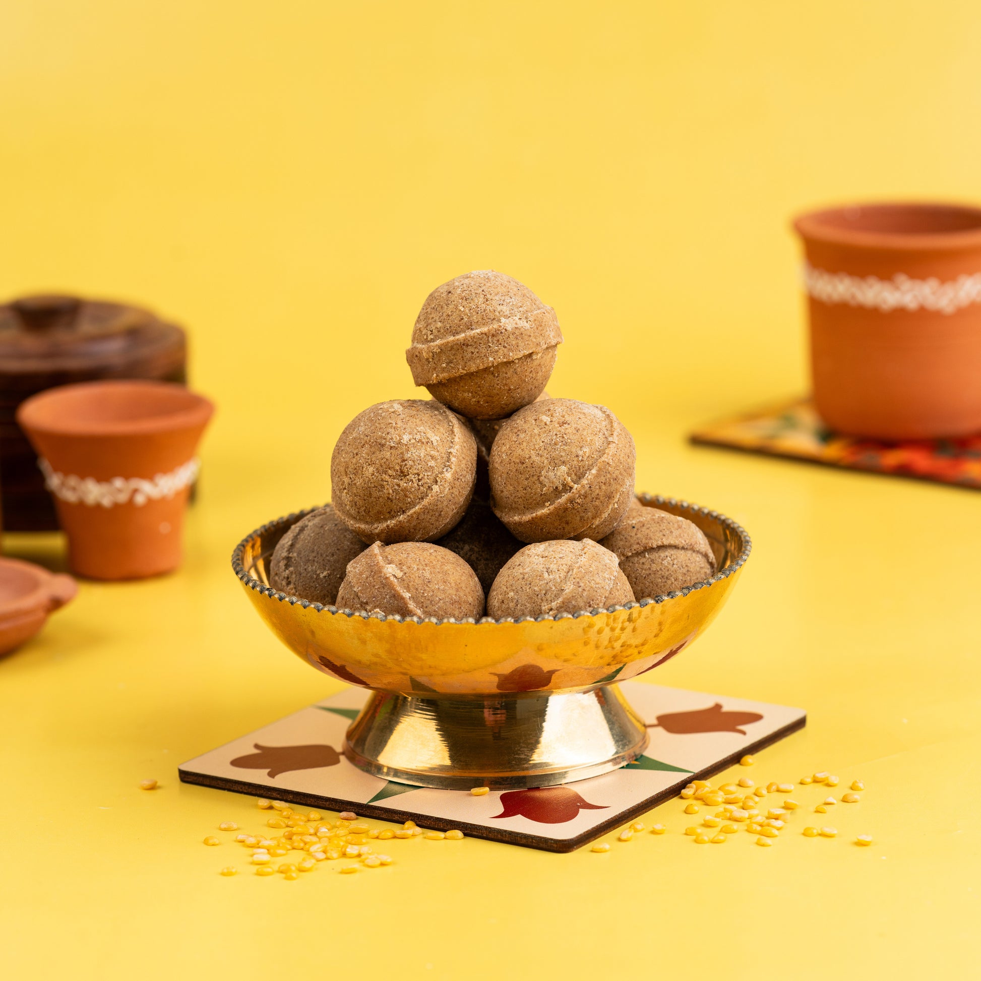 Discover the secret to guilt-free indulgence with Paasi Payaru Ghee Ladoo! This remarkable confection combines with vitamin B9 and folic acid for enhanced cell function. This is low in fat and high in fiber to support digestive health.