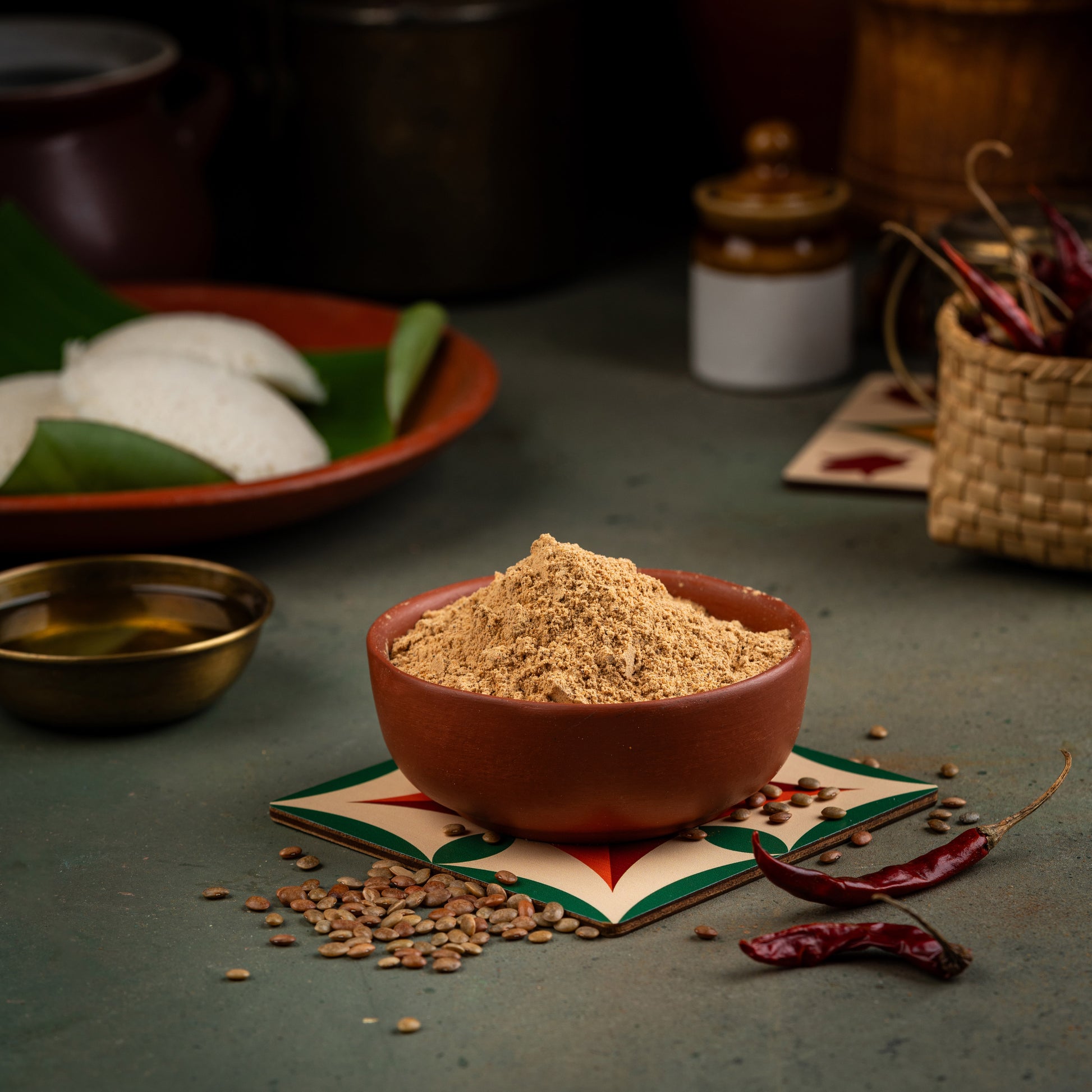 Kollu Podi blends wonderfully with rice, adding a rich, spicy flavor. Simply mix it with warm rice and a bit of oil or ghee for a delicious and nutritious dish.