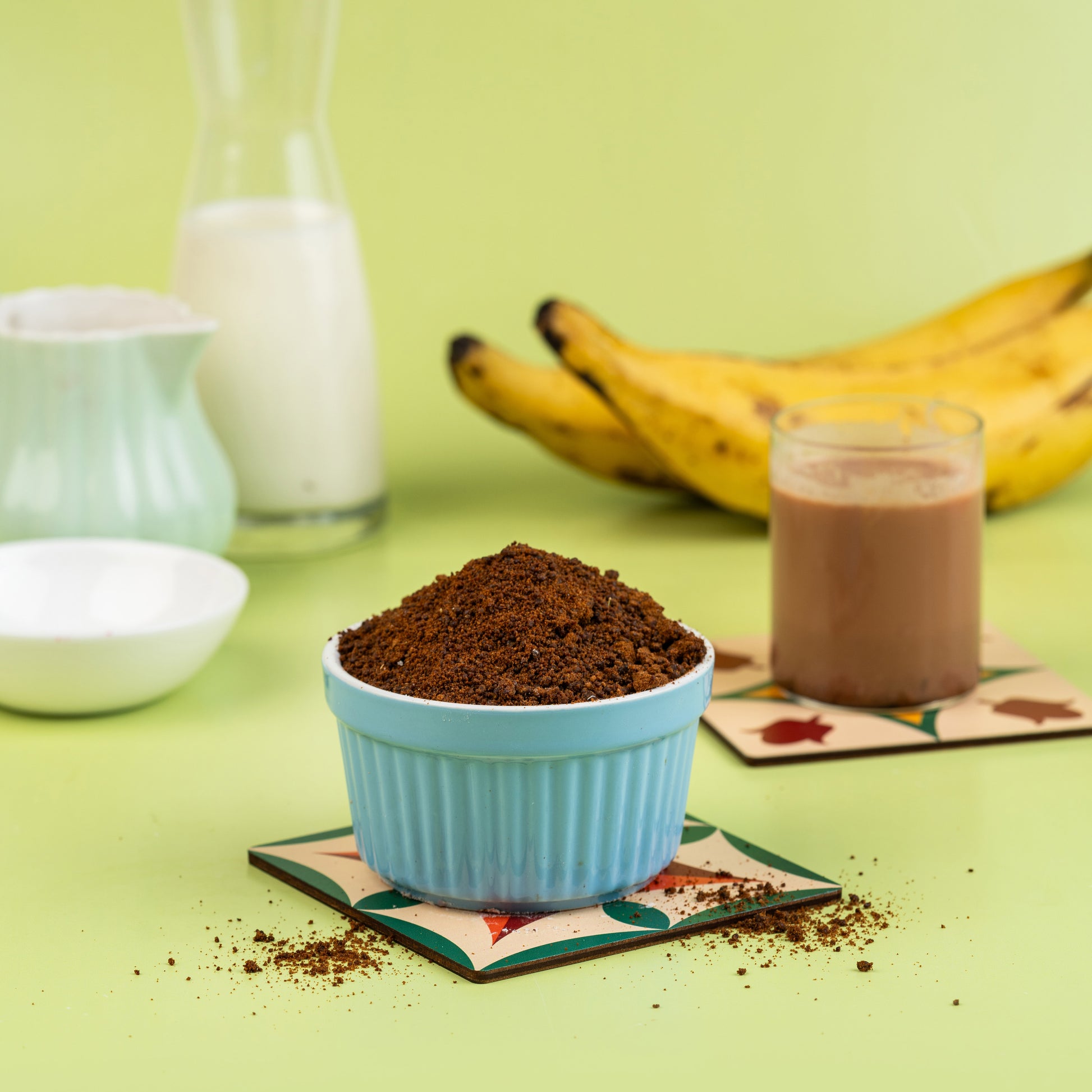 Our Kerala Banana Malt is made from carefully sun-dried bananas, blended with organic ingredients like palm jaggery or nattu sakkarai, and a touch of natural cardamom for that amazing aroma and taste. It's 100% natural, without added preservatives or artificial flavors, and contains no refined sugars—just pure banana bliss.