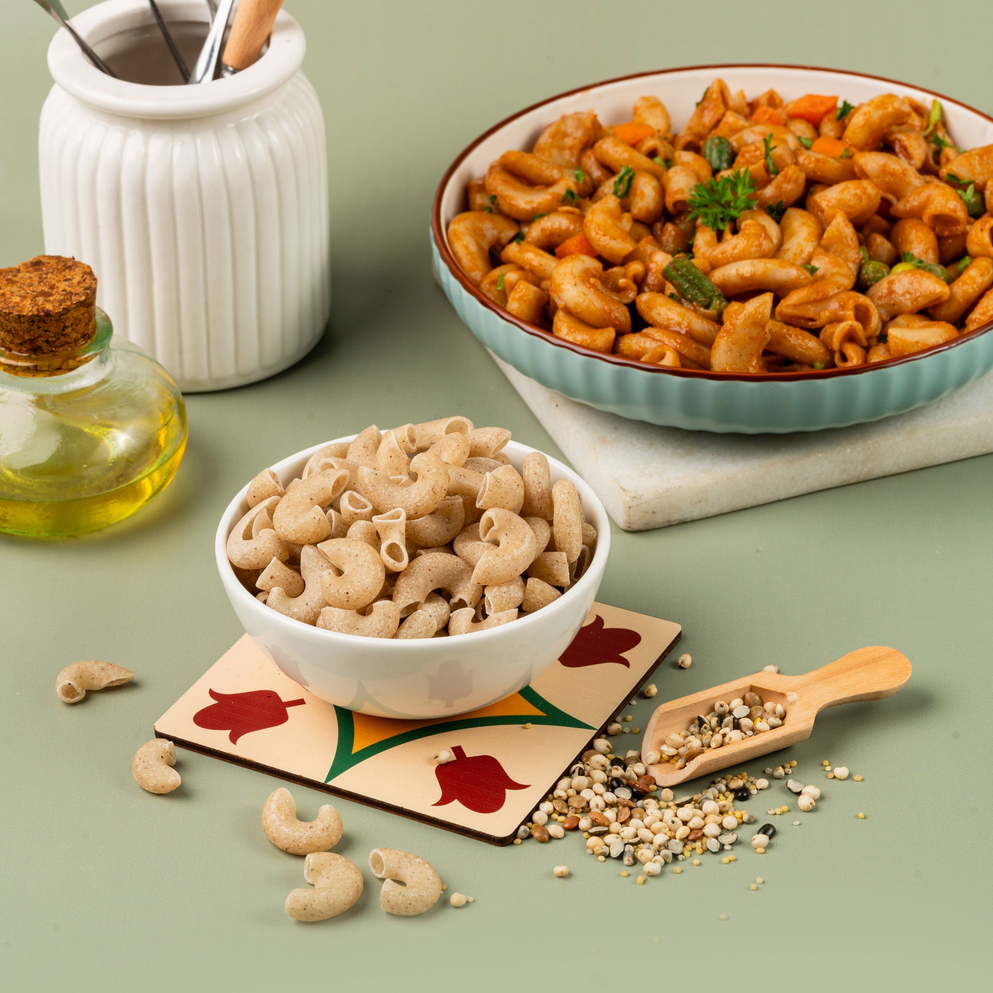 Ready for a pasta that's both delicious and nutritious? Our நவதானியம் Pasta blends nine wholesome millets into every bite. How about a meal that's as satisfying as it is healthy? Elevate your dining experience with a pasta that’s not just good for you, but also incredibly tasty!