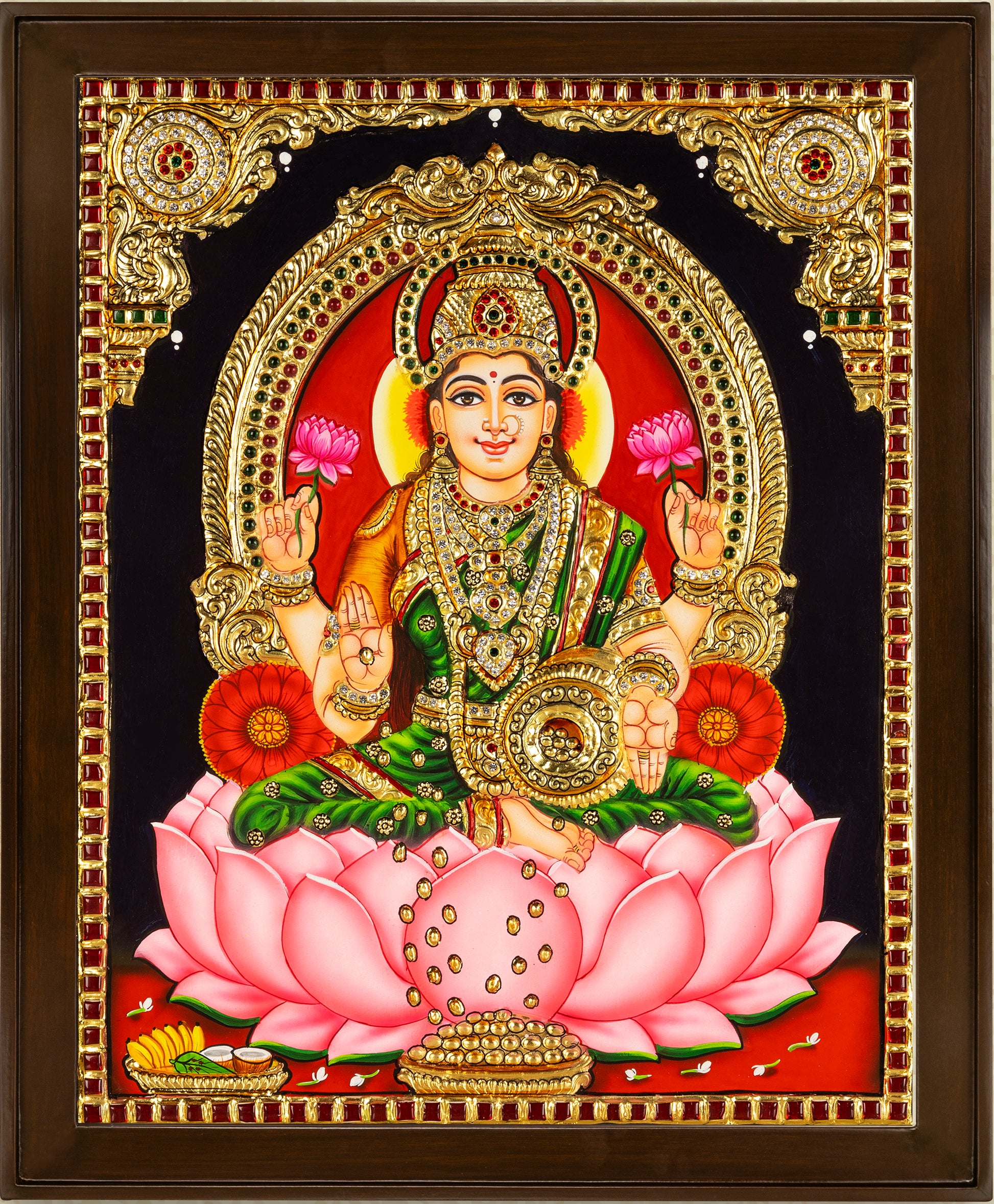 Lotus Lakshmi Tanjore Painting - Single embossed