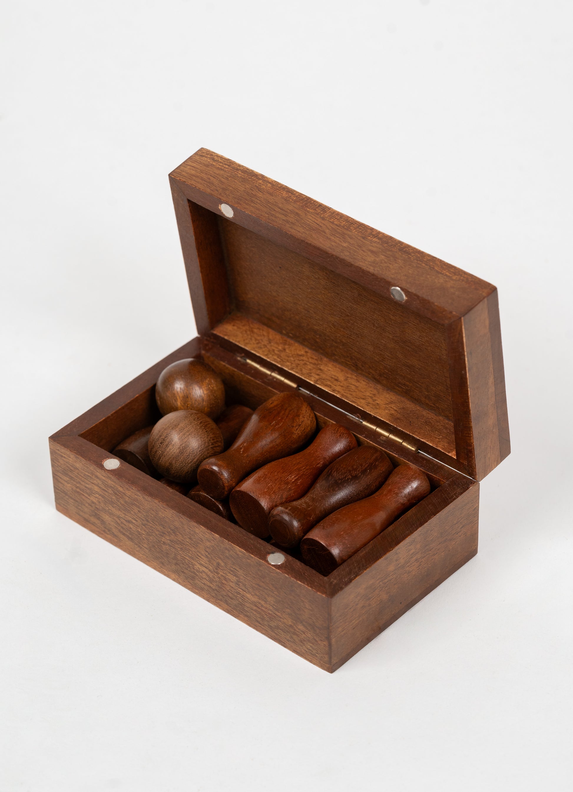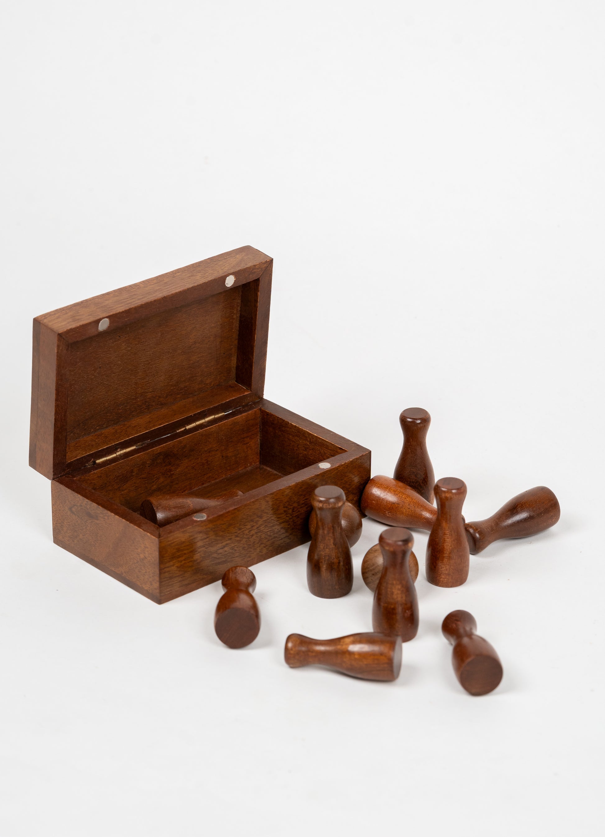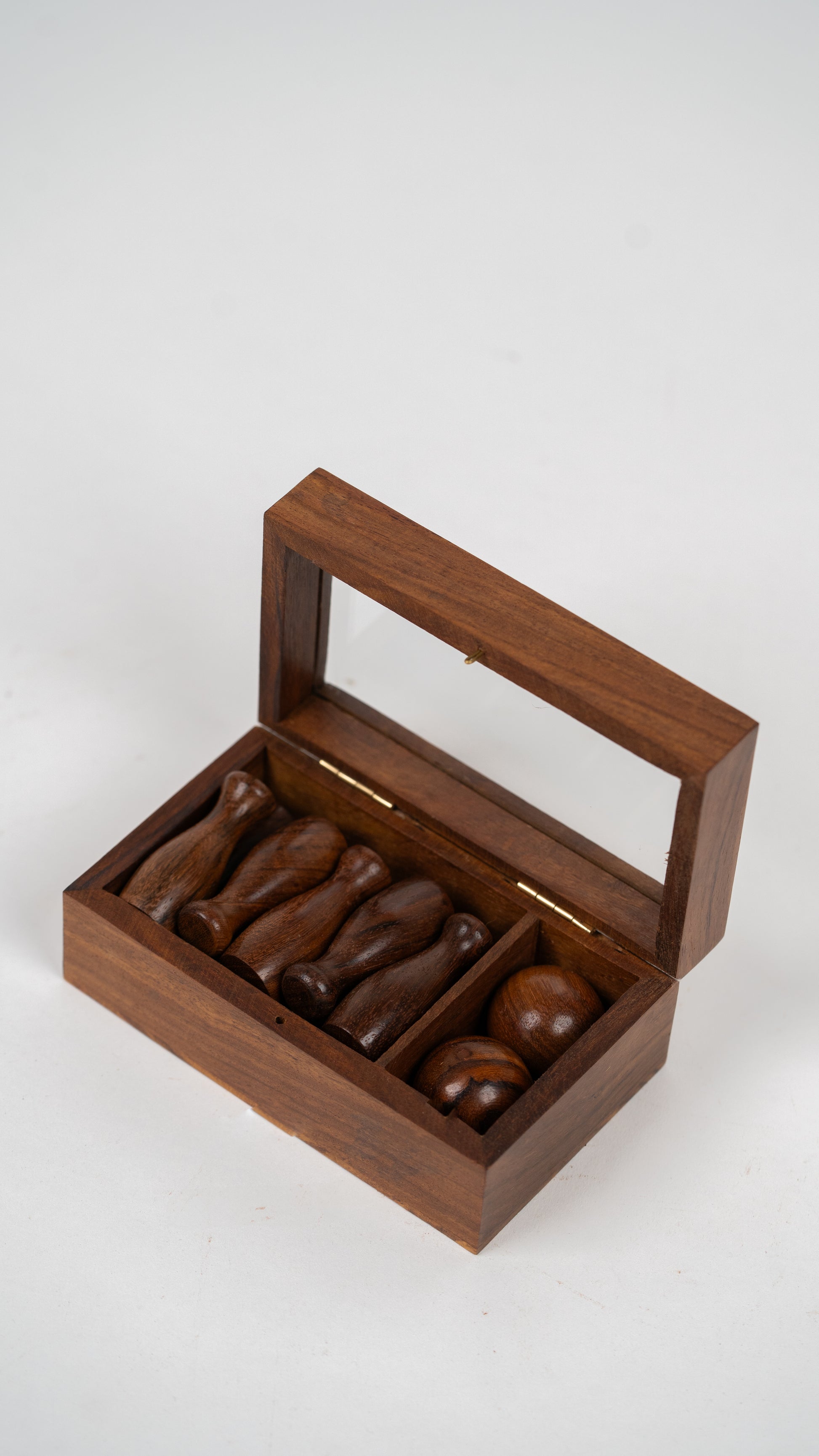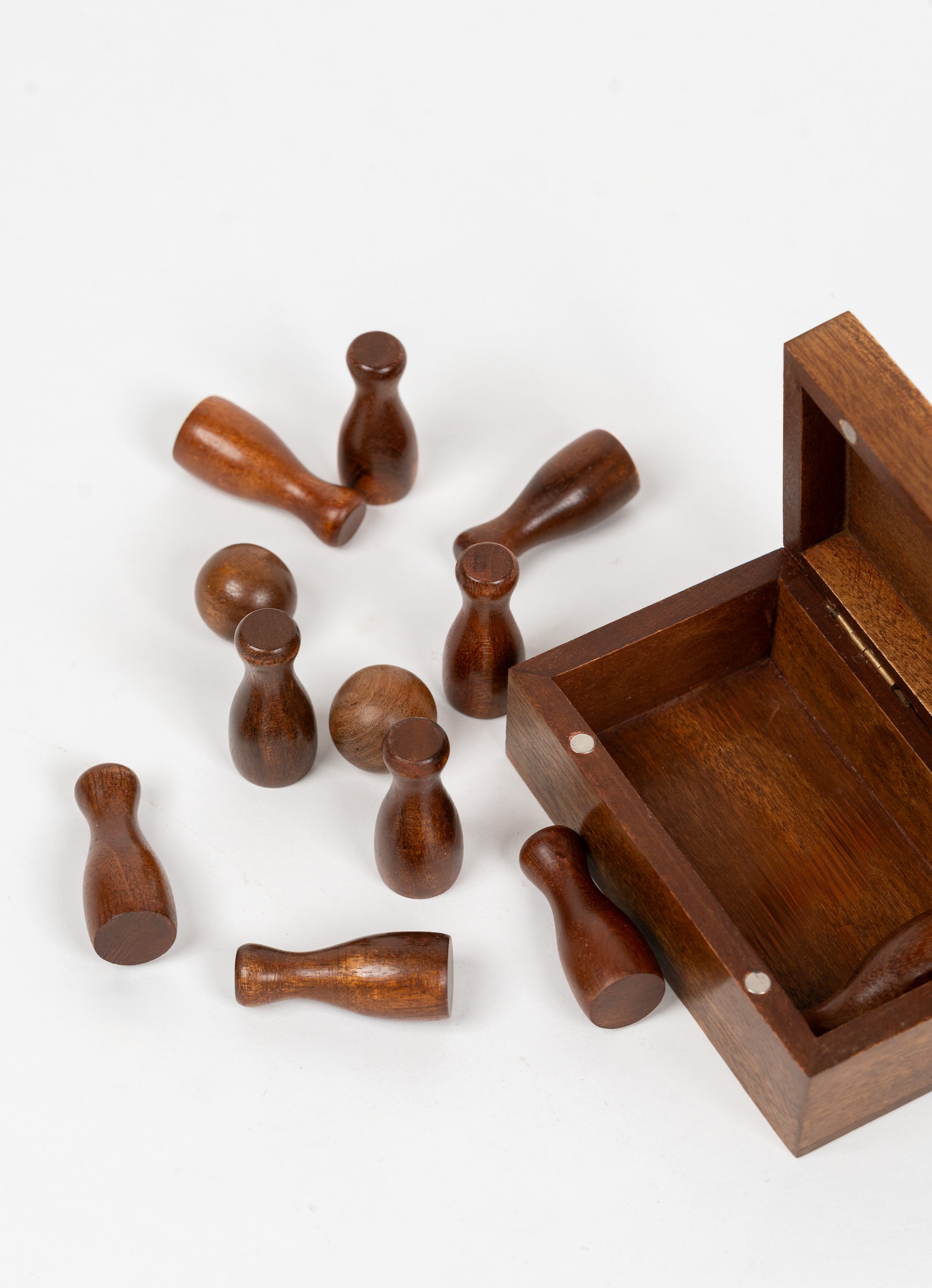 Have some fun with this wonderfully handcrafted Wooden Mini Bowling Game, made from smooth, durable acacia wood. Children can roll the ball to knock down pins, much as in actual bowling, but in miniature!