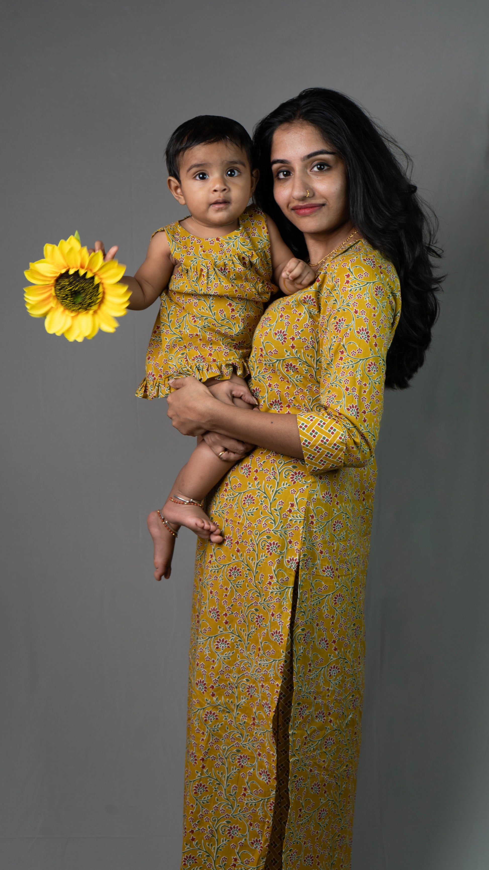 Bright and cheerful mustard yellow meets elegant green floral vines in this sunny Mom and Me Matching Outfit Set. The right combination of vibrant hues makes it an ideal option for festive brunch, family functions, or one of those spontaneous twinning photos at home.
