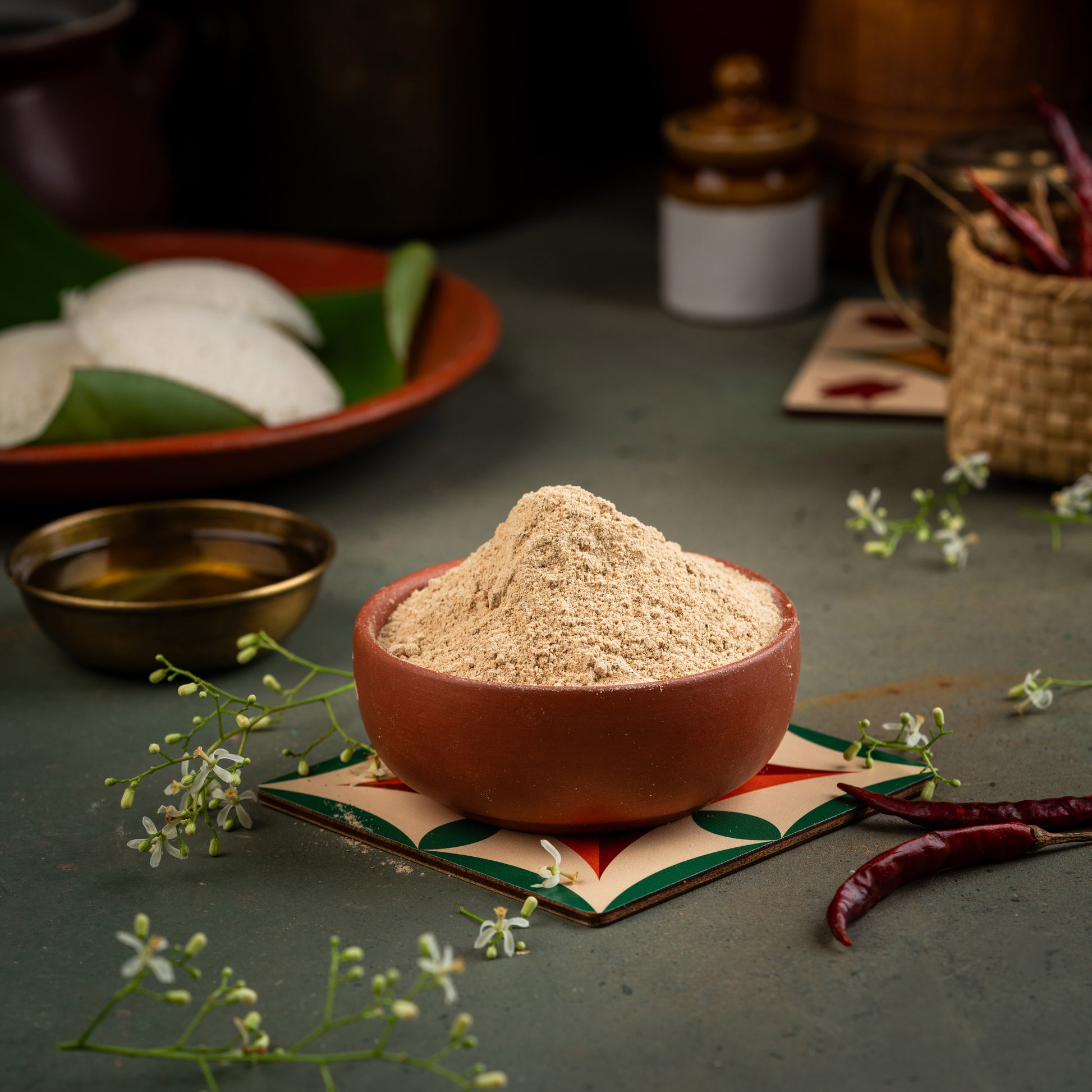 Veppam Poo Podi is a South Indian spice mix made from dried neem flowers, known for its unique, slightly bitter flavor. It adds a distinct taste to rice and vegetable dishes. Besides its culinary use, it’s valued for its potential digestive and detoxifying benefits.