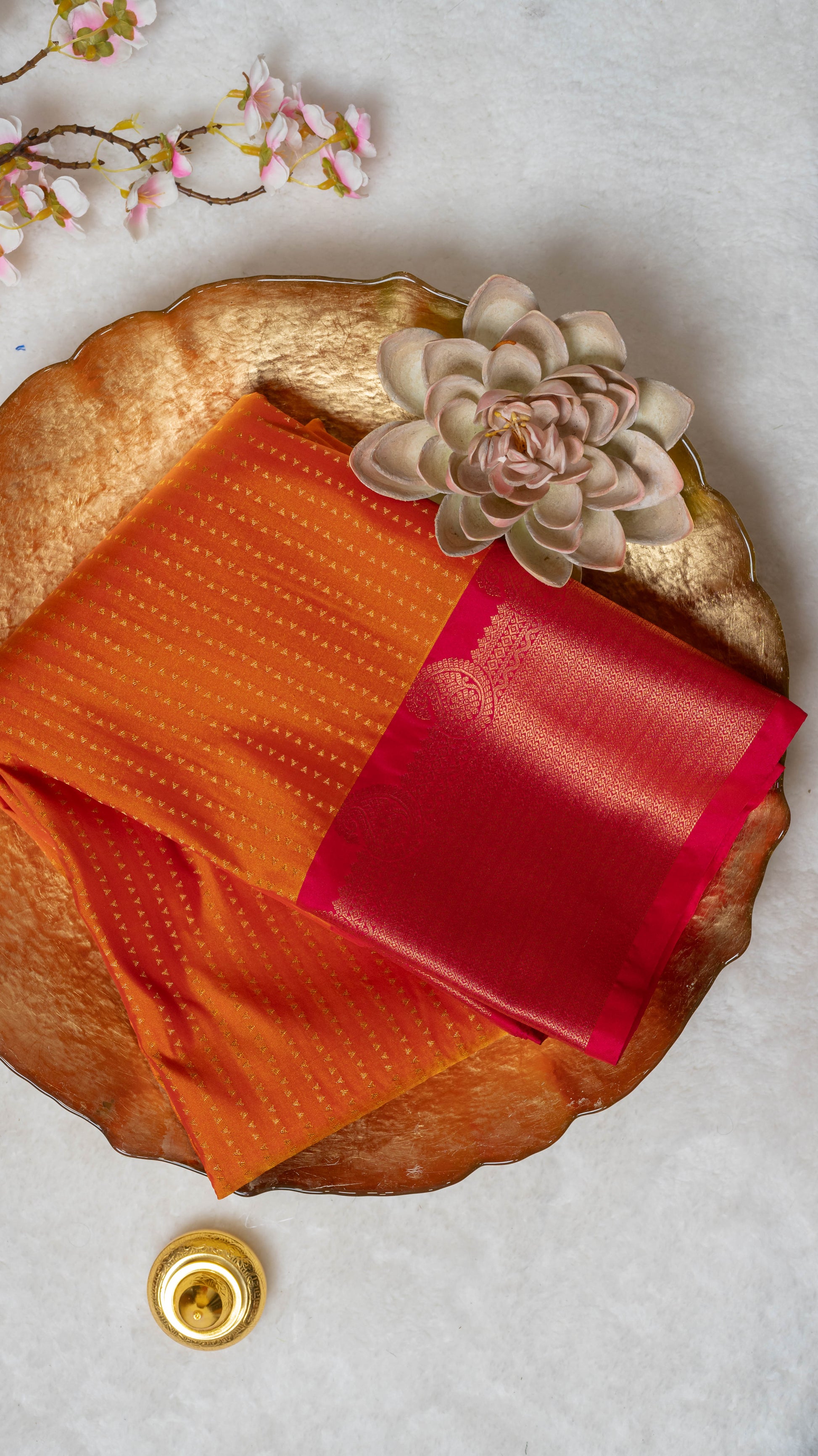 Orange Premium Semi-Kanchi Silk Saree with Blouse