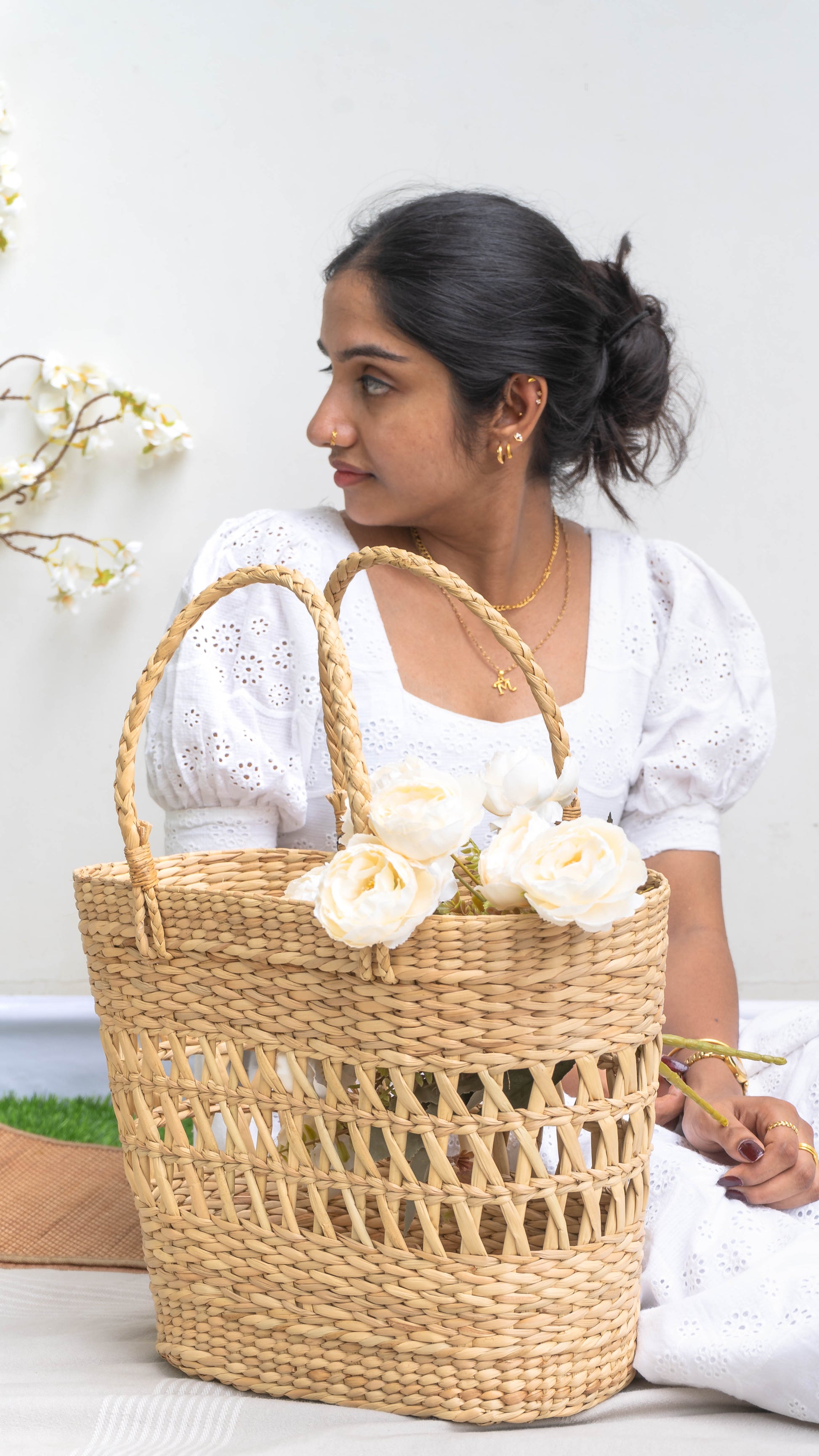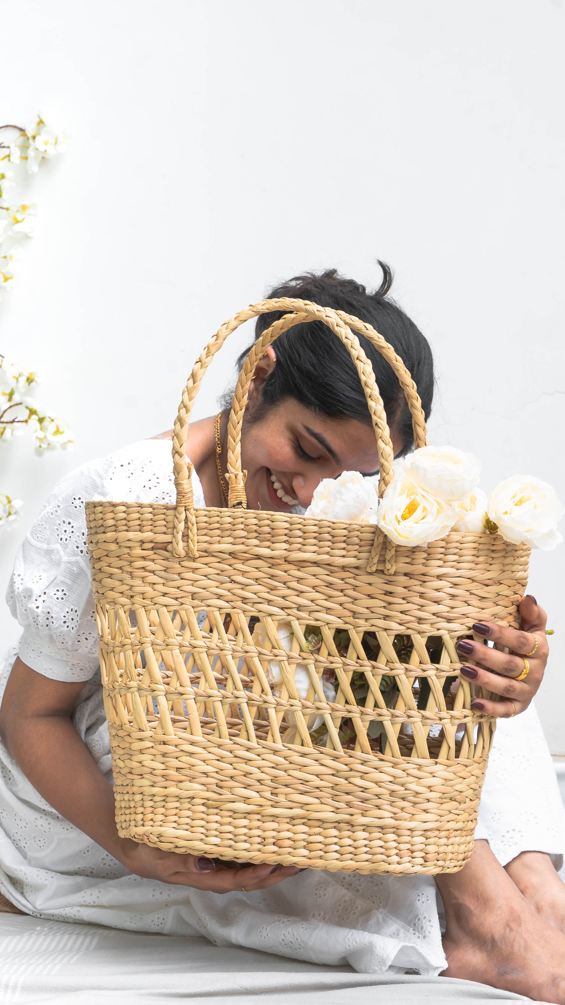 Walk into style on your next shopping spree with our Eco-Friendly & Biodegradable Oval Market Bag made with Kauna Grass. The lightweight and durable bag is designed for everyday practical use.