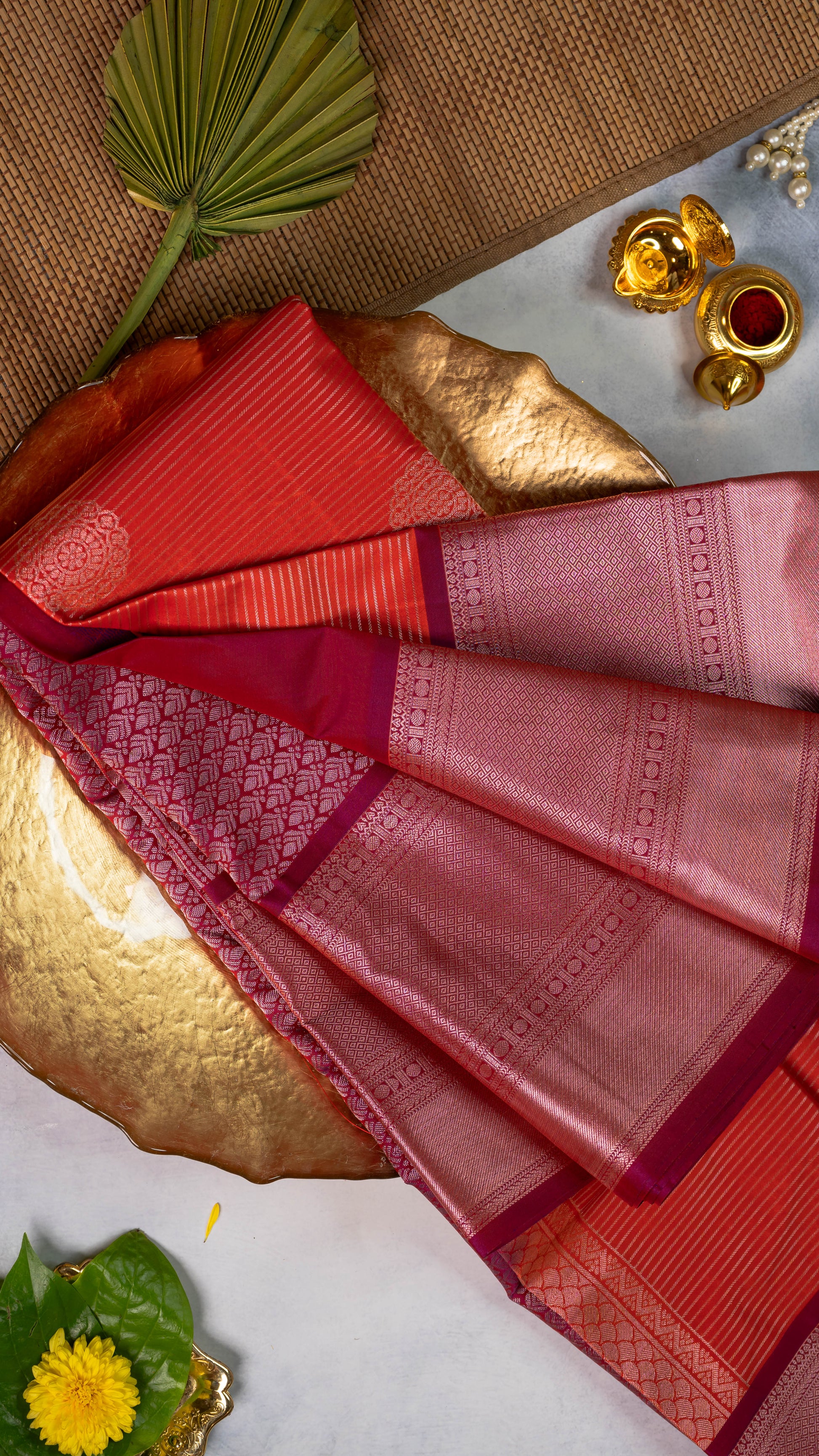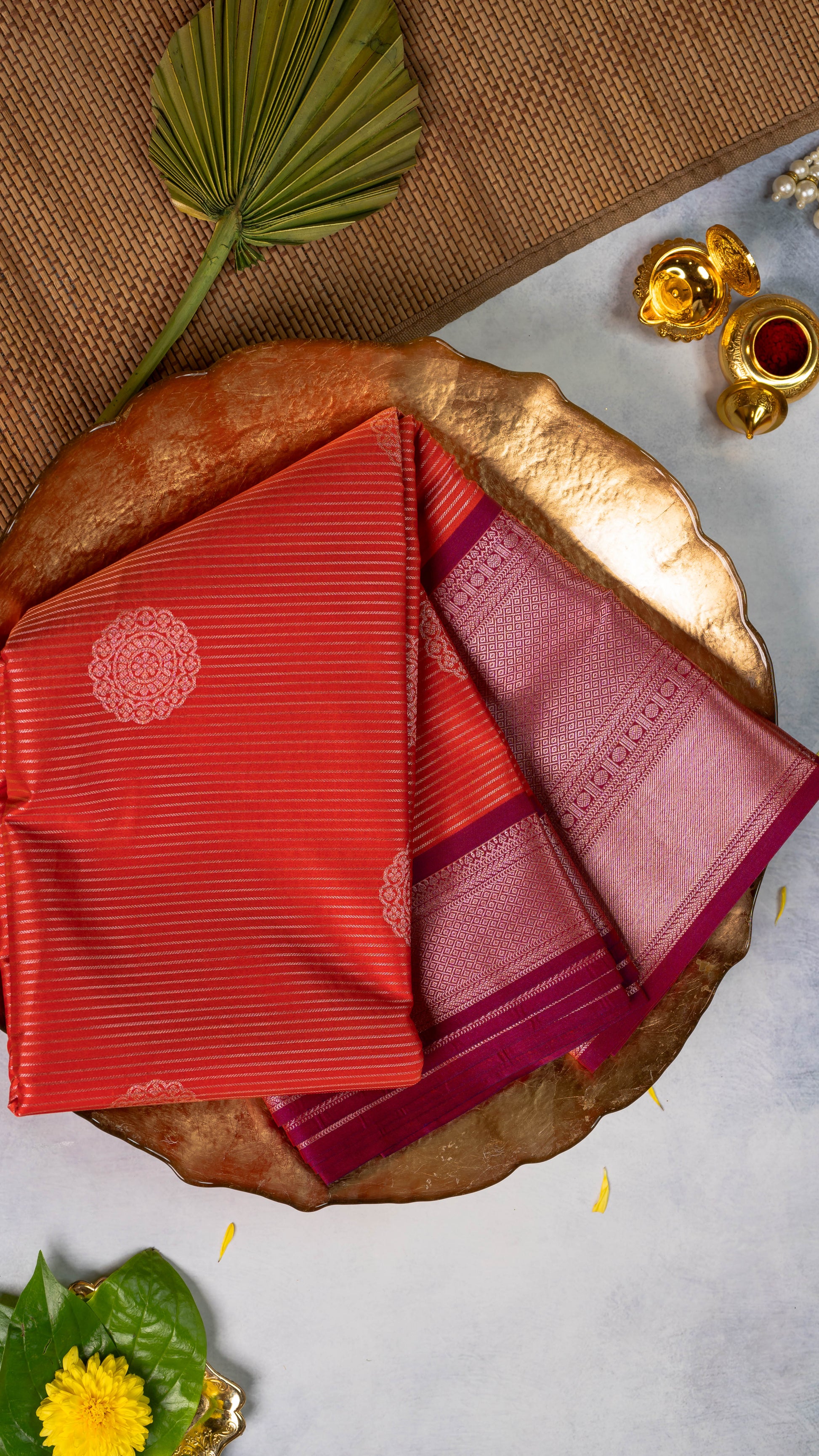 Orange Premium Semi-Kanchi Silk Saree with Blouse