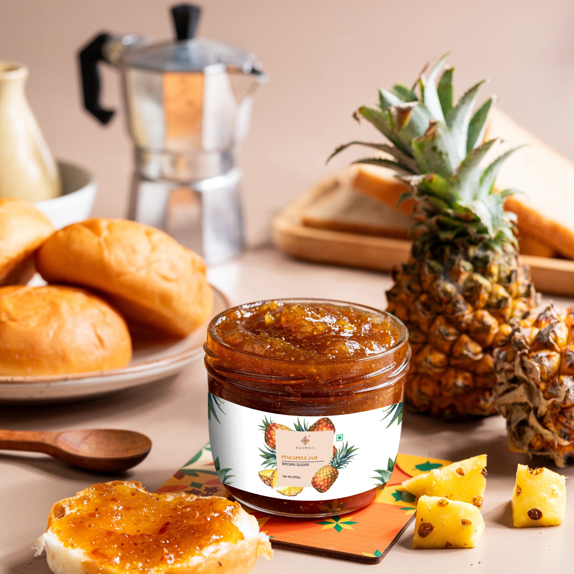 Savor the tropical flavor of pineapples with this bright and fruity jam, which captures the juicy essence of fresh pineapples and offers a rich, caramel-like depth and complexity.