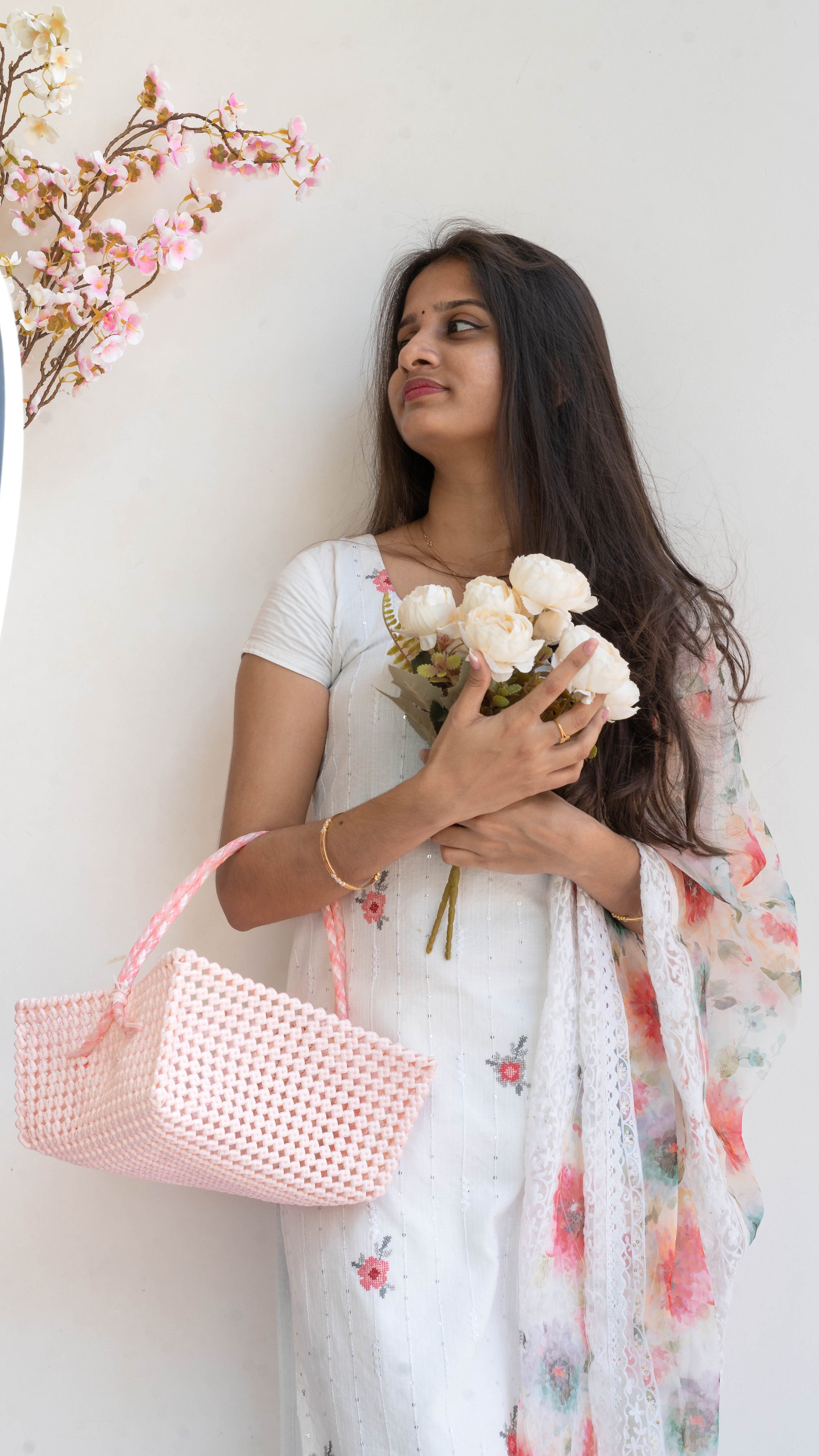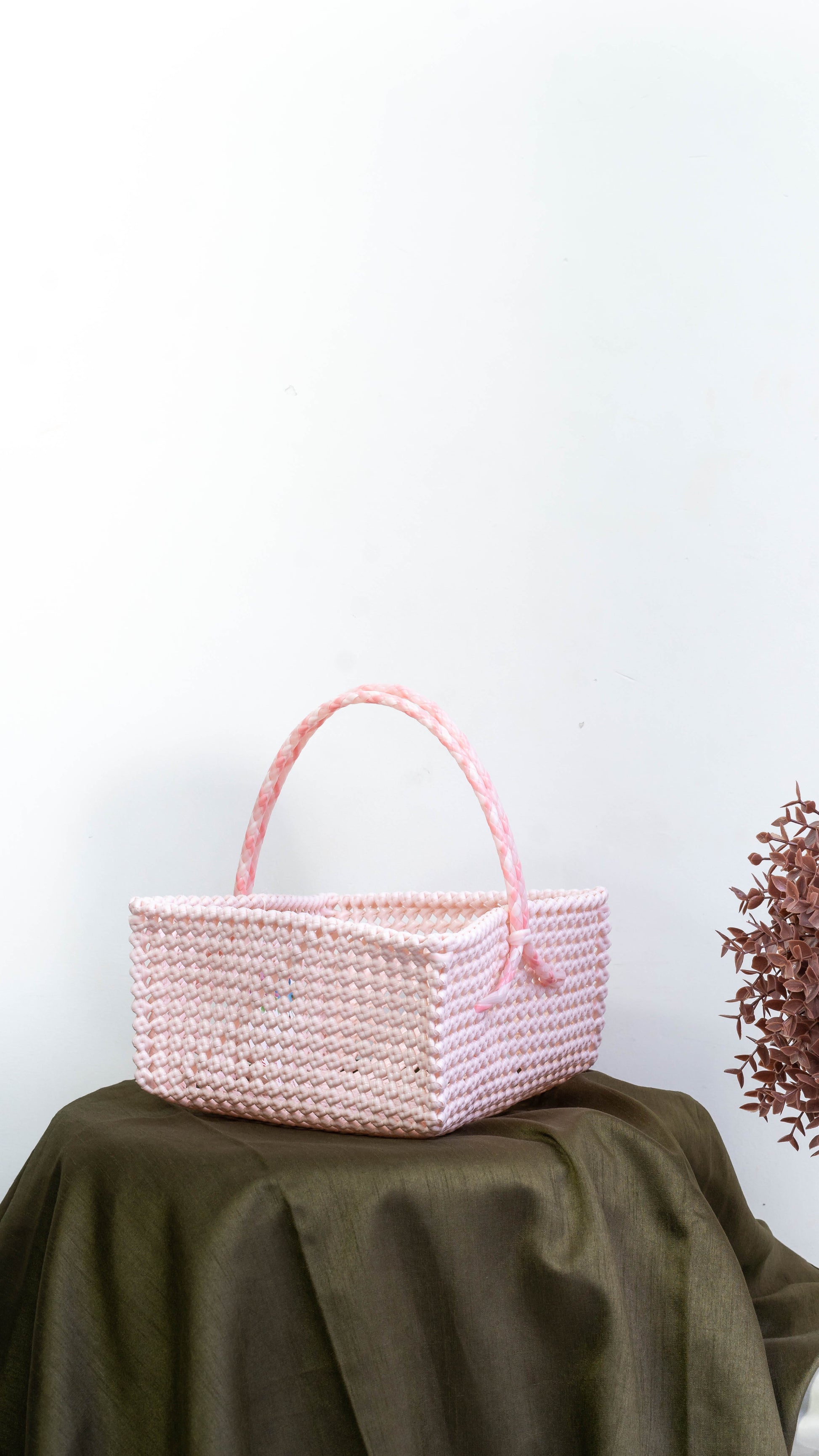 Elevate your sacred space with a simple but beautiful Pink Temple Basket, a thoughtful combination of cultural traditions, skilled partisanship, and design. Hand-woven from recycled plastic wires, in light and sturdy knots, these weaves have an airy quality that gives it a lightweight structure without compromising the resilience.