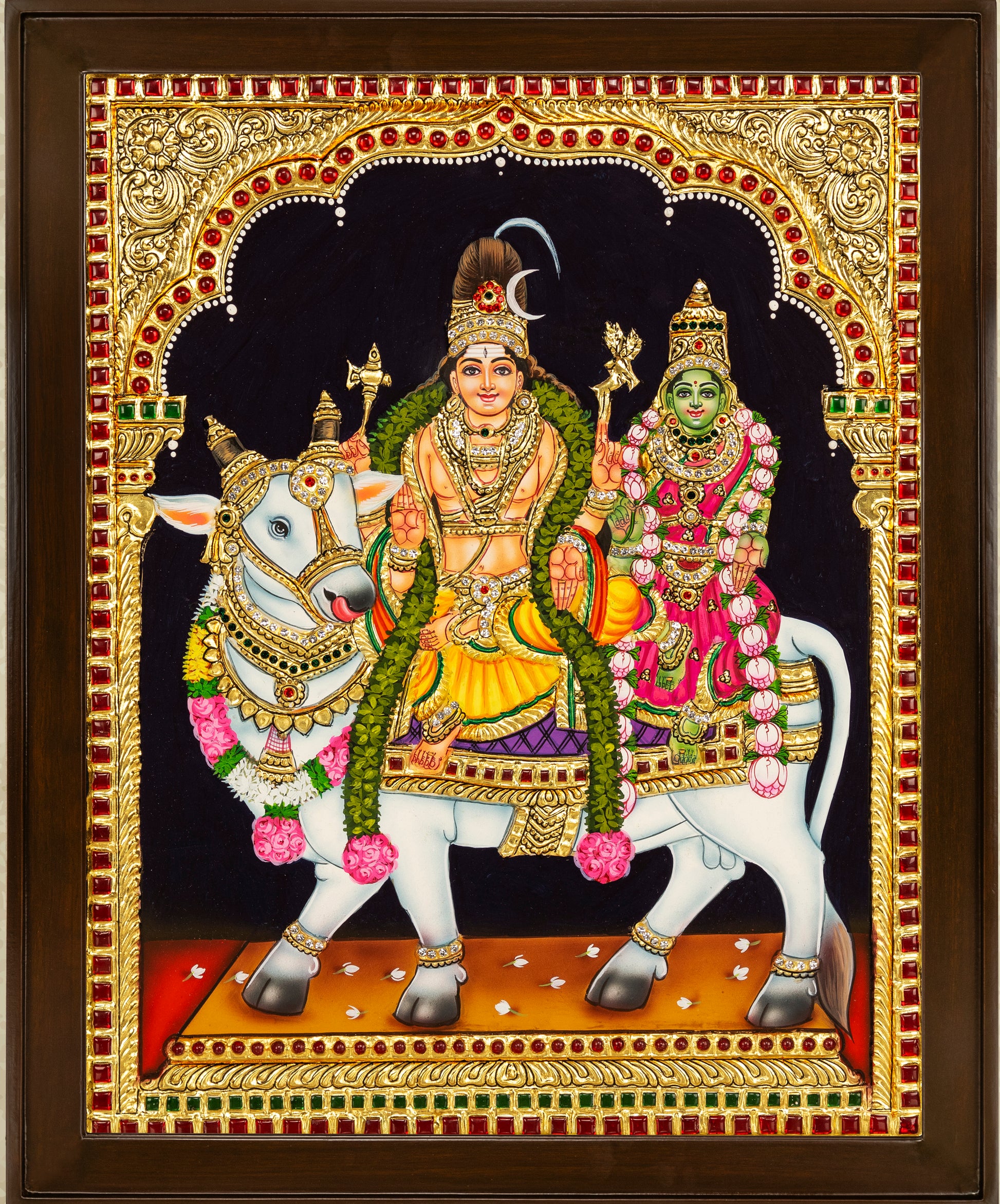 Use it in your prayer room, living space, or as a thoughtful gift - it will be a source of calm living and positive energy in your home. The Pradosha Sivan & Parvathi Tanjore Painting arrives carefully packed to ensure a safe delivery.