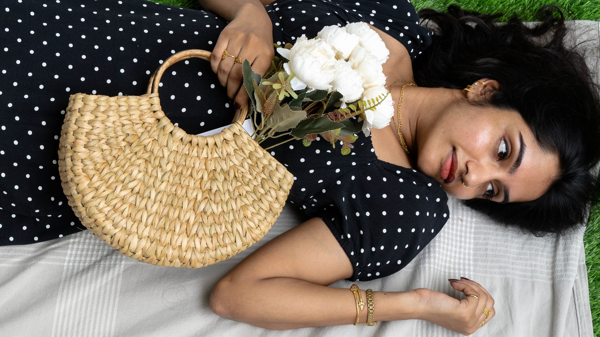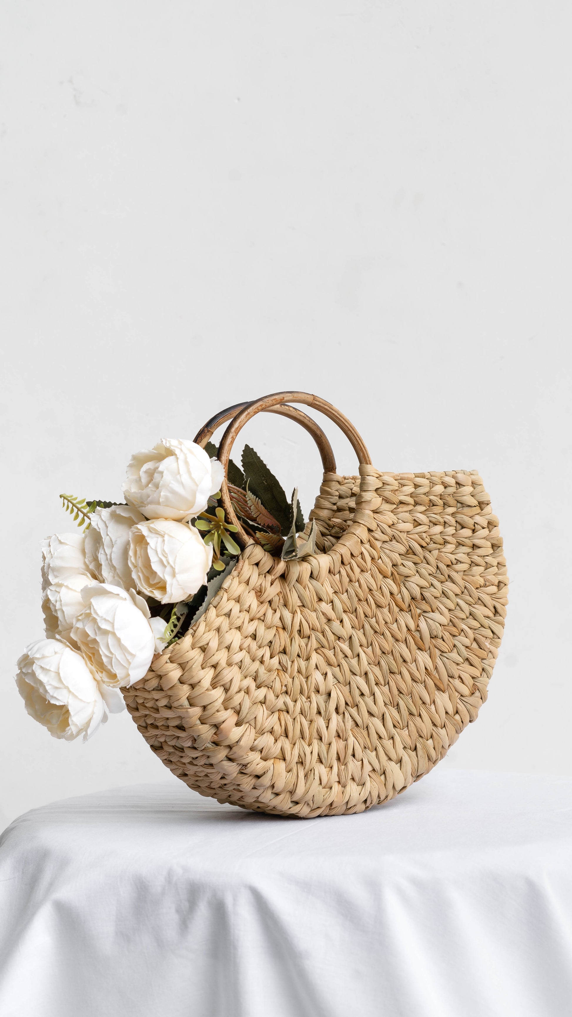 An attractive small U bag made with 100% eco-friendly, biodegradable Kauna grass that is beautifully hand-woven. It is designed to have a compact size with enough space, carefully designed to hold all your daily personal items, including wallet, make-up bag, keys, phone, and more.