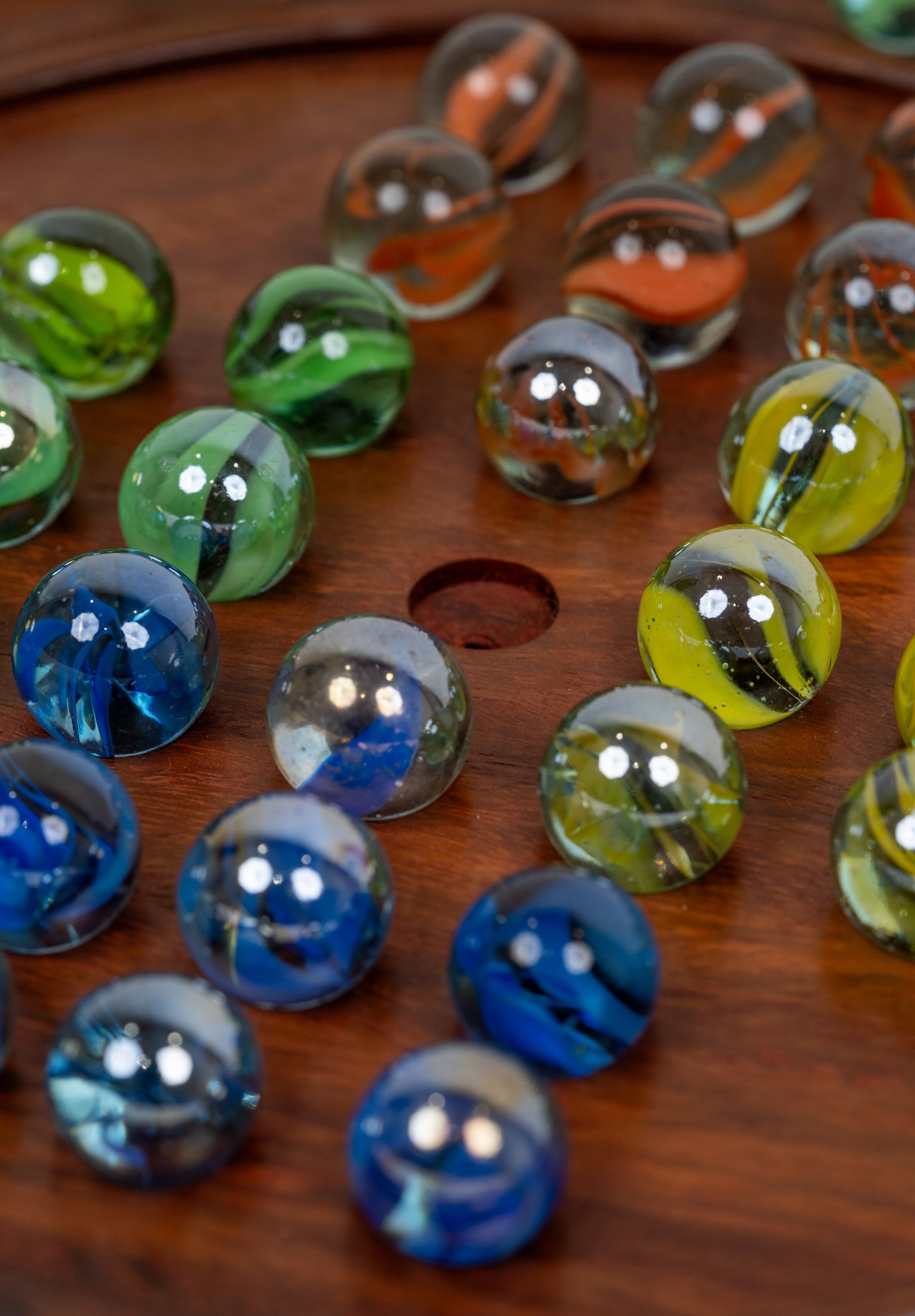 2: Like checkers, the goal is to leap one marble over another into an empty spot to eliminate as many marbles as you can. A successful relocation, jumping a marble in a vertical or horizontal direction (not diagonally). After the marble that was hopped over is taken from the board.