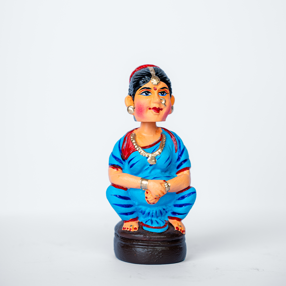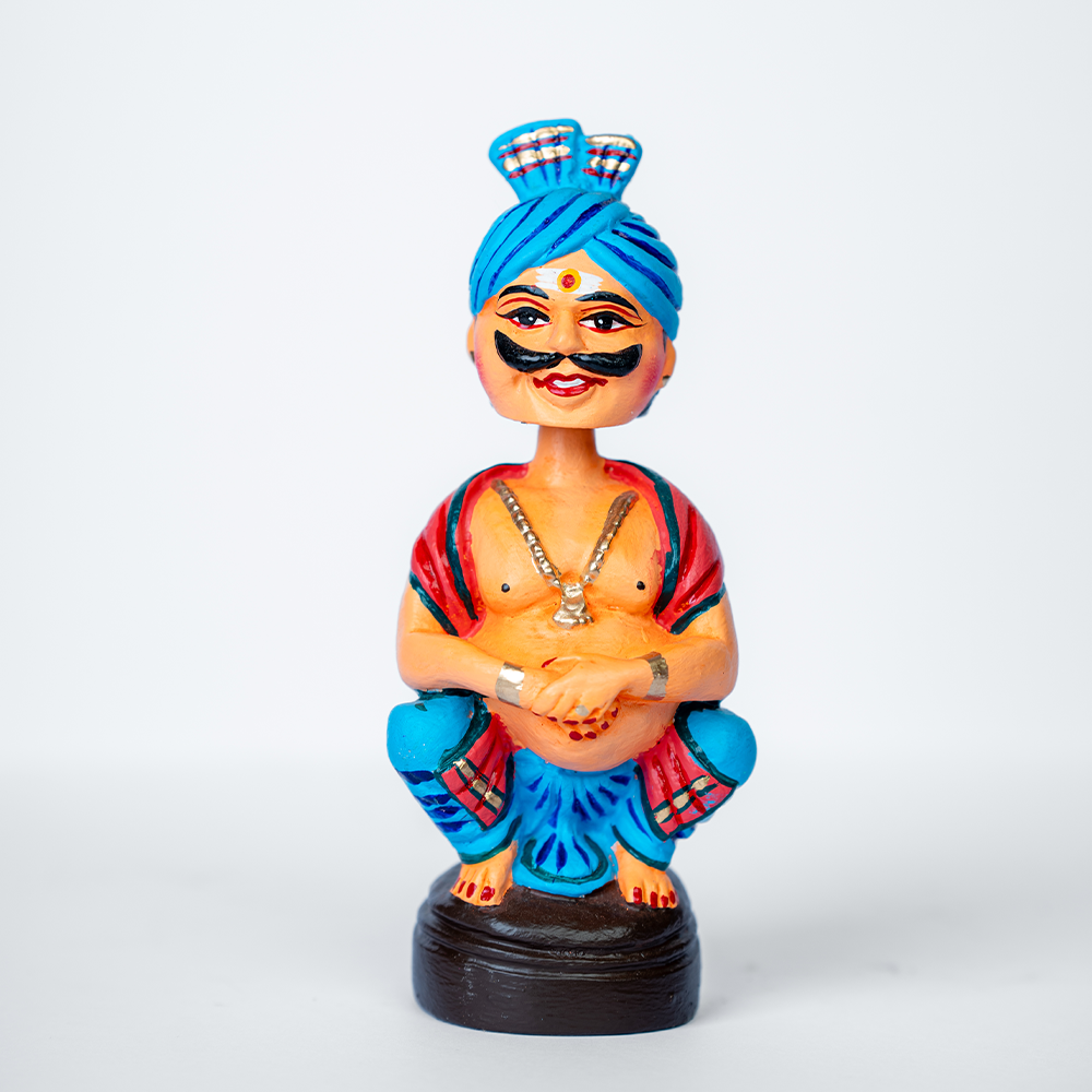Relish your favourite pair of relatives (Mama & Mami) and honour them with these beautifully crafted pairs of highly durable fibre dancing dolls. These traditional South Indian dolls are known to bring happiness, fortune, and prosperity to whichever home they are brought into. Traditionally, in the "Golu" display, the Mama-Mami dolls are centrally placed and are often seen as symbolic hosts or welcoming guests to the Golu. It reflects the Tamil tradition of respect for elders and the depiction of an ideal family arrangement.