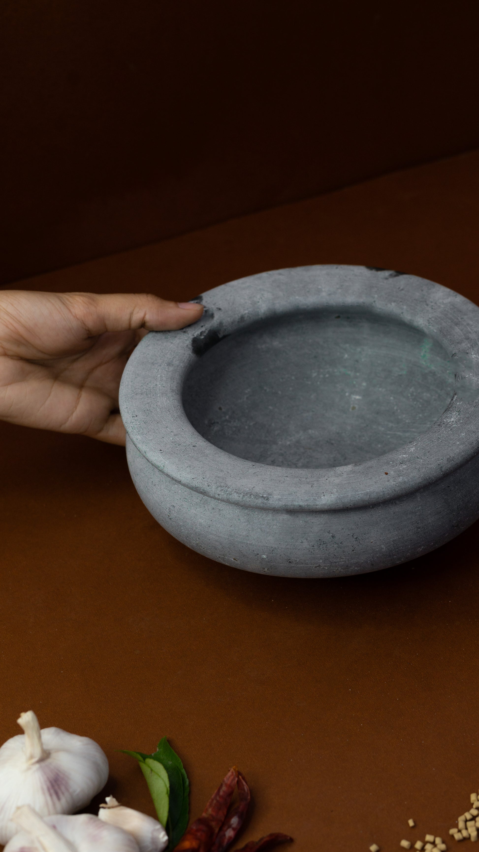 Our Uruli Kalchatty, in addition to being a wonderful kitchen companion, plays a significant role in South Indian traditions and aesthetics. During religious ceremonies and rituals, these uruli are used to hold sacred water or prayer offerings in puja rooms. They also make for great home decor - filled with water, fresh flowers, and floating candles. You may also use these as kitchen utilities, like serving chutney or curd.