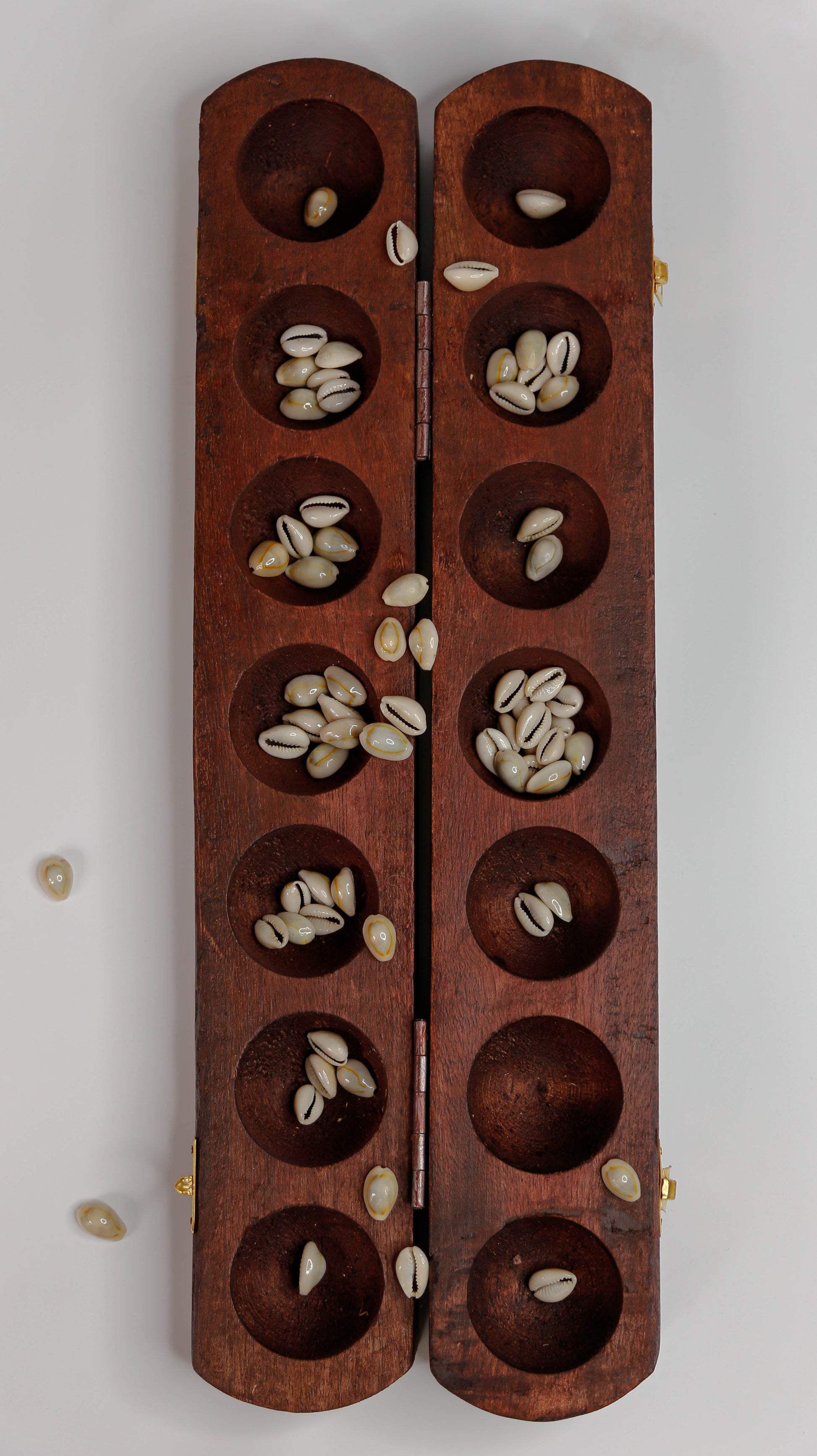 Small tokens of seeds, cowrie shells, or pebbles act as the pieces, and the game is all skill and foresight. The players aim to collect the highest number of tokens through careful calculation and foresight.