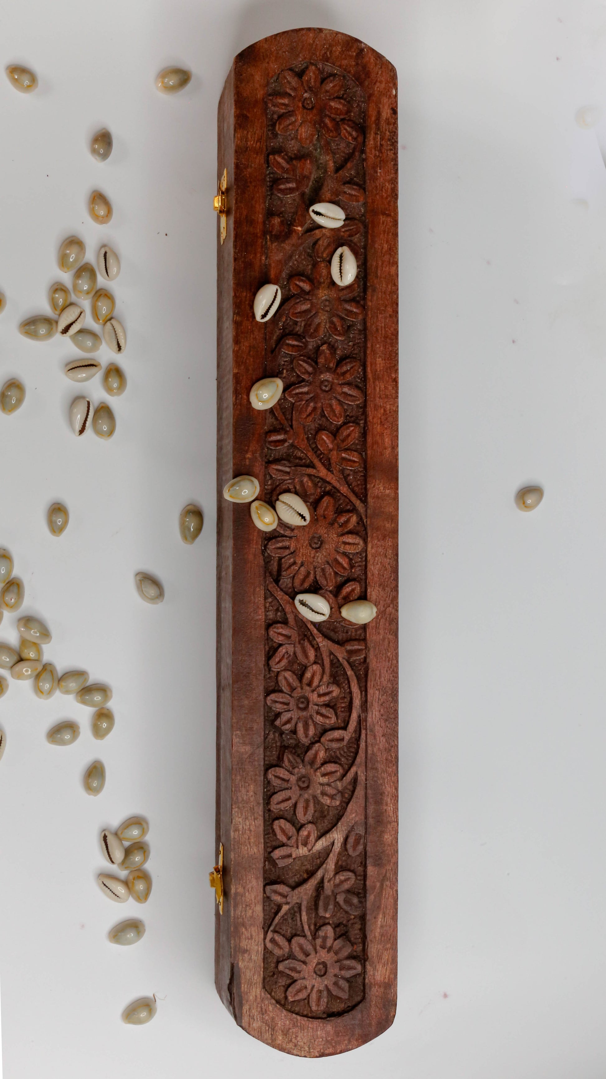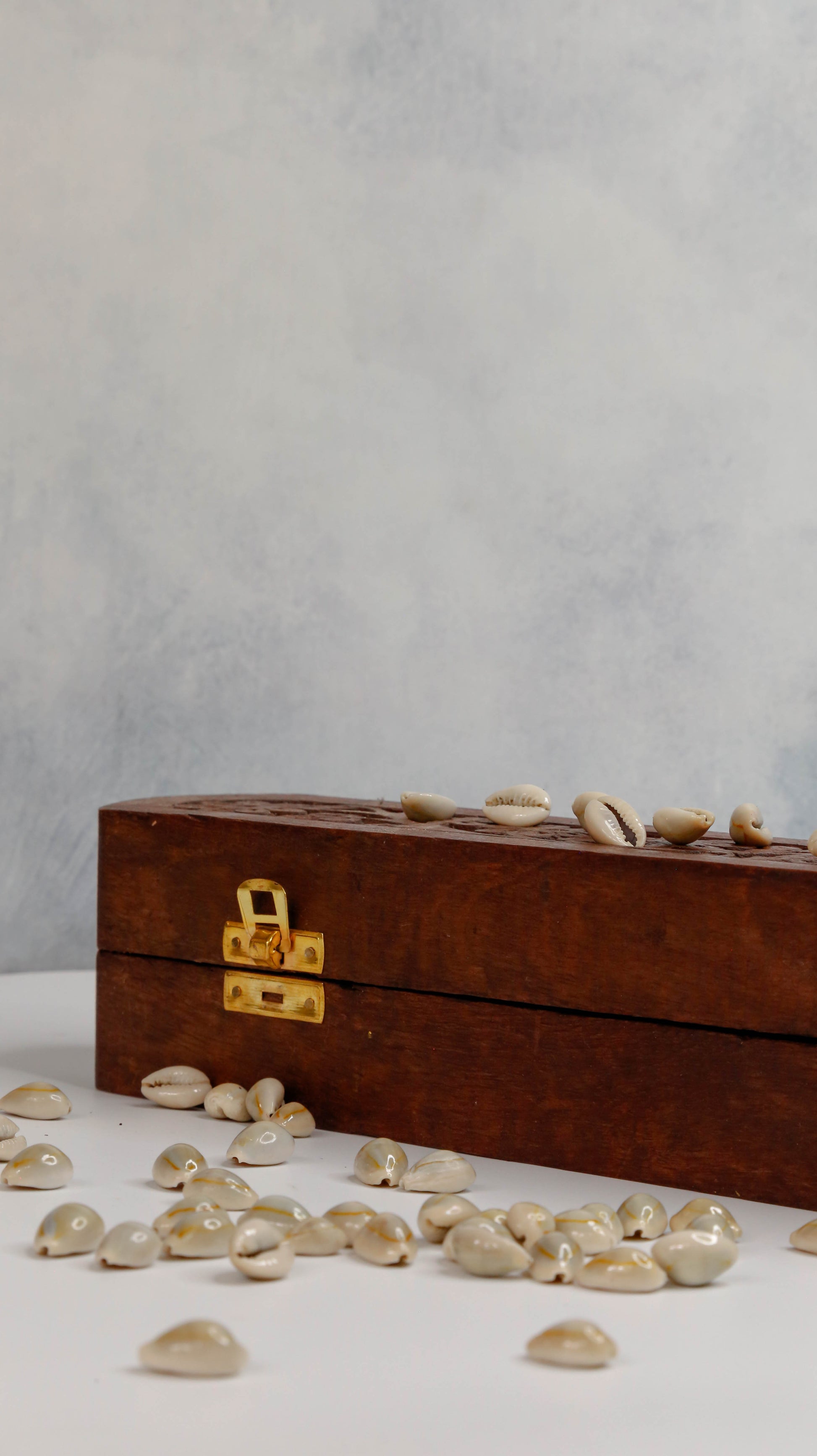 Complete Set: Includes the beautifully carved 14-pit board for two players and cowrie shells (Soli)