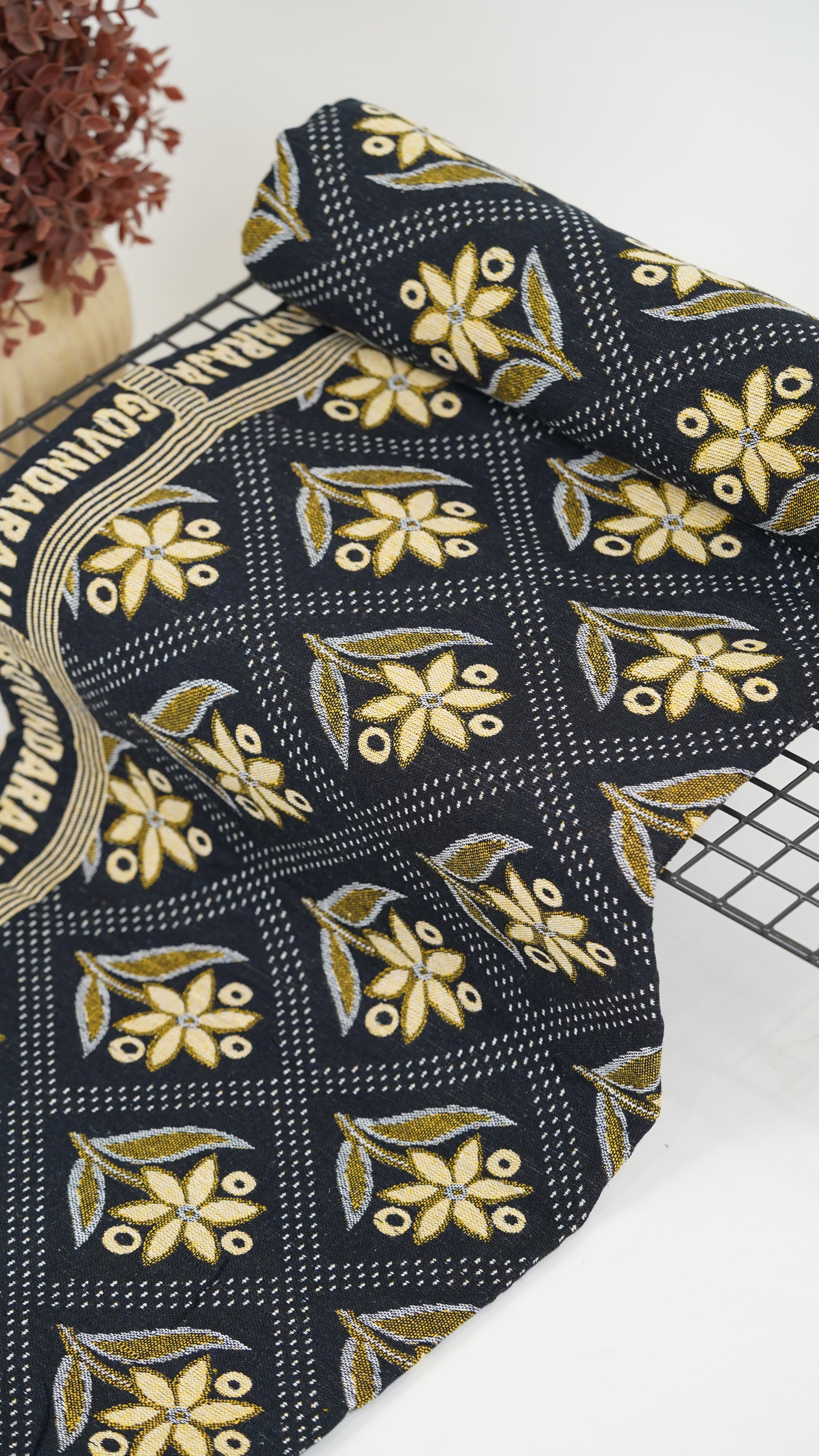 Transform your bedroom into a space of timeless beauty with the G. Raja Chennimalai Bed Sheet Midnight Floral. This bedsheet captures the magical essence of a garden at night. It has a rich, Midnight Black background that acts as the ideal backdrop for the bright, Golden-Yellow floral designs.