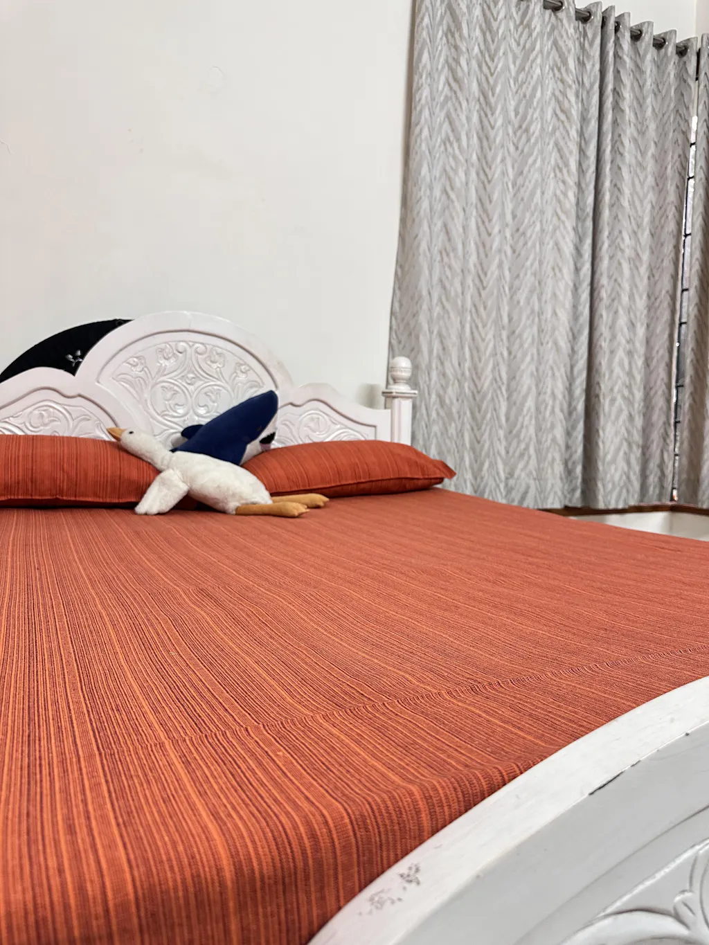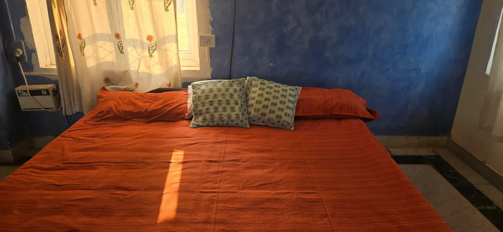 Experience the perfect blend of heritage and comfort with our Rustic Orange Double Cot Bedspread. This piece comes from the famous weaving hub of Chennimalai, Tamil Nadu. It features a rich, warm palette that brings vibrant yet grounded energy to your space. Measuring generously, this versatile piece works as both a soft, breathable bedspread. It adds neat and aesthetic appeal to your bedroom. Each set includes two matching pillow covers for a coordinated look that immediately improves your bedroom.