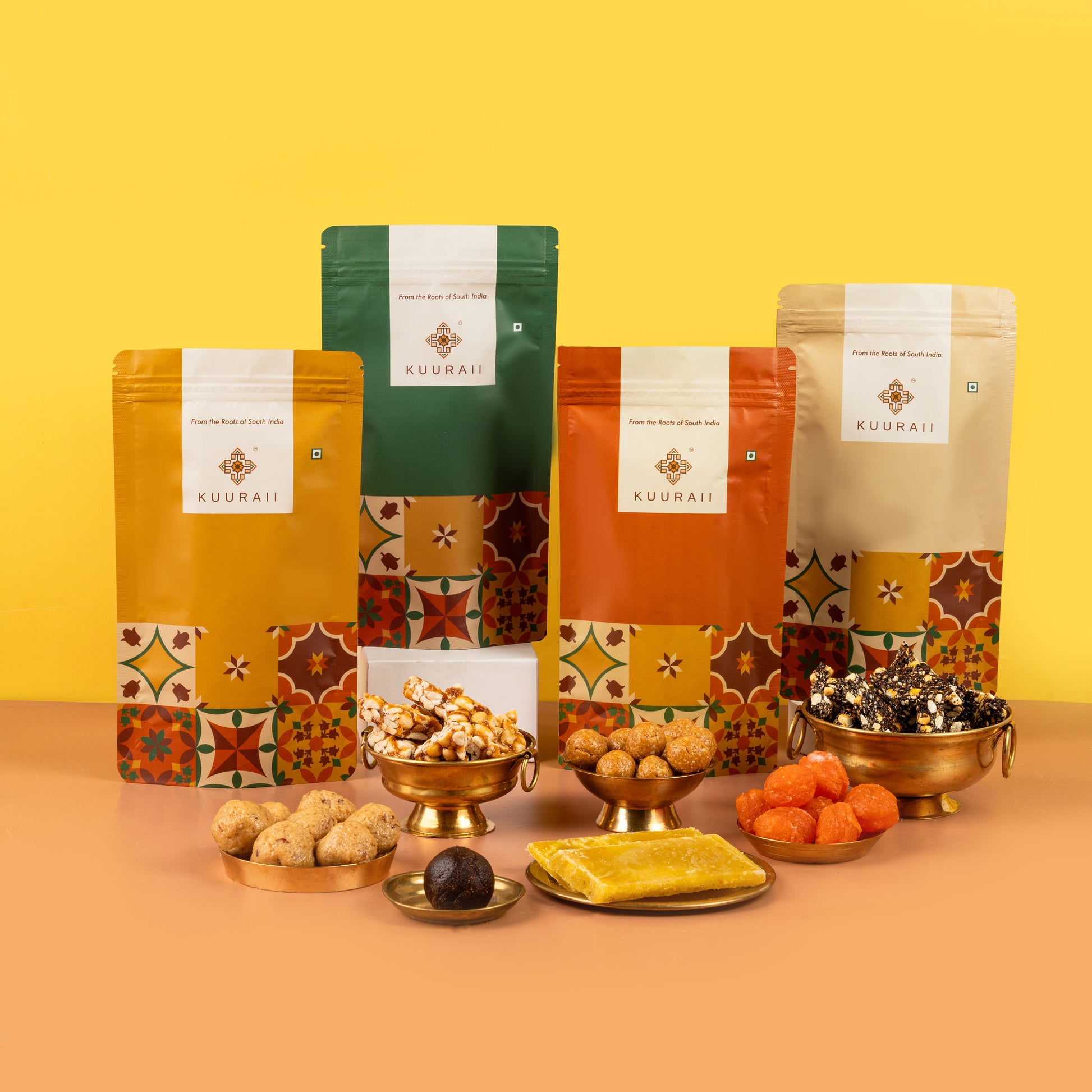 Introducing the Petti Kadai Combo, a delightful assortment that evokes nostalgia of summer holidays spent at Grandma’s house, surrounded by friends. Inspired by the vibrant atmosphere of local petti Kadai, this combo features a tempting selection of sweet treats, perfect for sharing. Each item is lovingly crafted to capture the essence of cherished moments by bringing together the rich flavors that spark joy and connection. Relive the unforgettable memories of your childhood and let each bite transport you back to those heartwarming days!