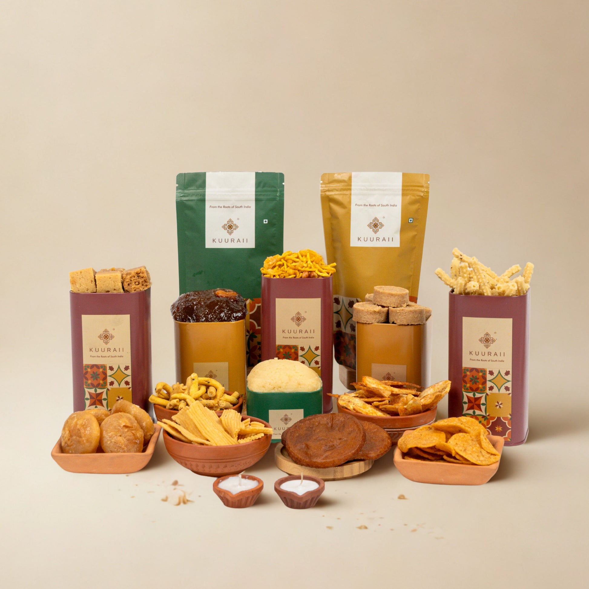Diwali is all about good vibes, delicious treats, and sparkling lights everywhere! Our Premium Crate is packed with 13 delightful sweets and snacks that are sure to lift your festive spirit in the most elegant way.