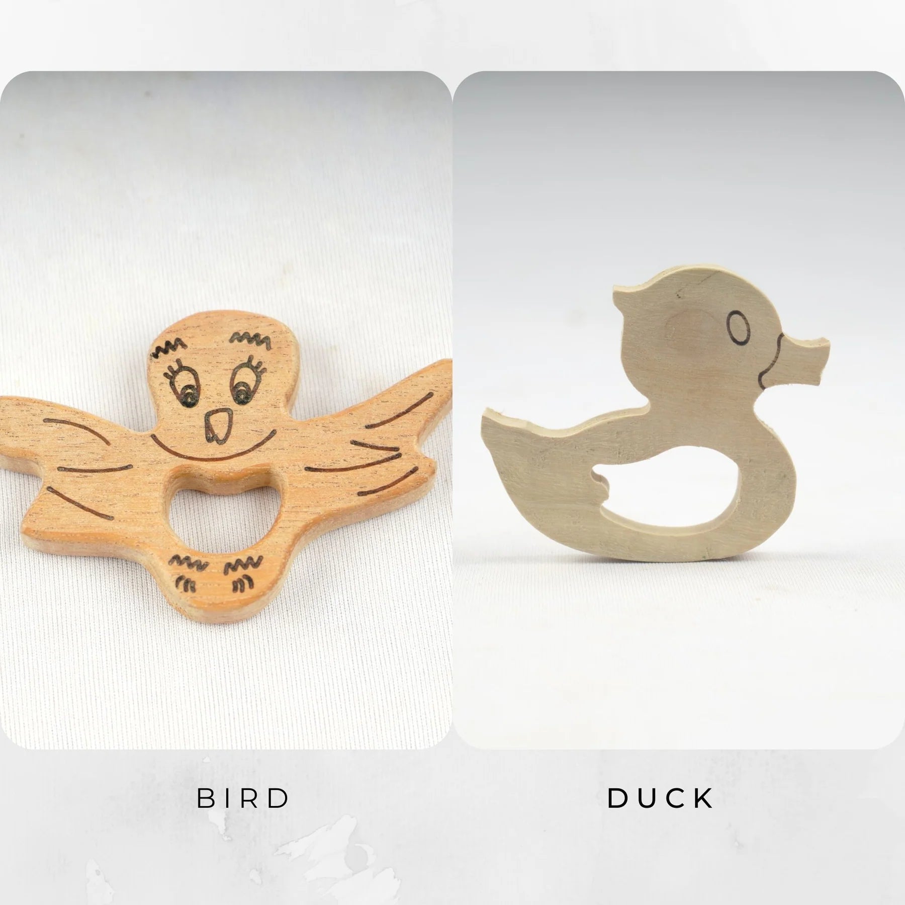 Use our nice wooden bird and duck teethers to ease the teething discomforts of your little one and awaken their sense perceptions. Teething, typically between 4 to 8 months for an infant, is usually accompanied by sore gums and extra irritable behavior. They then move to gnawing and chomping down on anything they can manage because, during this time, anything is fair game for a teething baby's mouth.
