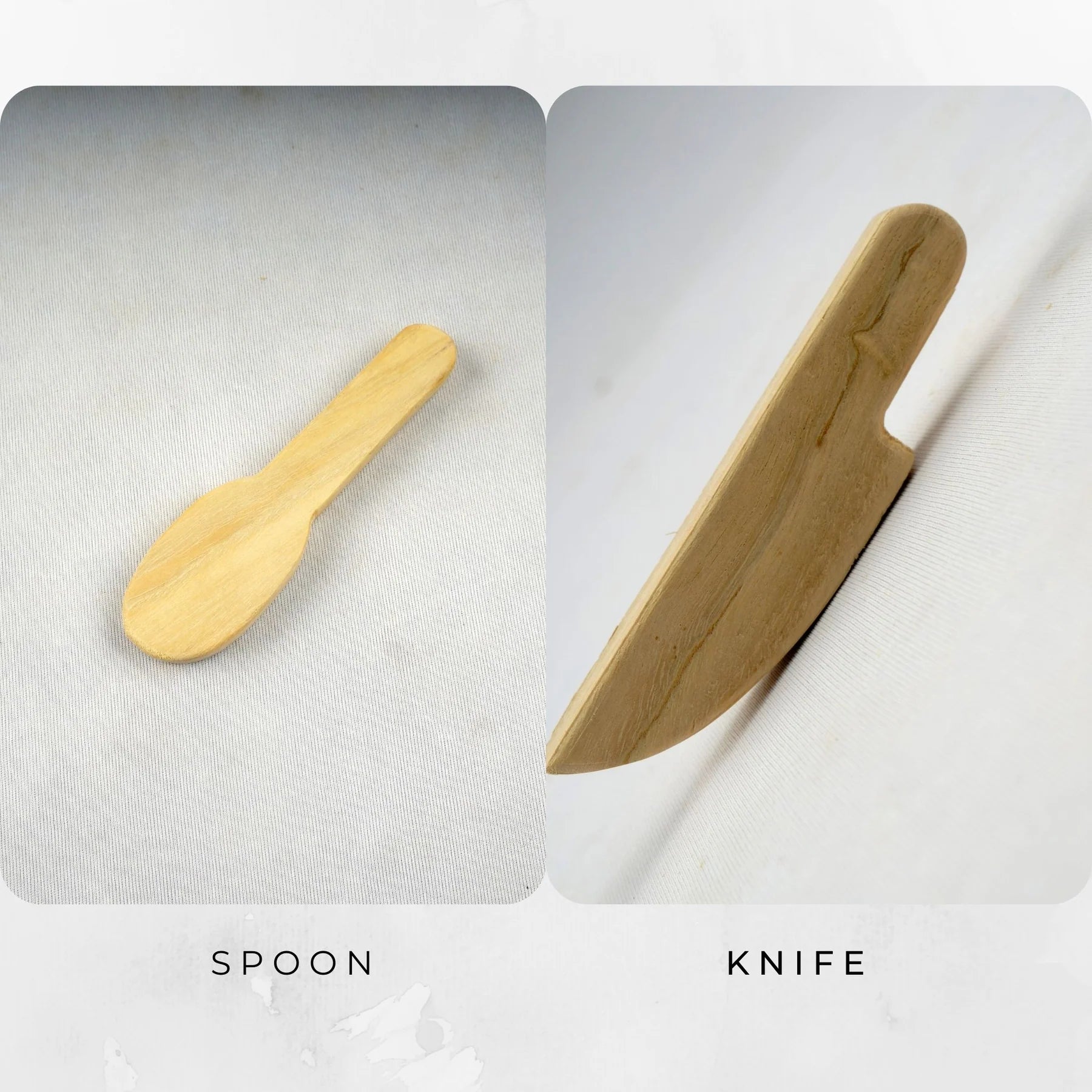 Use our Spoon and Knife Teethers to ease the teething discomforts of your little one and awaken their sense perceptions. Teething, typically between 4 to 8 months for an infant, is usually accompanied by sore gums and extra irritable behavior. They then move to gnawing and chomping down on anything they can manage because, during this time, anything is fair game for a teething baby's mouth.