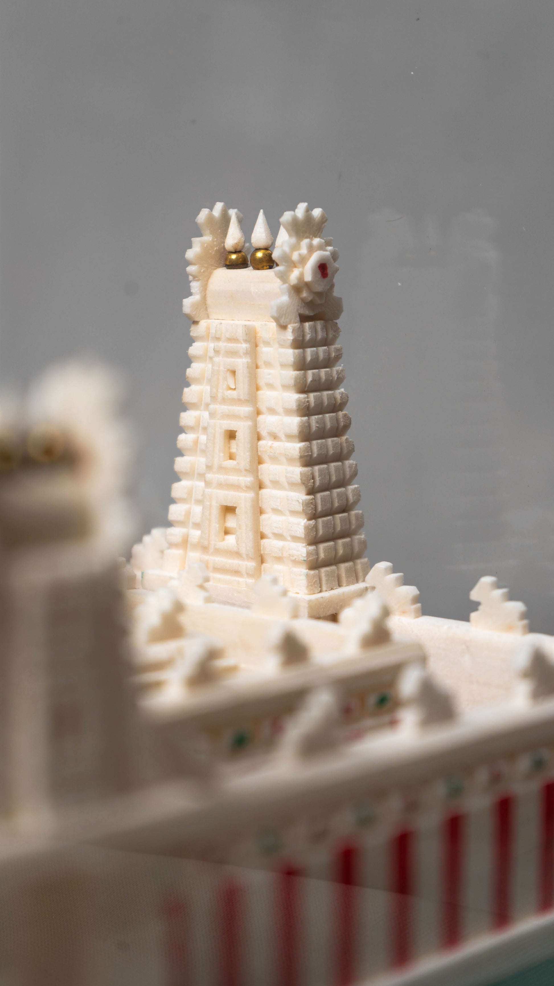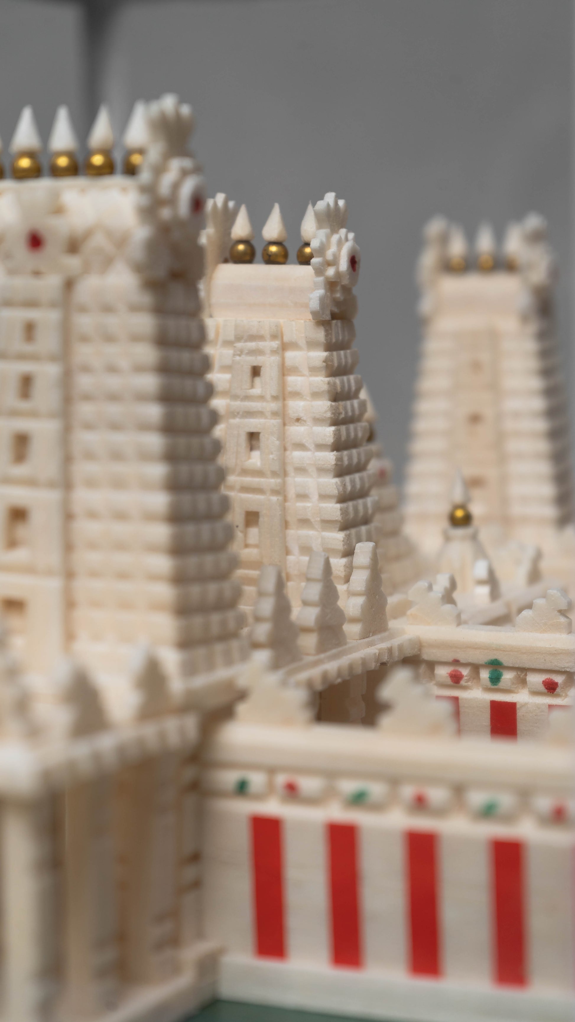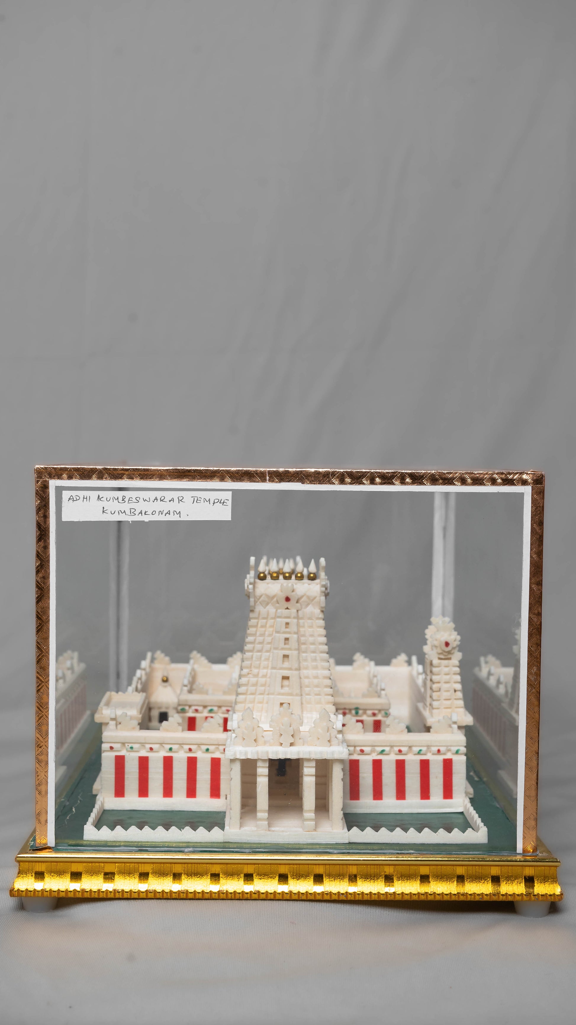 Bring home the magnificence of the Kumbakonam Temple with this handcrafted white pith sculpture, intricately detailed to reflect the beauty of South Indian temple architecture in an eco-friendly form. Handcrafted from sustainable, eco-friendly pith, Kumbakonam Temple pith work invites tranquillity and devotion into the space of the viewer.