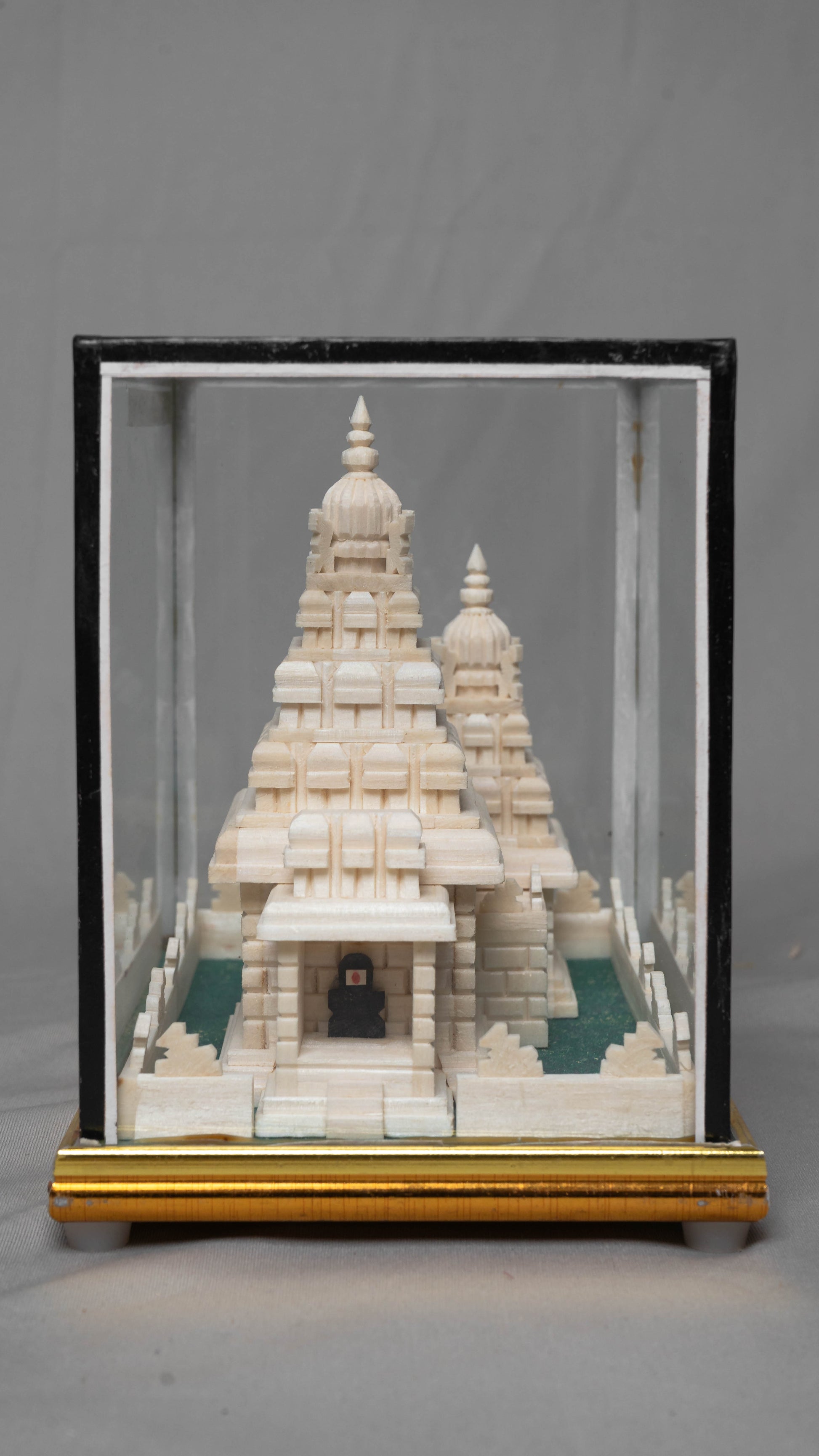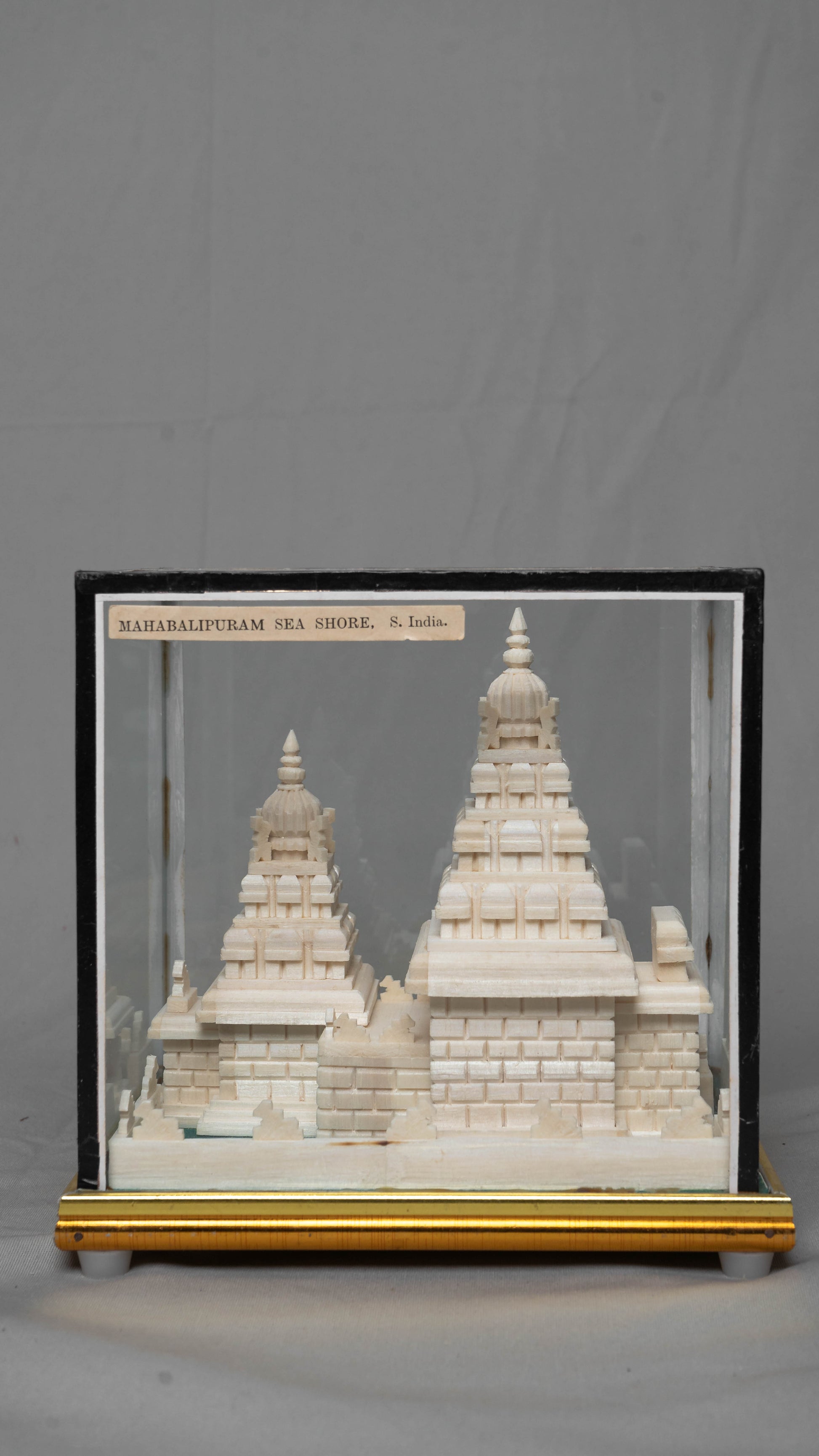 The Shore Temple, which is built in Dravidian style, is known for its pyramid-shaped towers and sculpture based art form. This pith model is made using eco-friendly material, and framed in glass to preserve its aesthetic beauty.