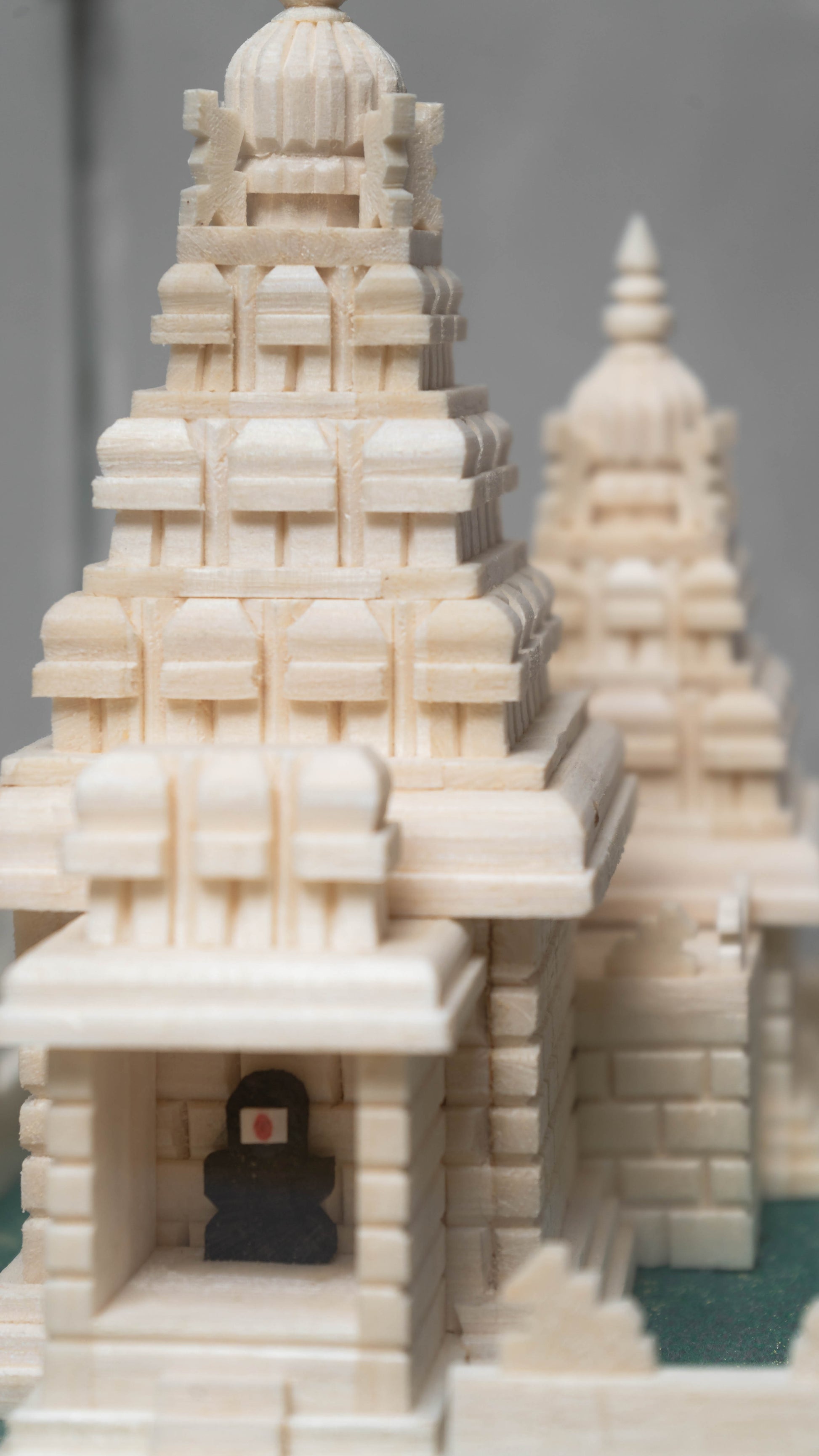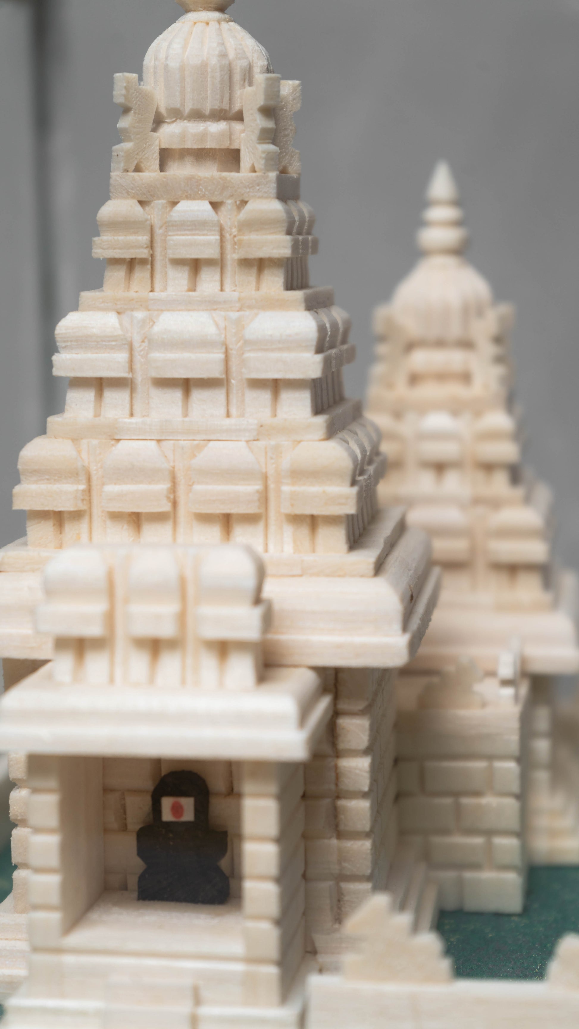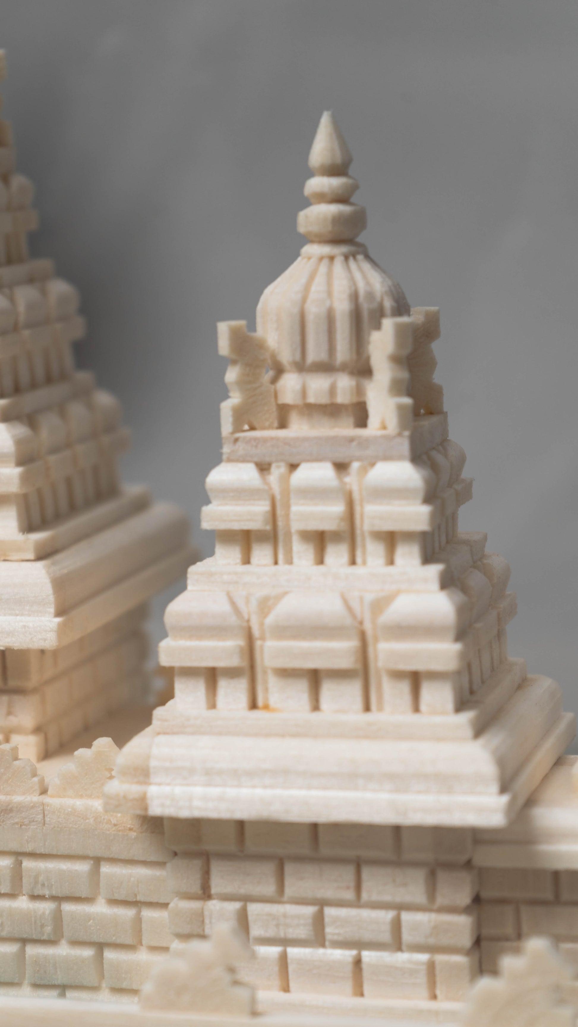 This pith model temple sculpture of the Shore Pithwork Temple is a lovely and simple homage to the delights of South Indian temple architecture, and the Pallava heritage. This pith model temple is a hand rendered replica of the Shore Temple in Mahabalipuram, Tamil Nadu, a UNESCO World Heritage site.
