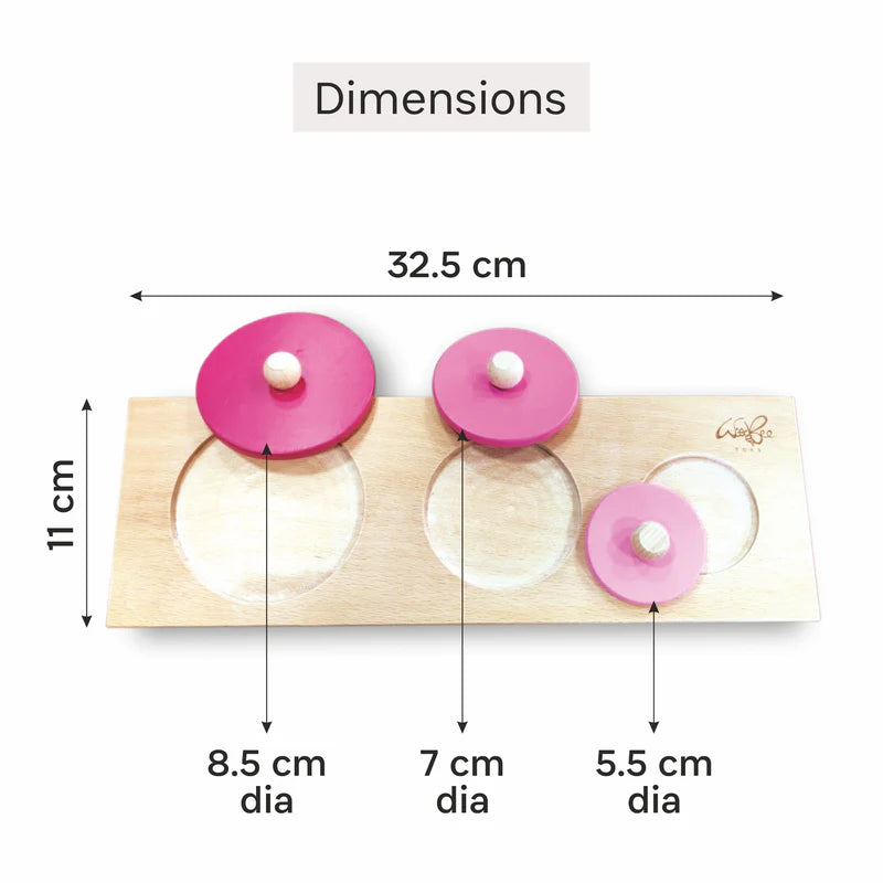 If you are like any other typical Indian parent, you would want your kid to be a math prodigy because you know math-skills and conventional smartness go hand-in-hand. For a toddler, Circle By Size Puzzle lays the foundation for mathematical problem solivng and analysis. To be good at something, there has to be a learning, and it is never too late to start learning math.