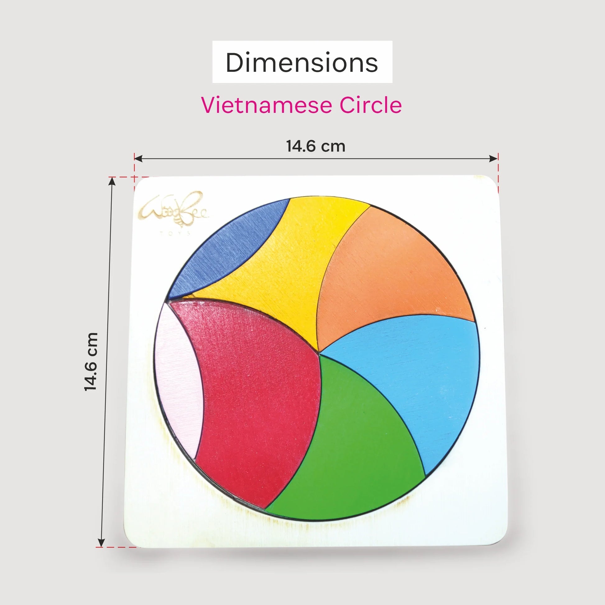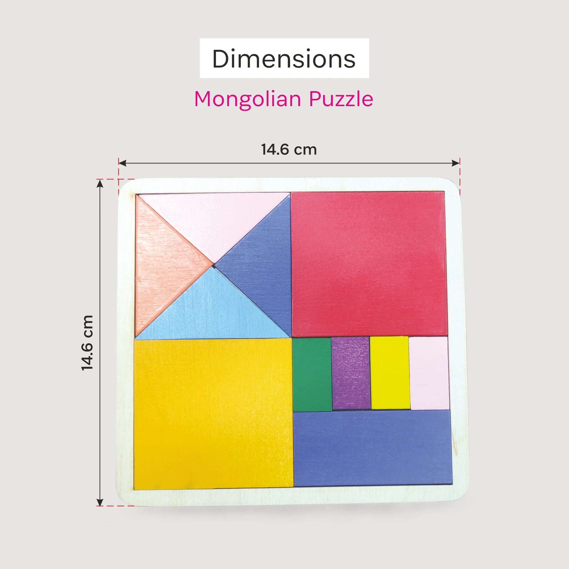 Introduce a whole new world of creative possibilities to your children with our Tangram Puzzle, the oldest-known among open-ended puzzles and still one of the most compelling. Tangram is a classic wooden puzzle consisting of coloured blocks of varied shapes and sizes, enabling their endless rearrangement to yield hundreds of unique patterns and pictures.