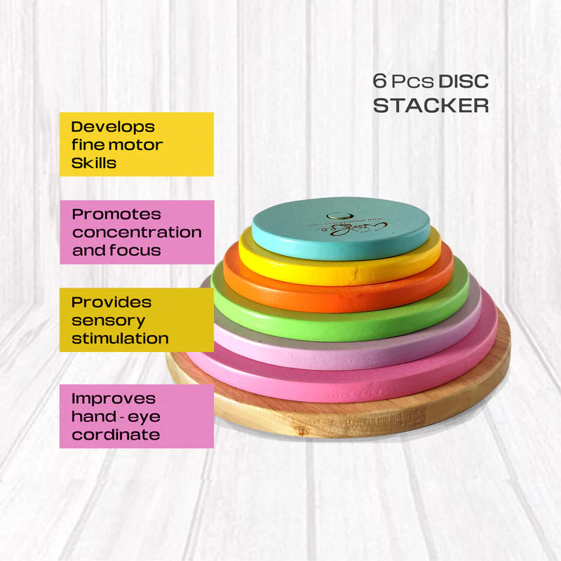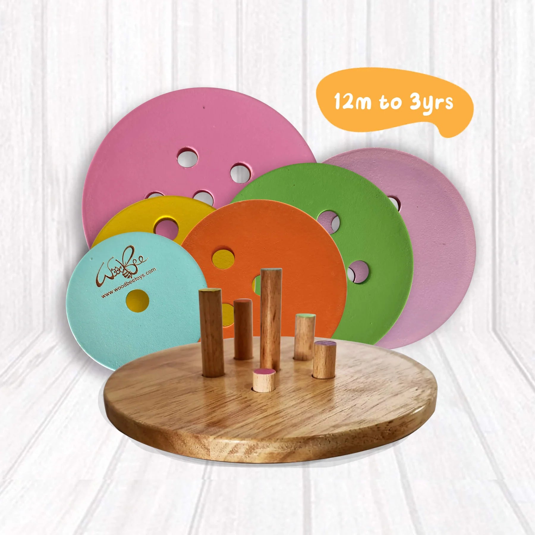 Introduce your little one to a world of fun and learning with our Wooden Disk Stacker Toy! Crafted from high-quality, natural wood, this timeless toy is designed to engage and entertain toddlers while promoting crucial developmental skills.