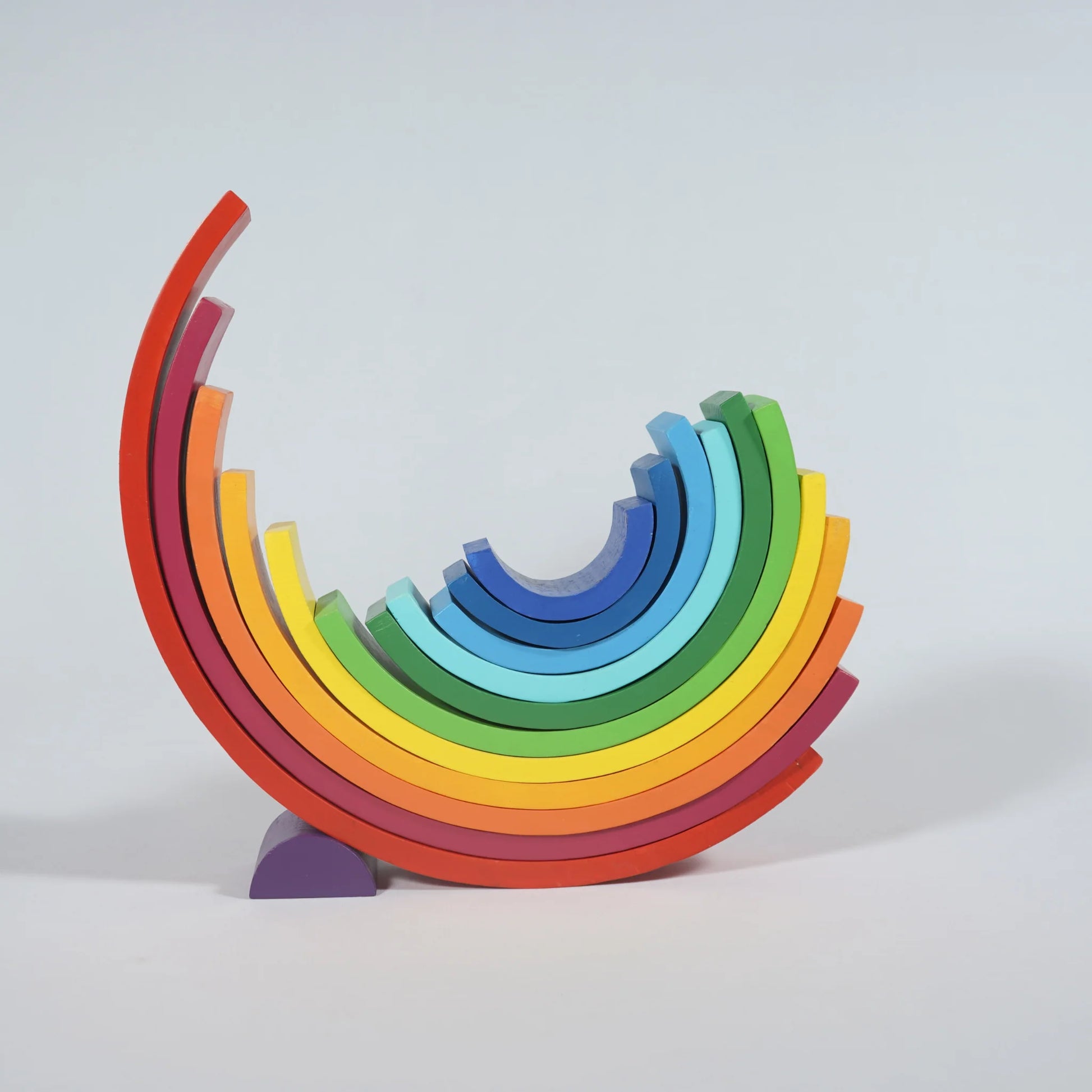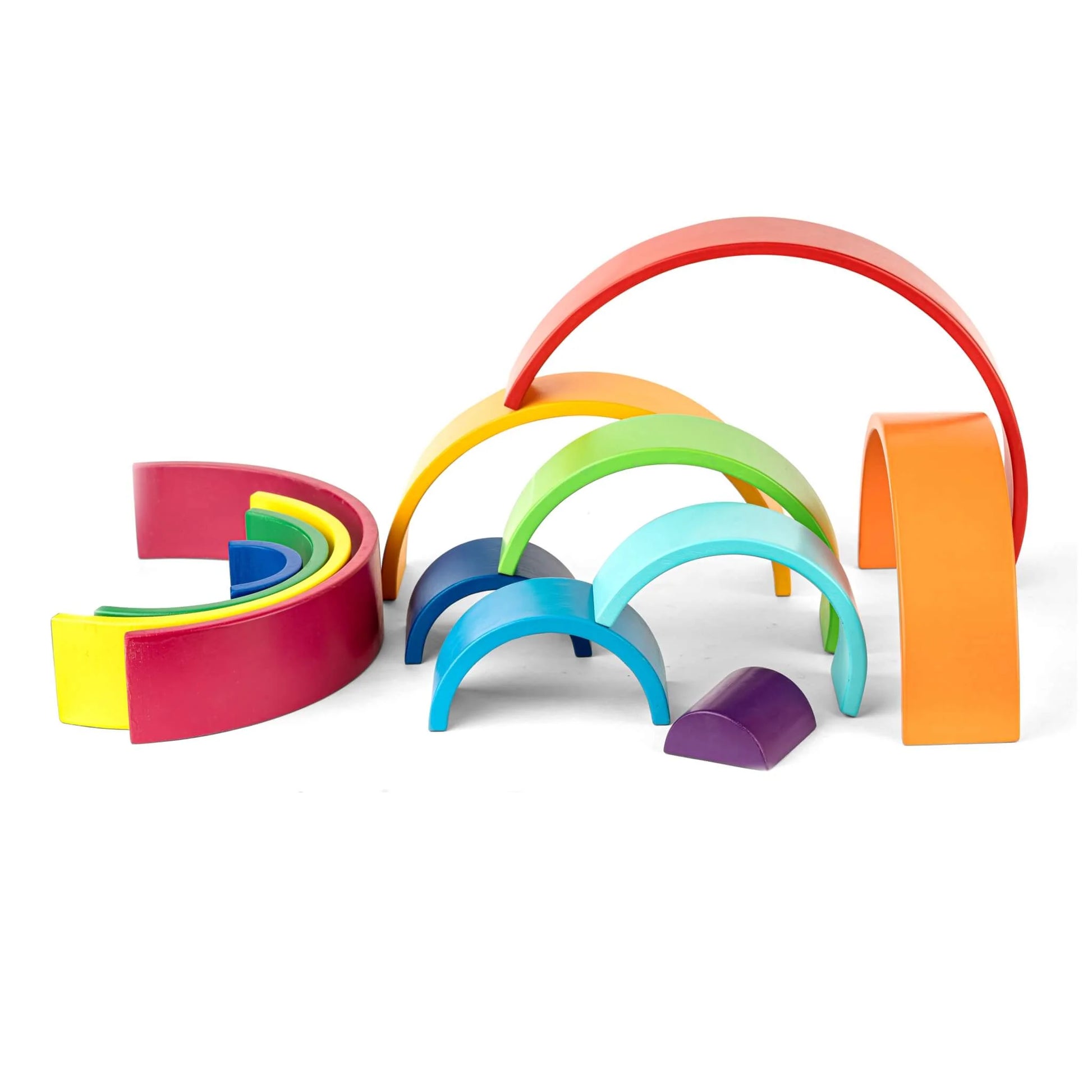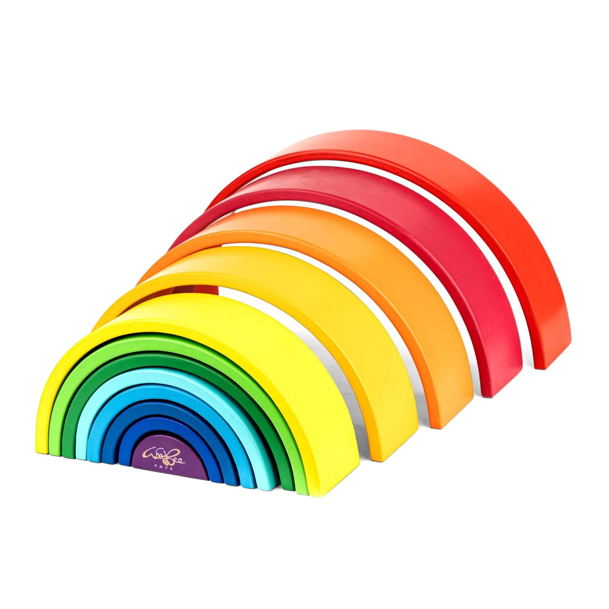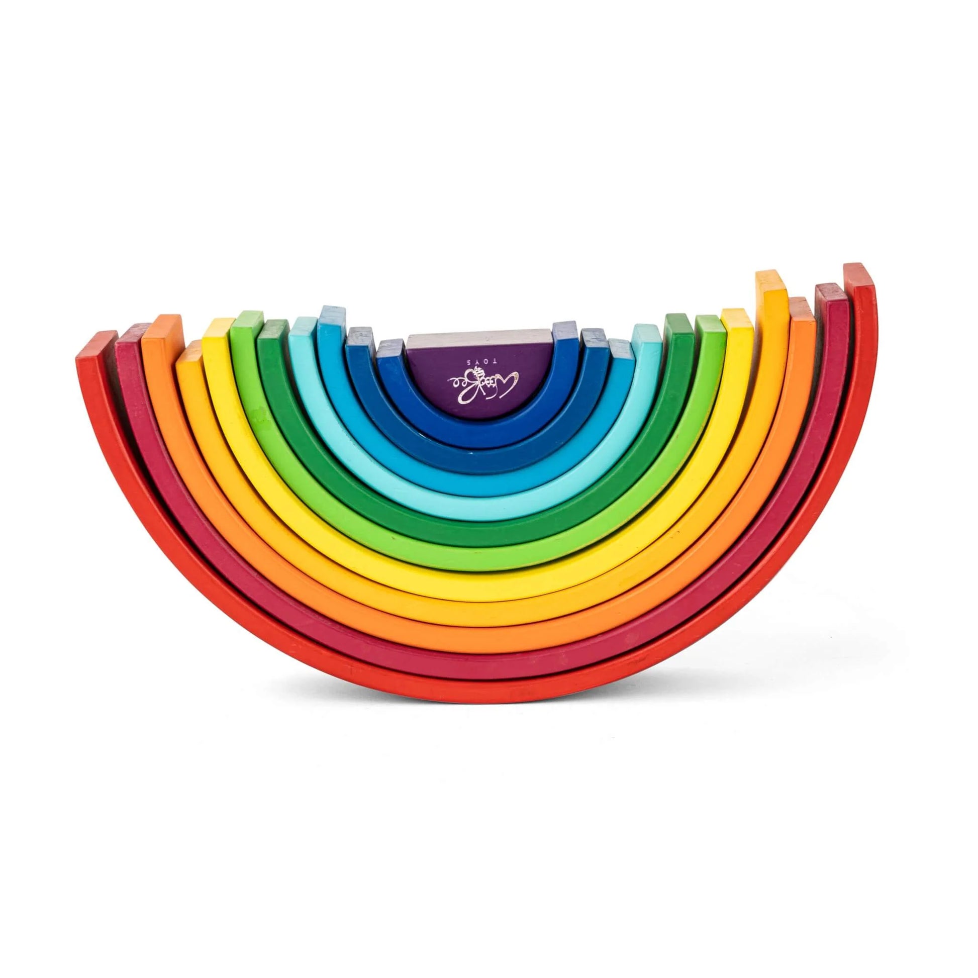 Our best-seller 12 pieces large wooden Rainbow stacker toy features wooden arches