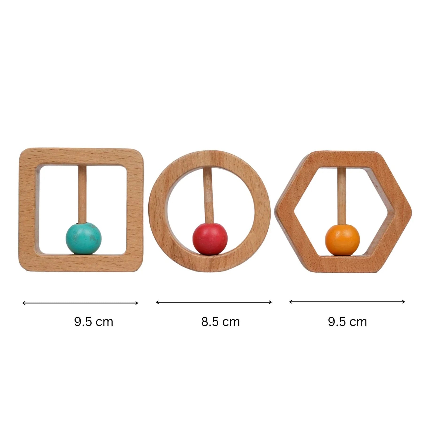 Rattles from woodbee toys for the age group of 4 months to 18 months.