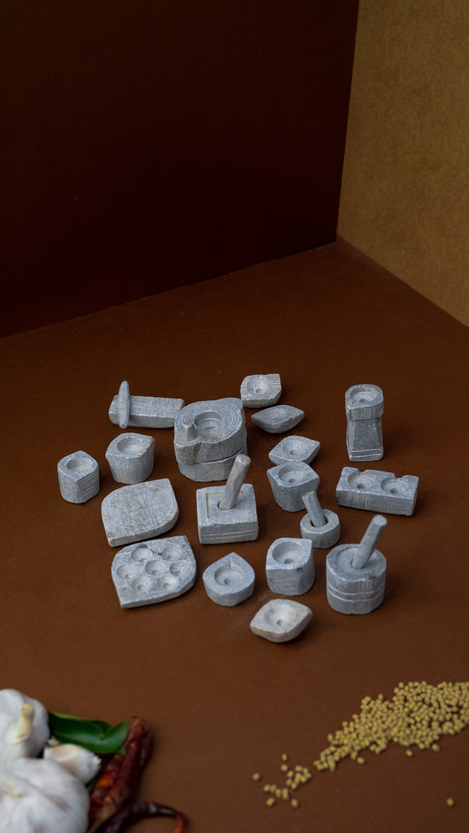 Step into the world of nostalgia with our 24-piece Miniature Soapstone Kitchen Set - a gentle reminder of the love and heritage of every Indian home. Each well-crafted piece is a time capsule in itself, transporting us back to those days when life was full of laughter, free from worries, and playing with these toys brought our siblings and friends closer. These tiny utensils bring to life the tales and emotions that once unfolded in the old kitchens.