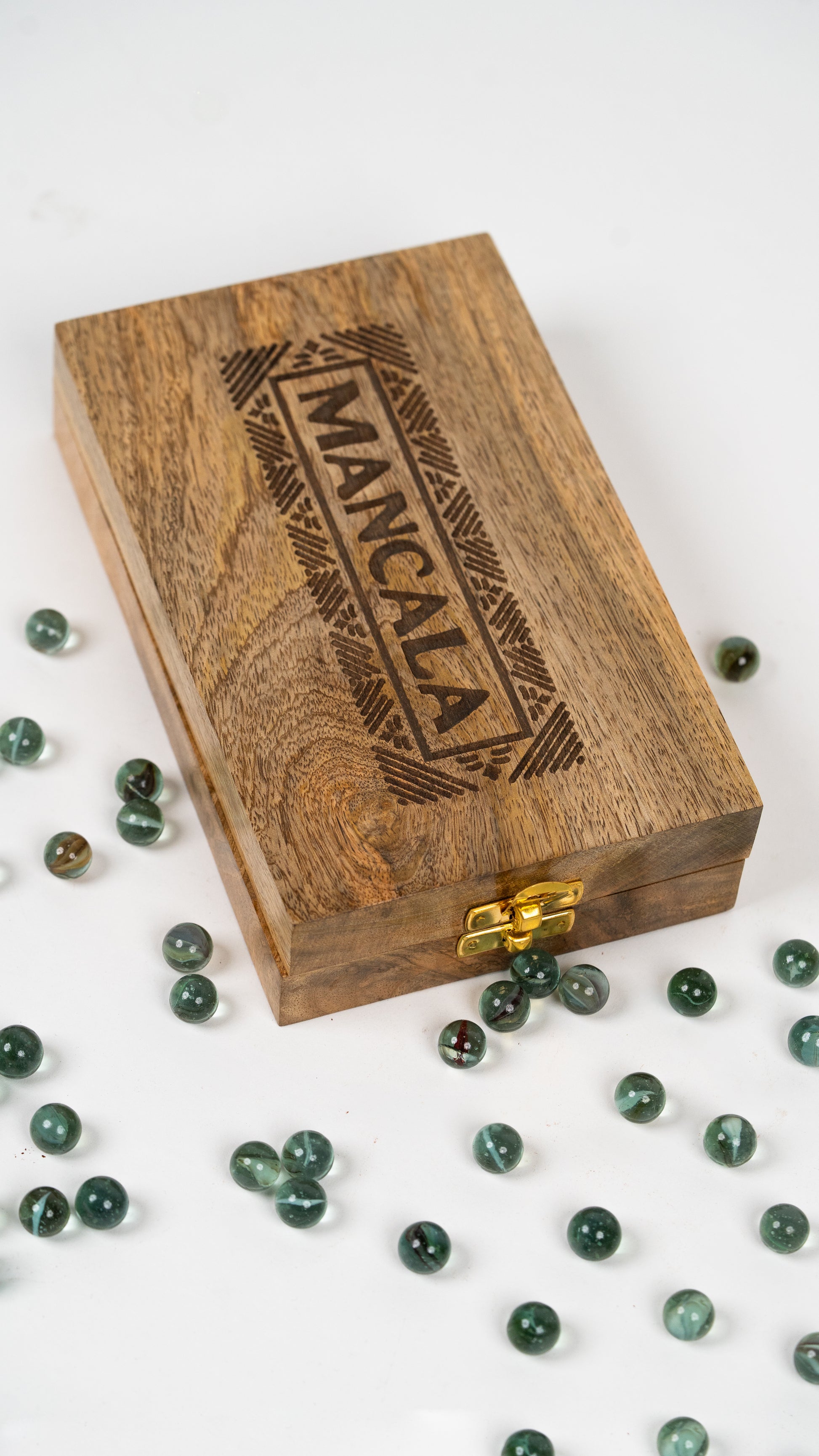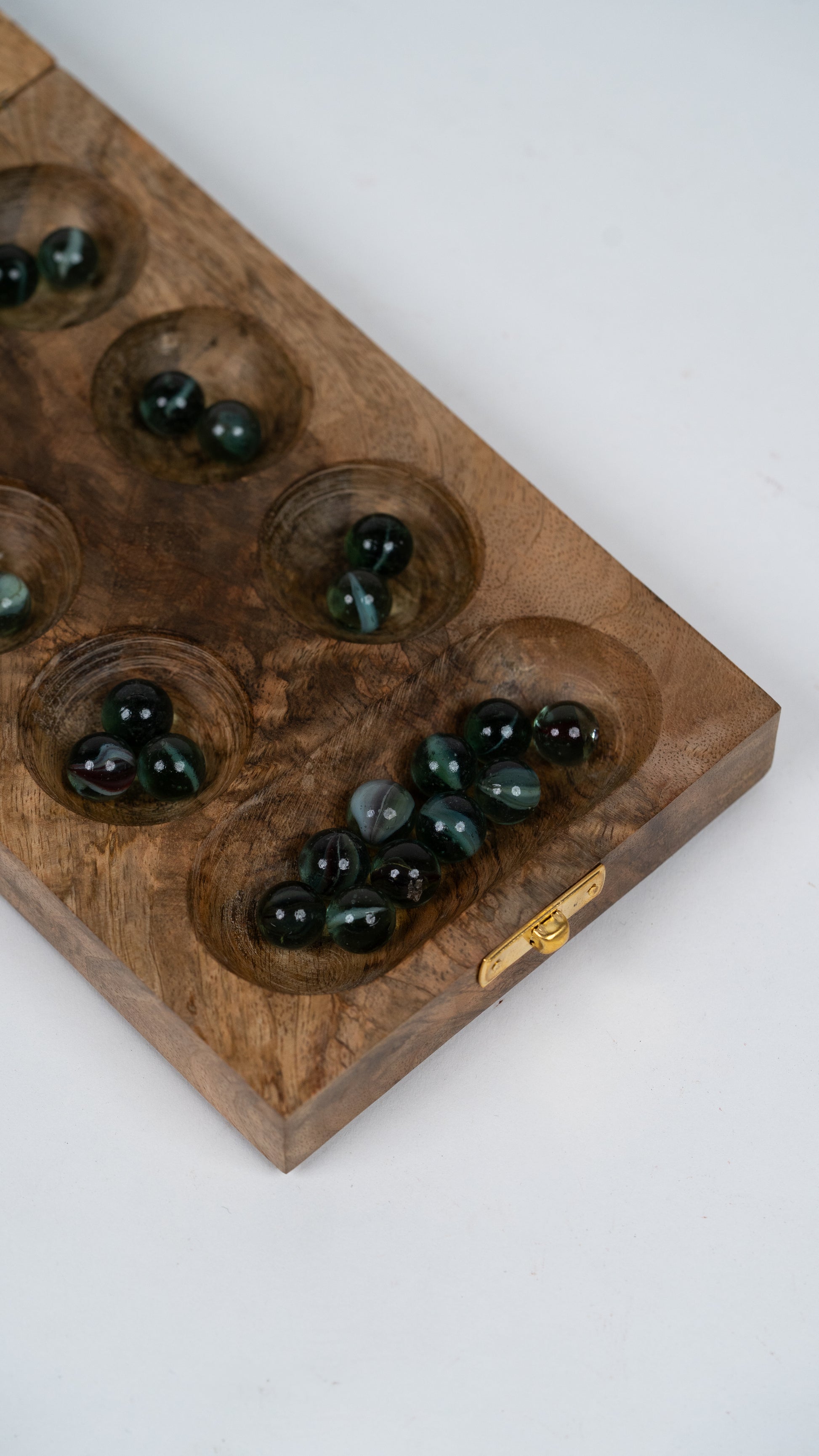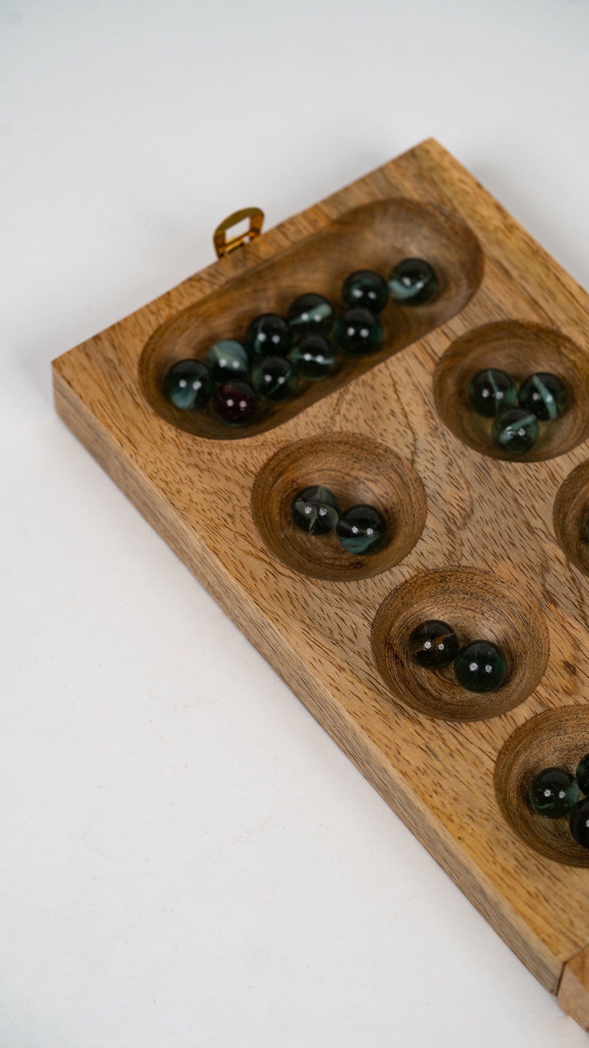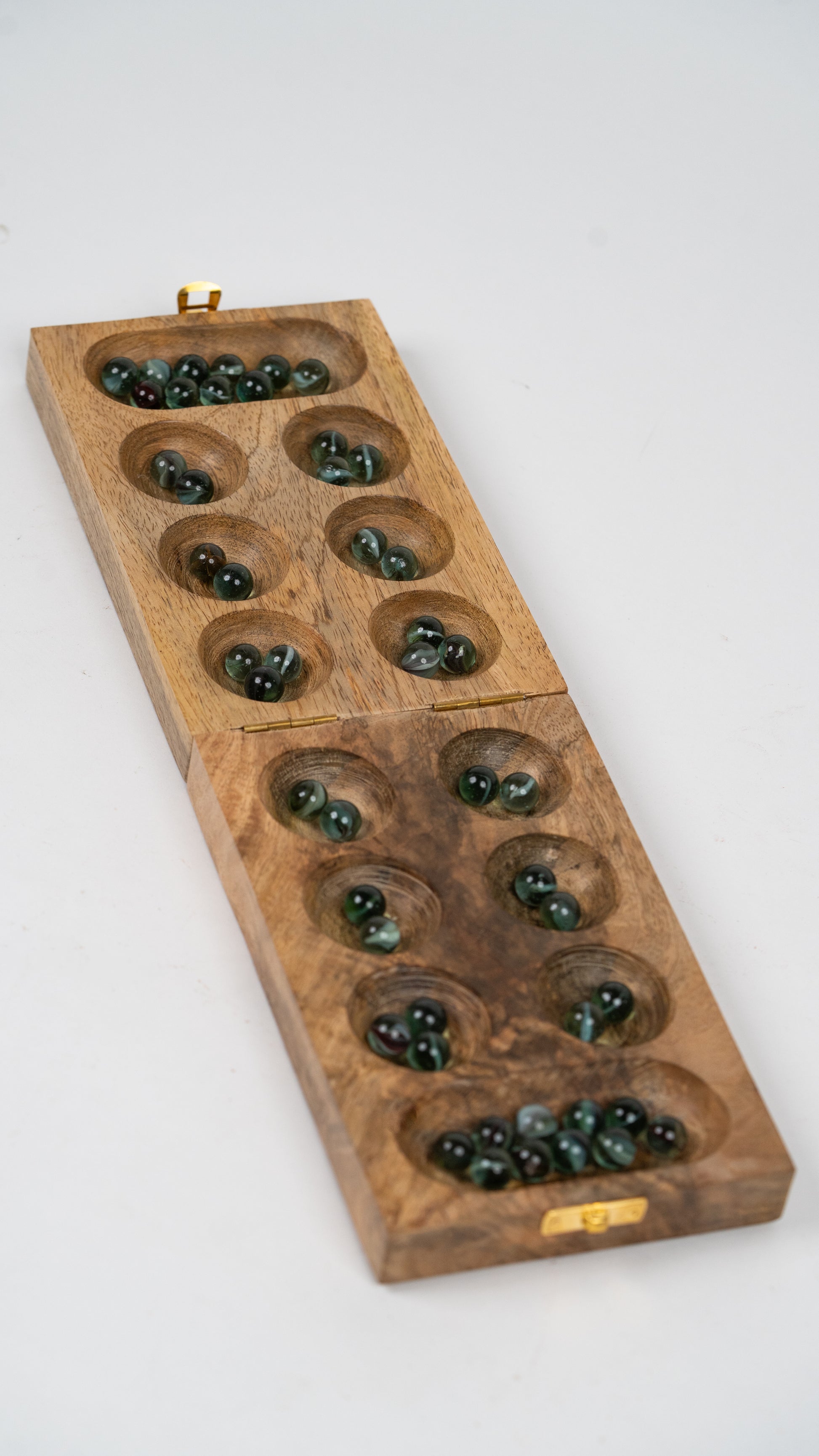 Handcrafted from smooth, durable mango wood and paired with vibrant multicolour glass balls, this Foldable Wooden Mancala Game brings ancient strategy to modern play. Beautifully constructed from solid wood, offers kids a world of everlasting play possibilities.