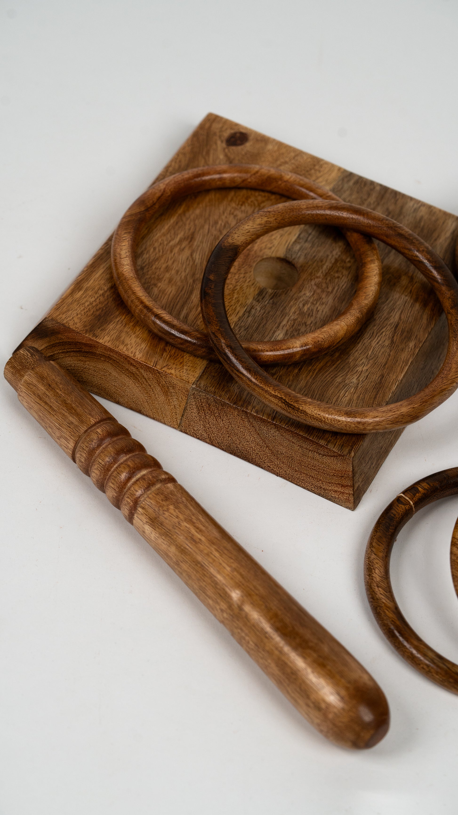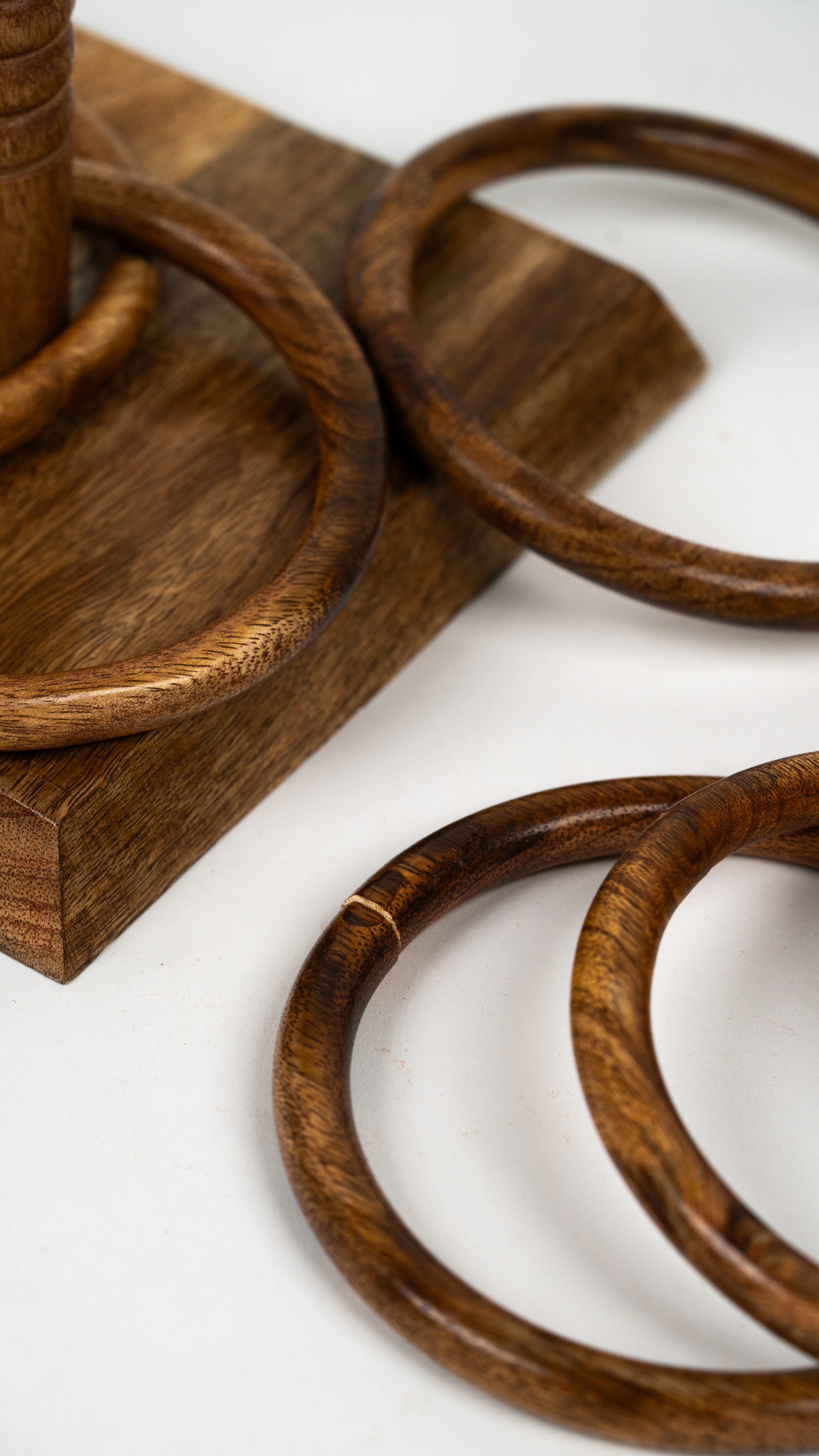Get ready for unlimited entertainment with this handcrafted Mango Wood Toss & Ring Game, a timeless classic that combines talent and fun. Made of durable mango wood, it's ideal for both youngsters and adults, whether indoors, at a picnic, or at game night.